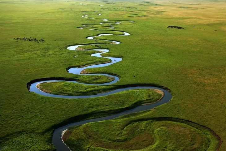 3、九曲湾:九曲锡林河是锡林浩特市著名景区之一,这里的河道弯弯曲曲、千迥百转宛如一条绿色的飘带,异常美丽的河曲成为1998年发行的“锡林郭勒特种邮票”小型张的画面原型;