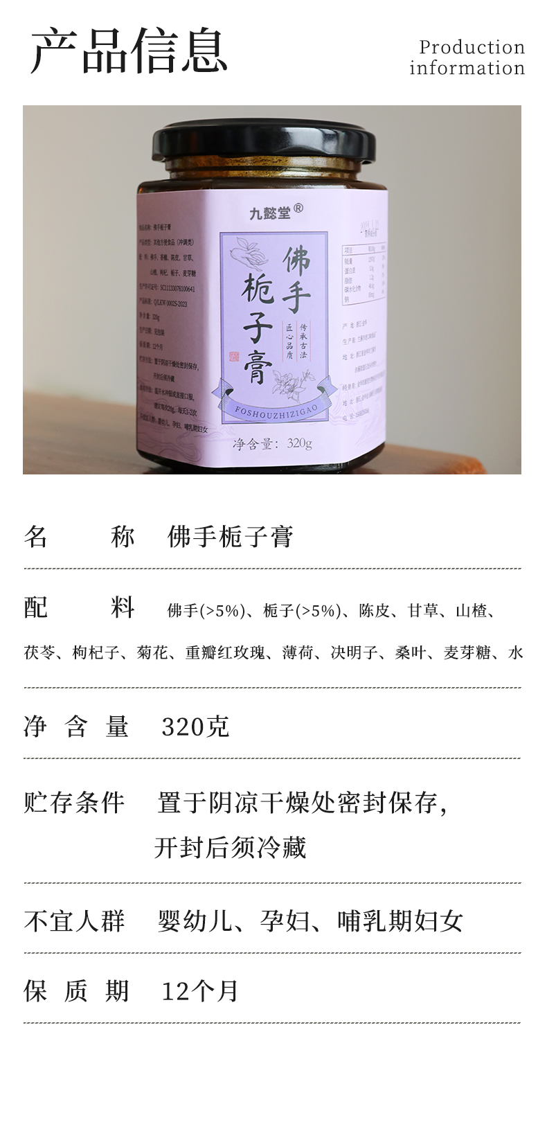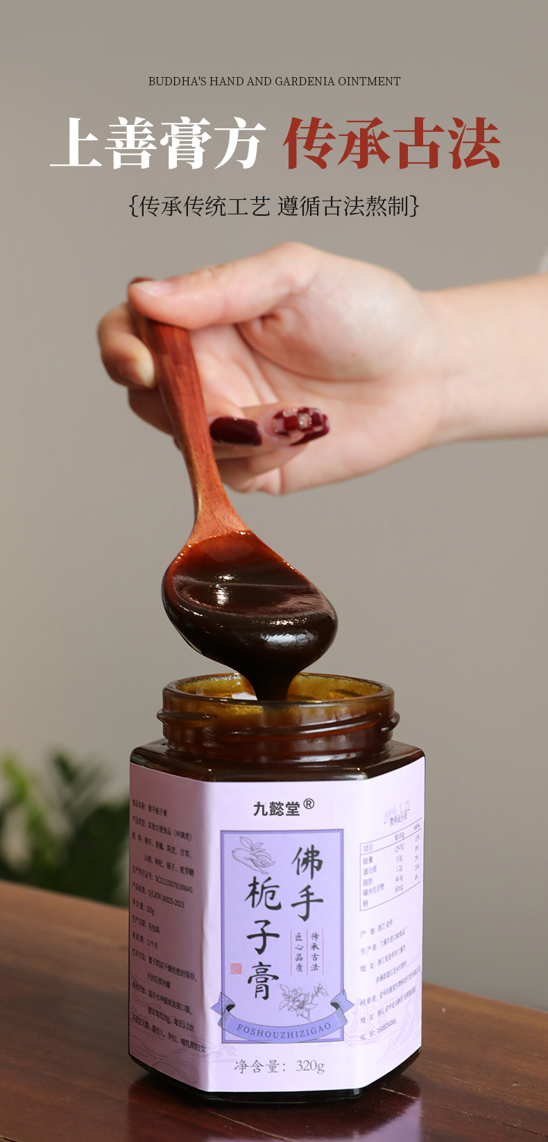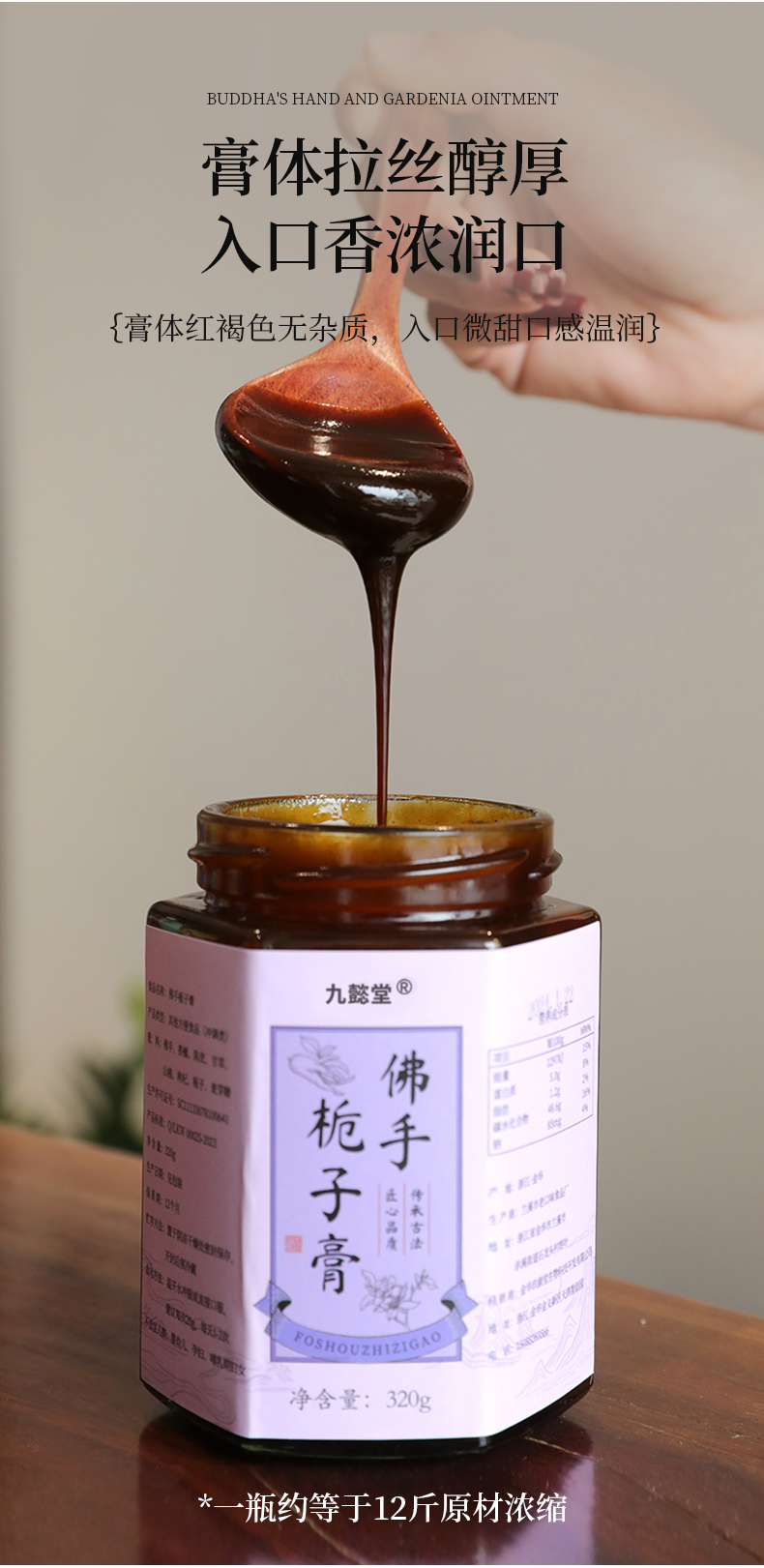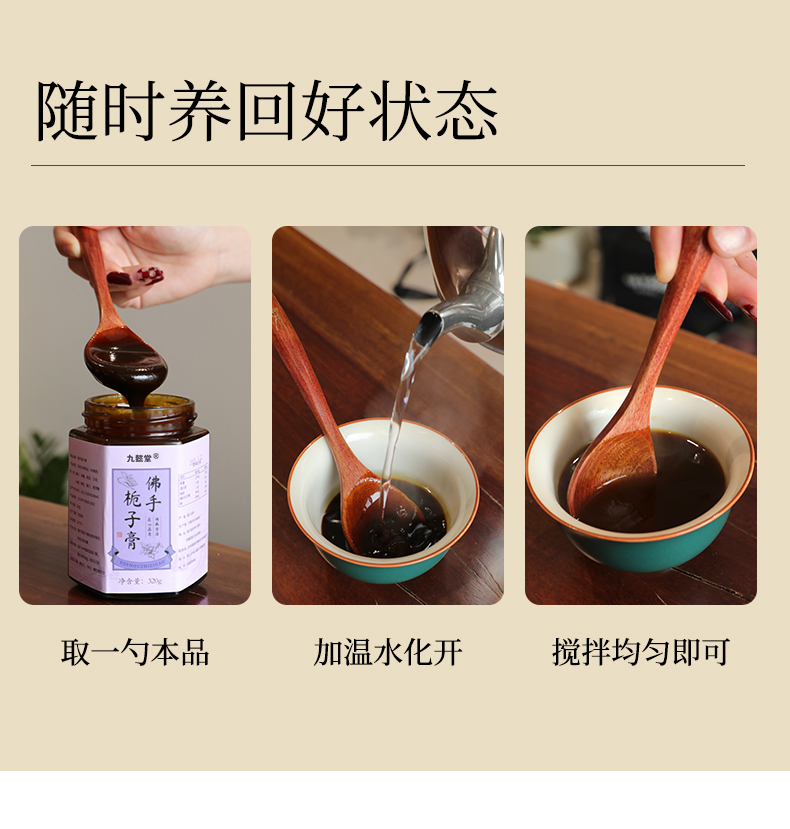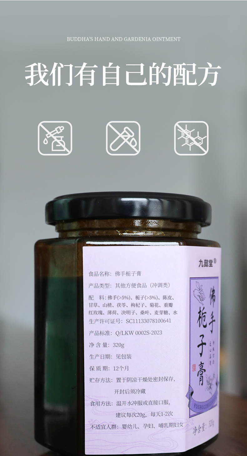 温馨提醒:本品不加任何防腐剂添加剂,每次取膏时,须用无油无水的勺子接触膏体!