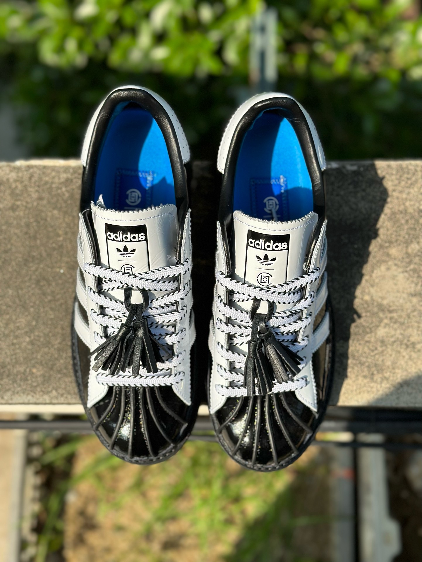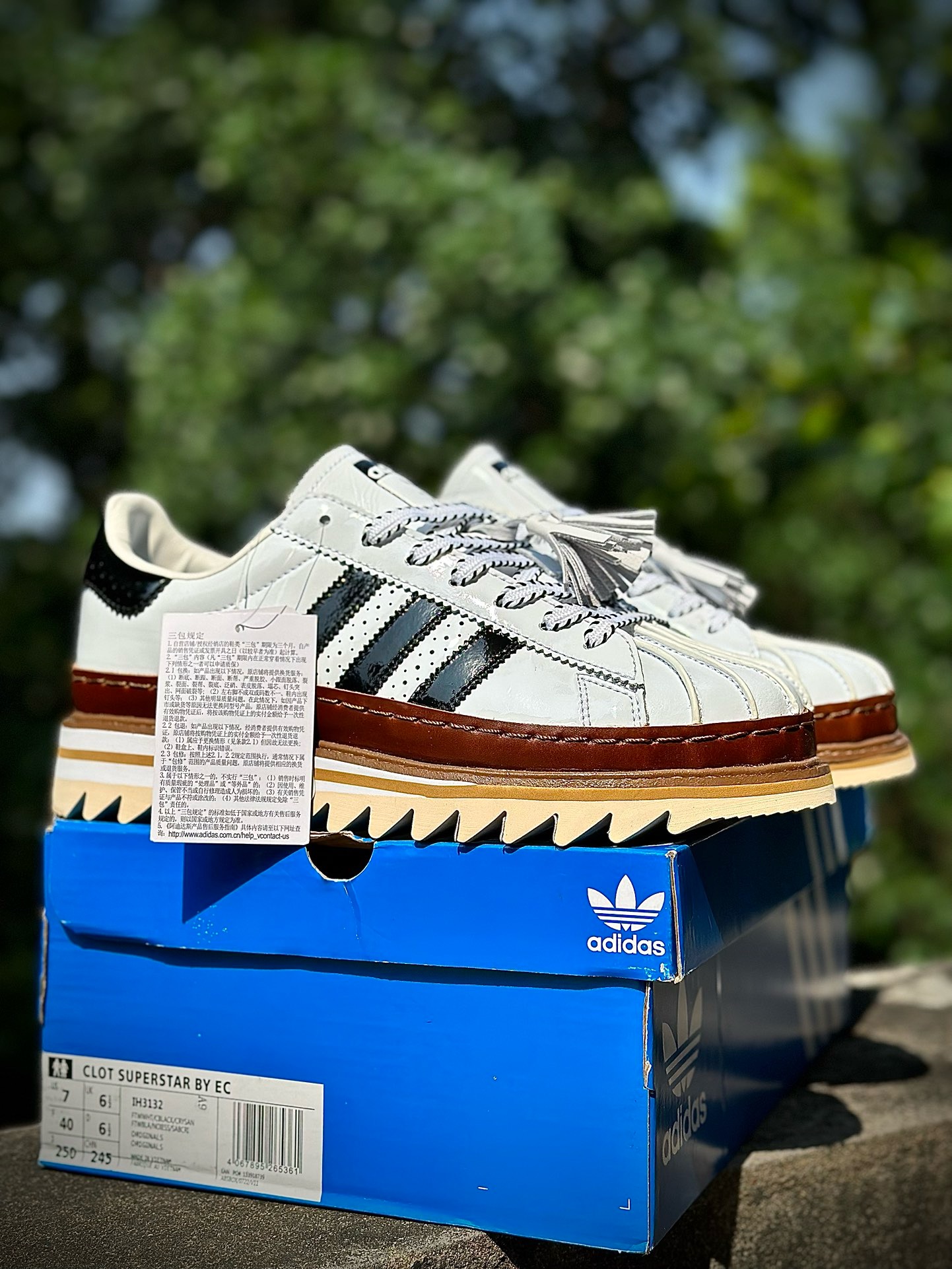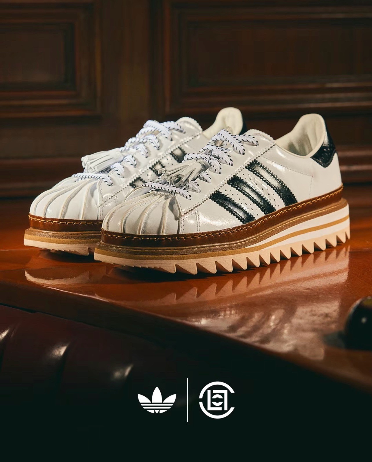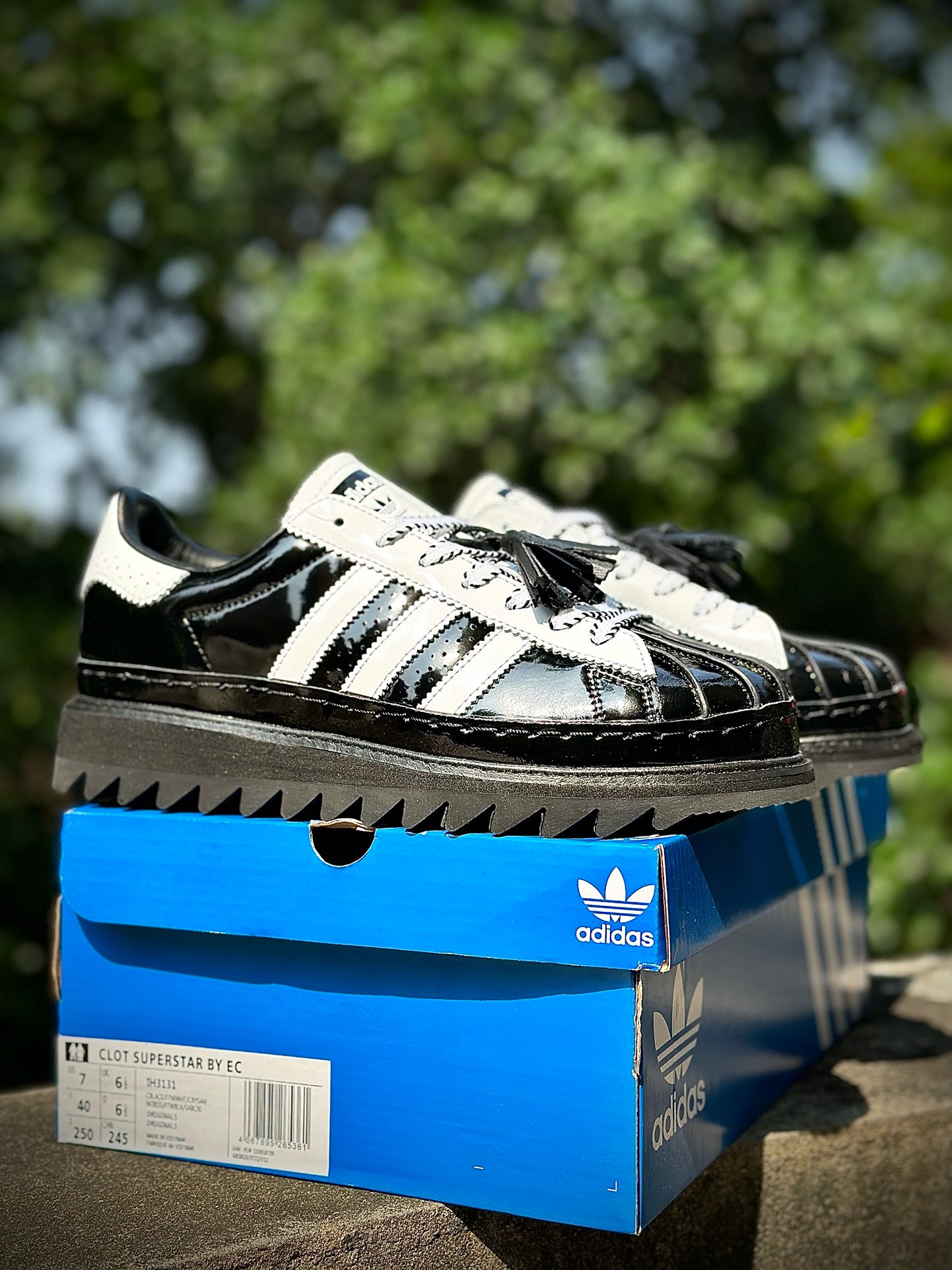 冠希哥频繁带货,CLOT x Adidas Superstar 来了!陈冠希主理品牌“凝结集团”CLOT x Adidas Originals Superstar"White Black"贝壳头锯齿底系列低帮布洛克雕花百搭休闲运动鞋