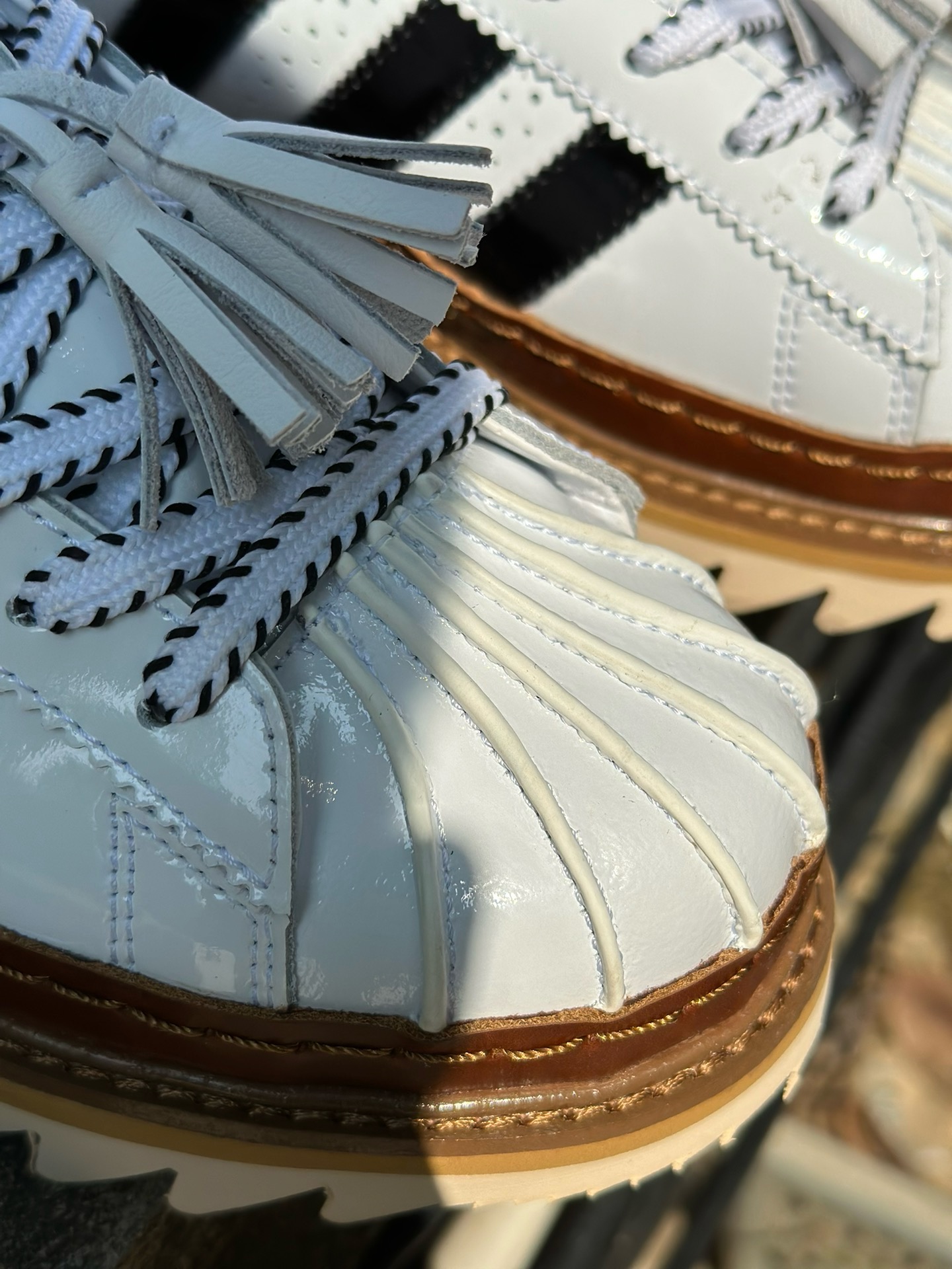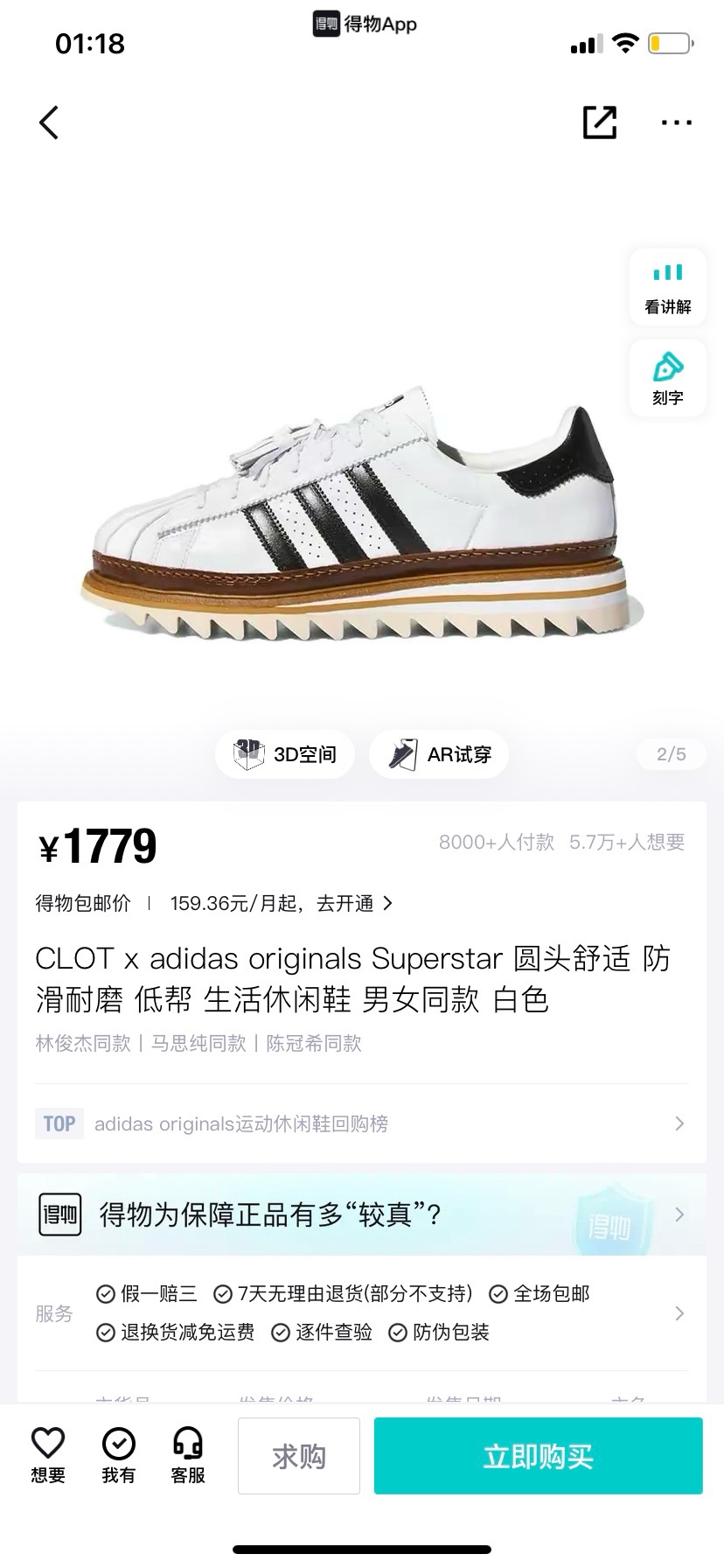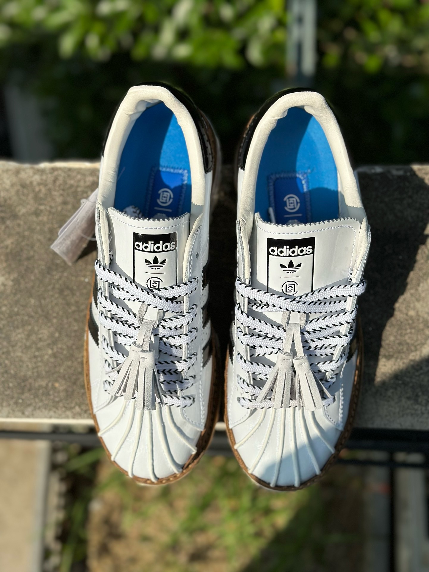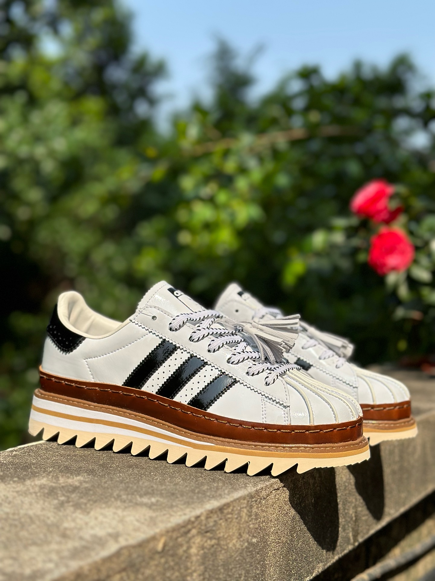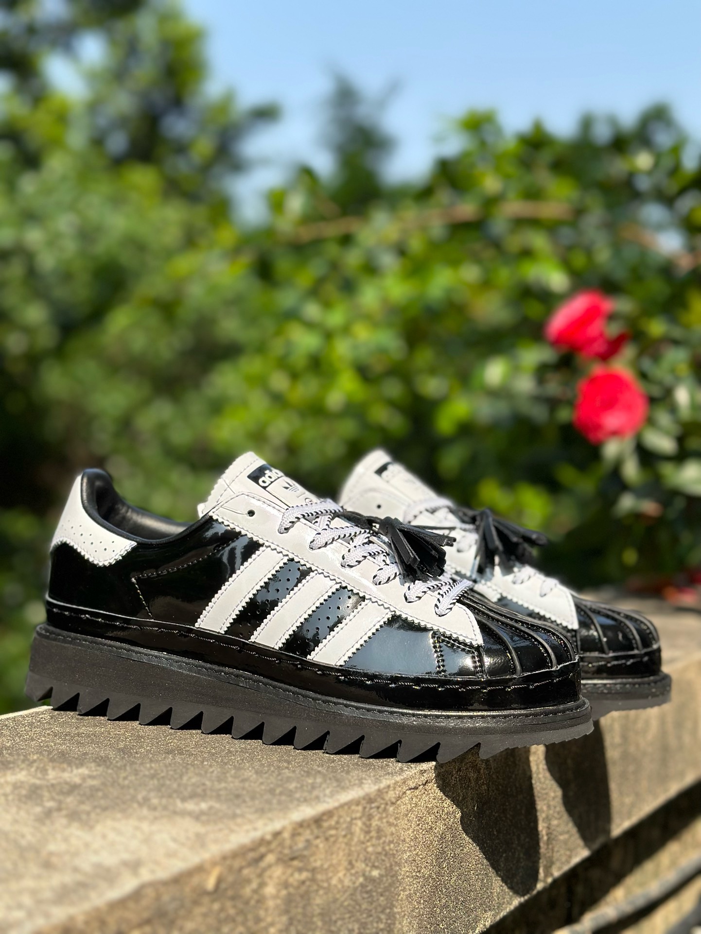冠希哥频繁带货,CLOT x Adidas Superstar 来了!陈冠希主理品牌“凝结集团”CLOT x Adidas Originals Superstar"White Black"贝壳头锯齿底系列低帮布洛克雕花百搭休闲运动鞋