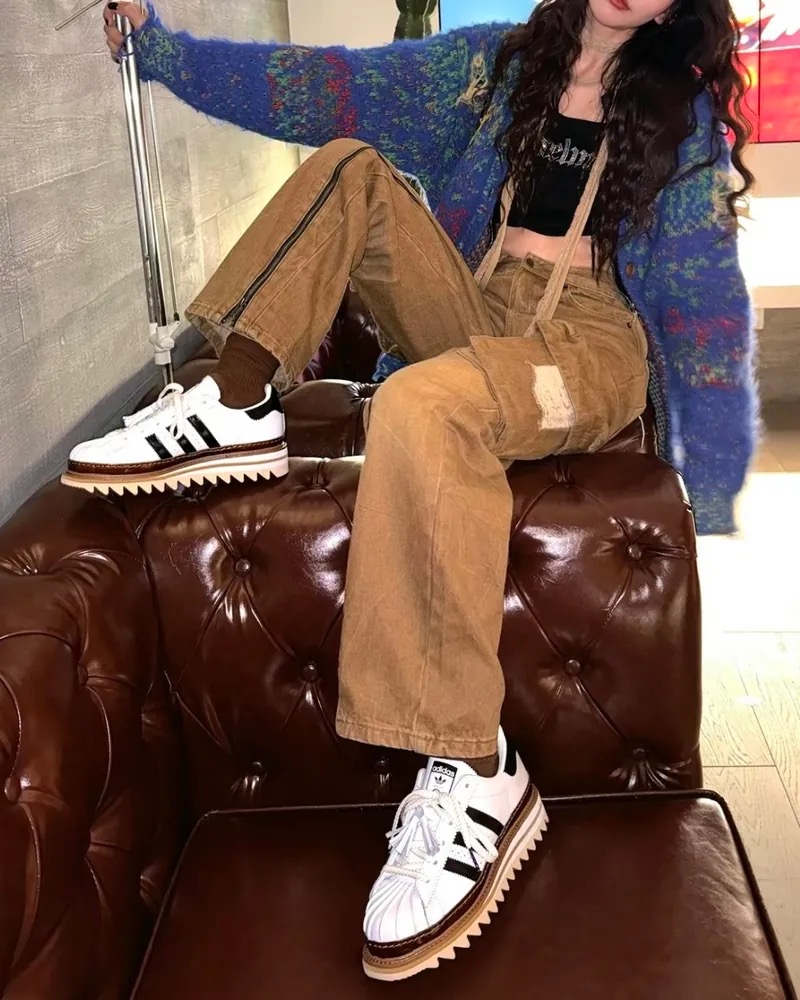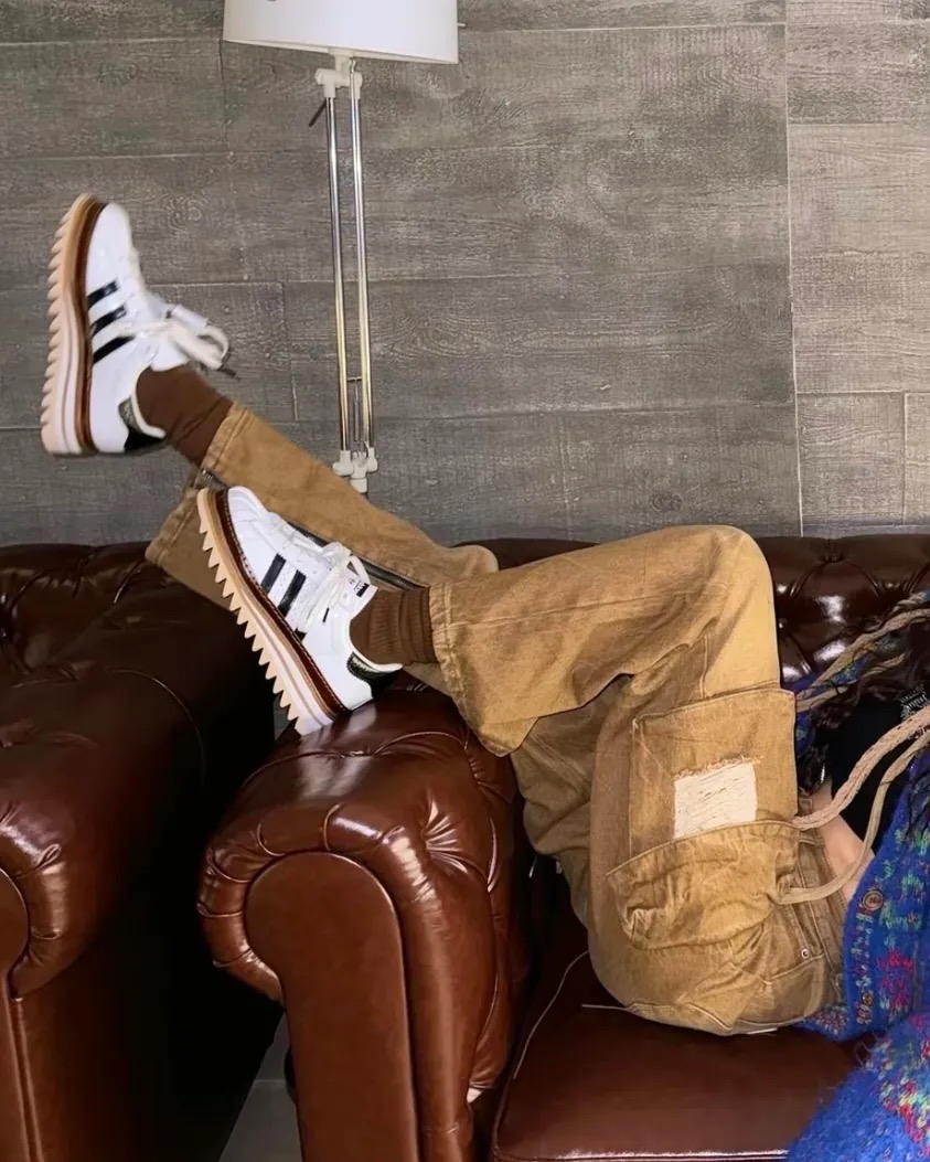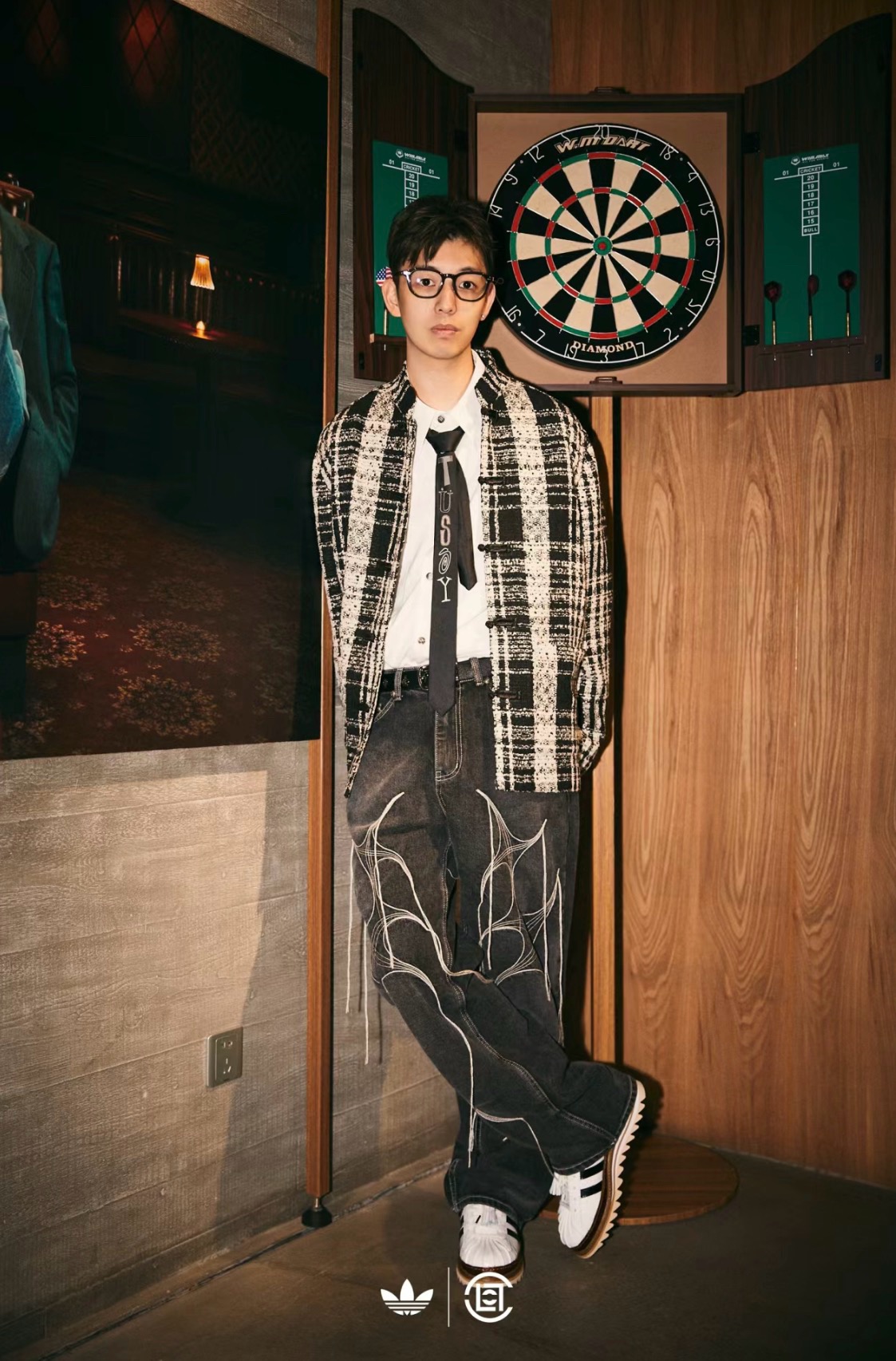 从去年的 NBHD 三方联名后,冠希很长一段时间没有登场新鞋了。终于,2024 年第一双冠希 x 三叶草正式上架。目前 42.5 码市价在¥25xx 元左右,人气相当不错。最近,冠希再次上脚担任模特,为这双鞋做风格示范,肉眼可见的高级感和时尚感扑面而来。