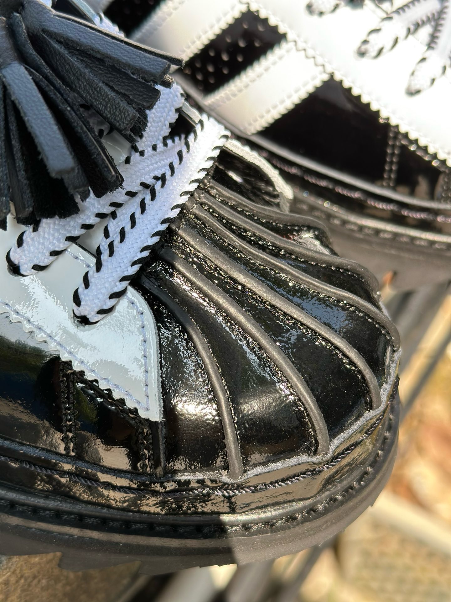 【新品效果篇】原装L版#男女鞋真标半码制#升级原楦原纸版数据开发版型#采用原厂头层平面油皮鞋面材质#装饰流苏挂饰均采用头层皮#全新设计油边处理鞋头盖(头层平面油皮!!)#