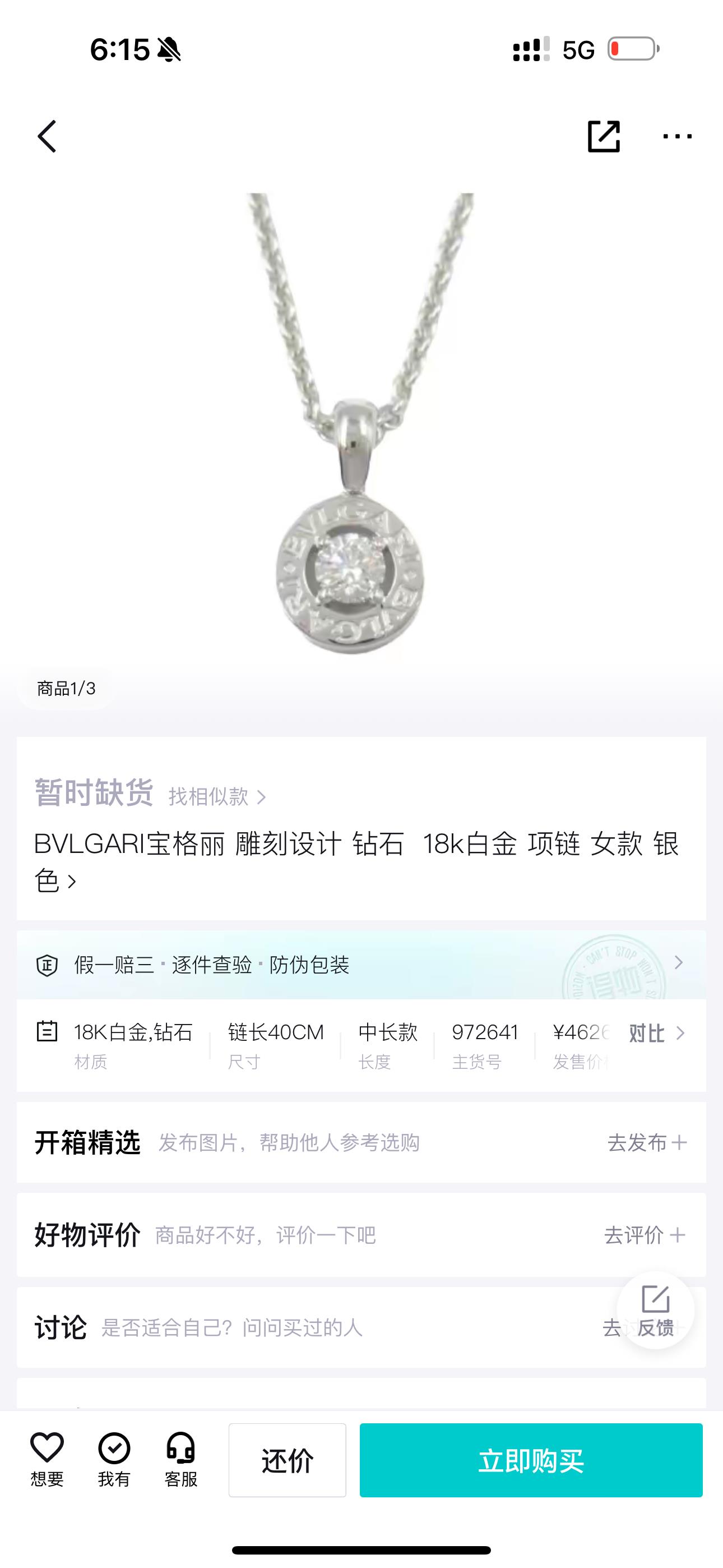 拼好手速宝&丽圆心钻项链!!正价3w➕!!这个款数量稀少!这款国内专柜国外专柜都已经绝版!赵露思带火的很火的“鼻屎钻”的鼻祖款!这款佩戴根本不会撞款!我们卖的是渠道。