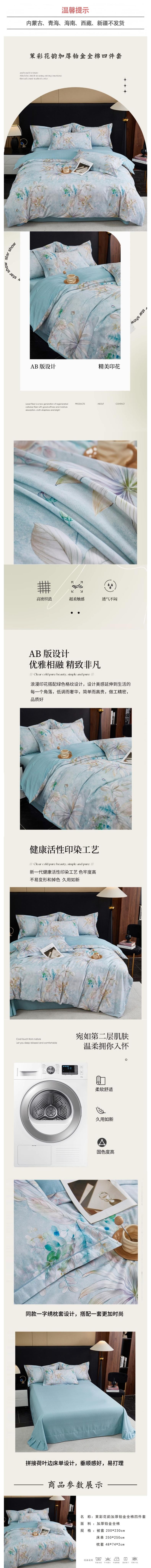彼加曼 “茉彩花韵”加厚铂金全棉四件套200*230cm BGM-T2529