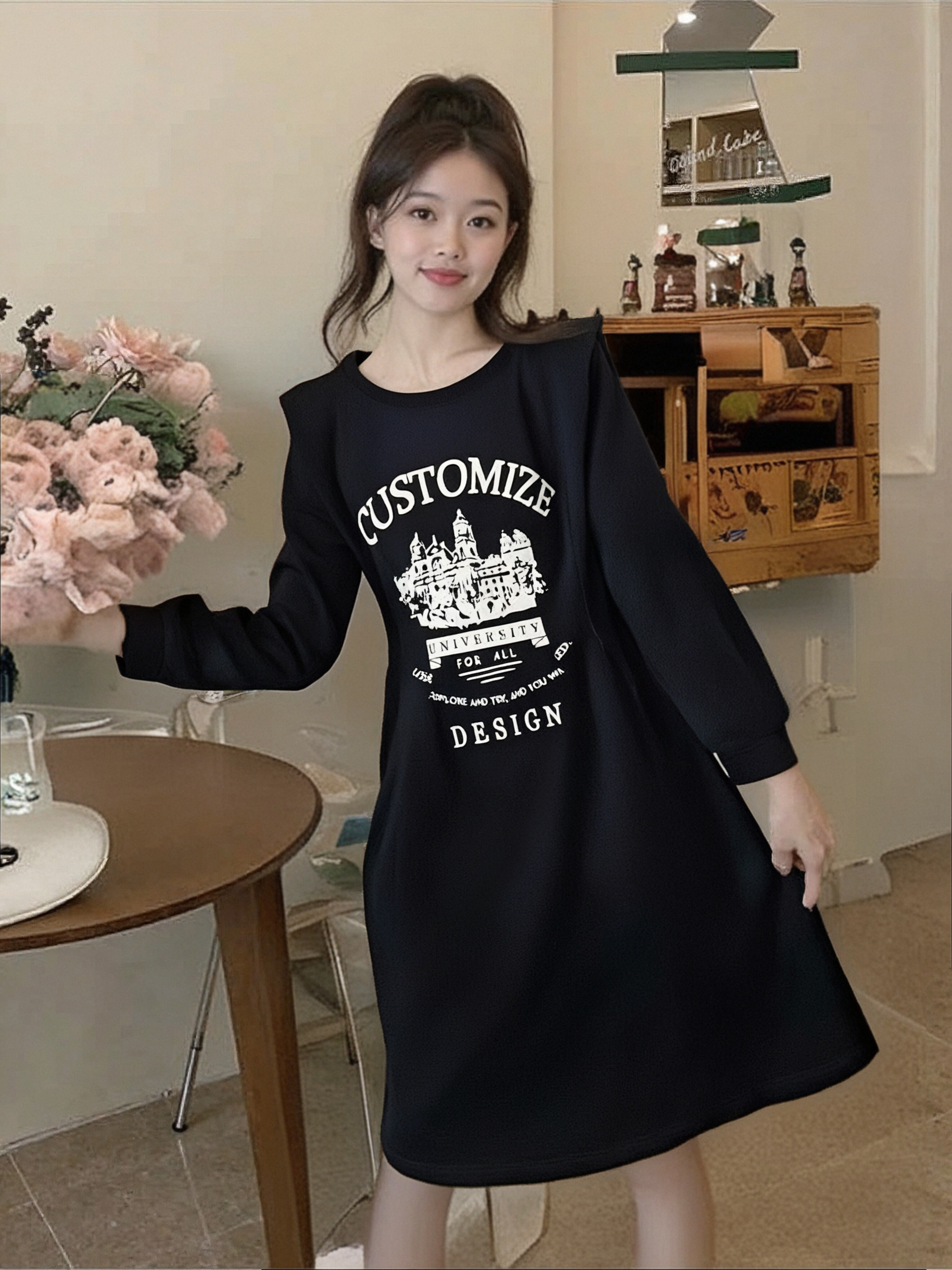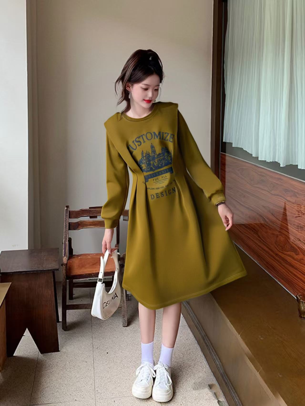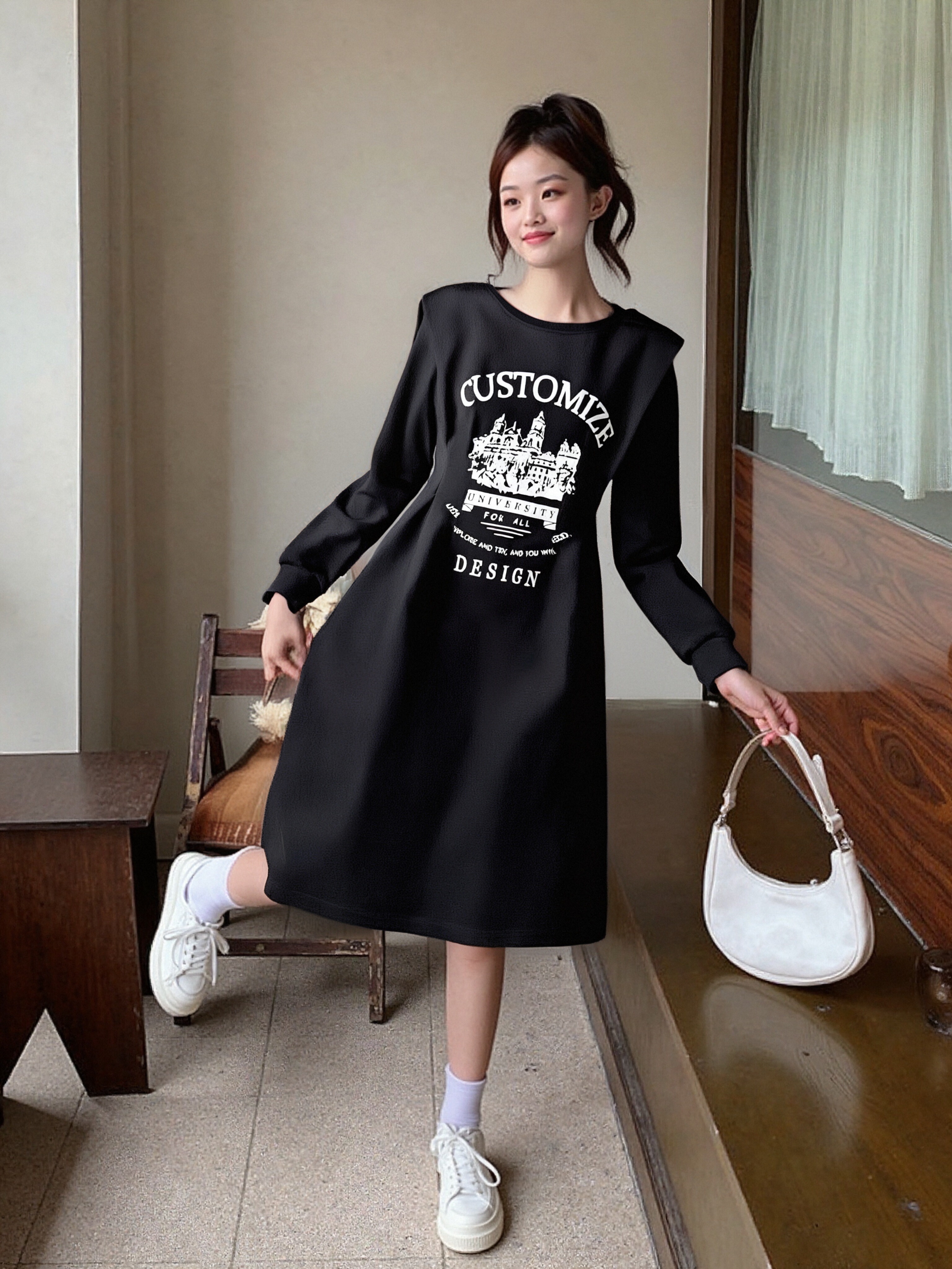 双十二福利!【诗铭洛可】W914 印花卫衣裙长袖压褶连衣裙