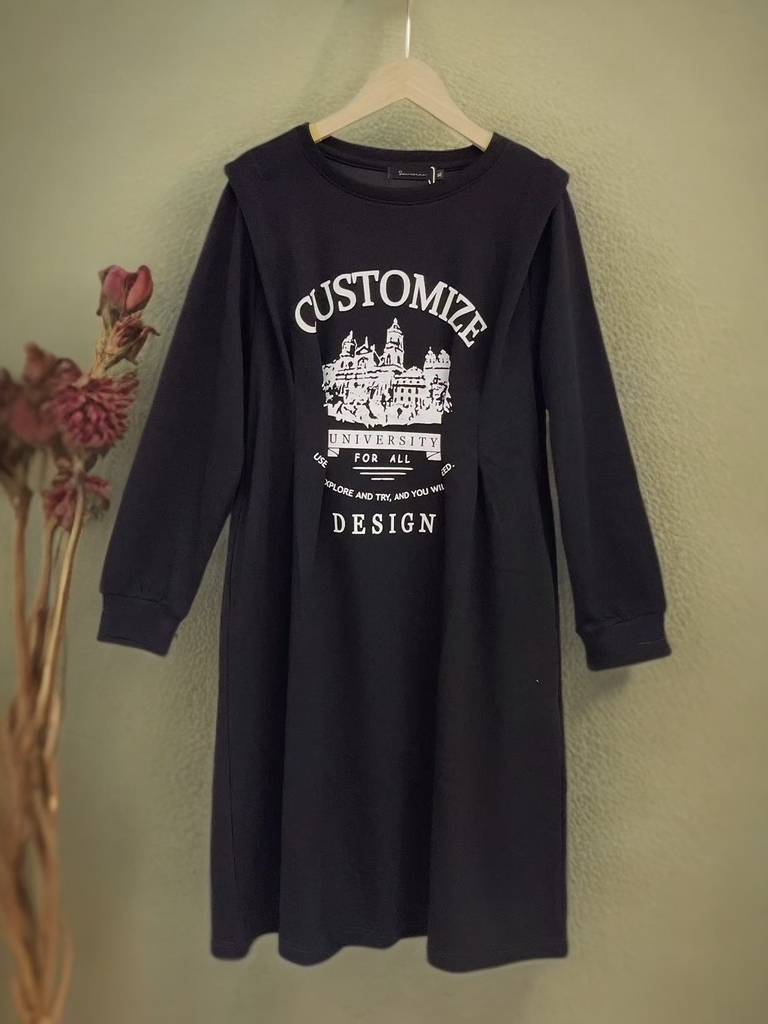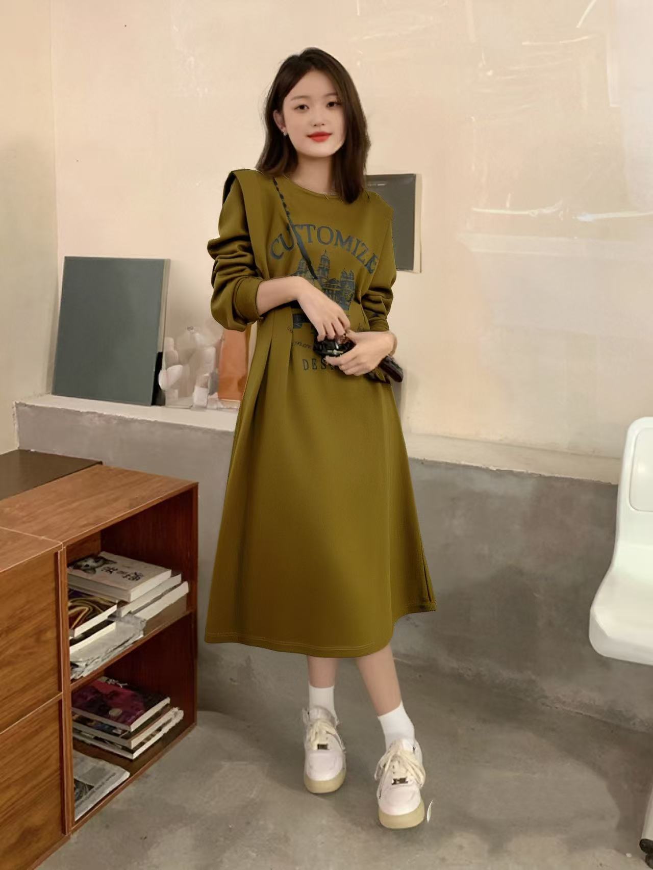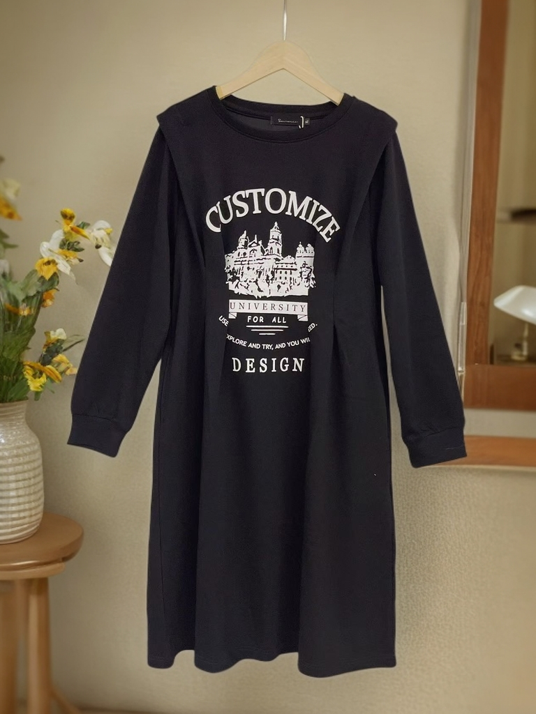 双十二福利!【诗铭洛可】W914 印花卫衣裙长袖压褶连衣裙