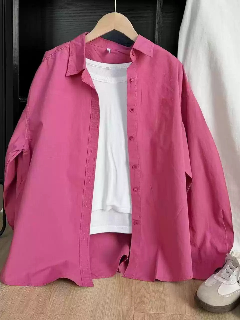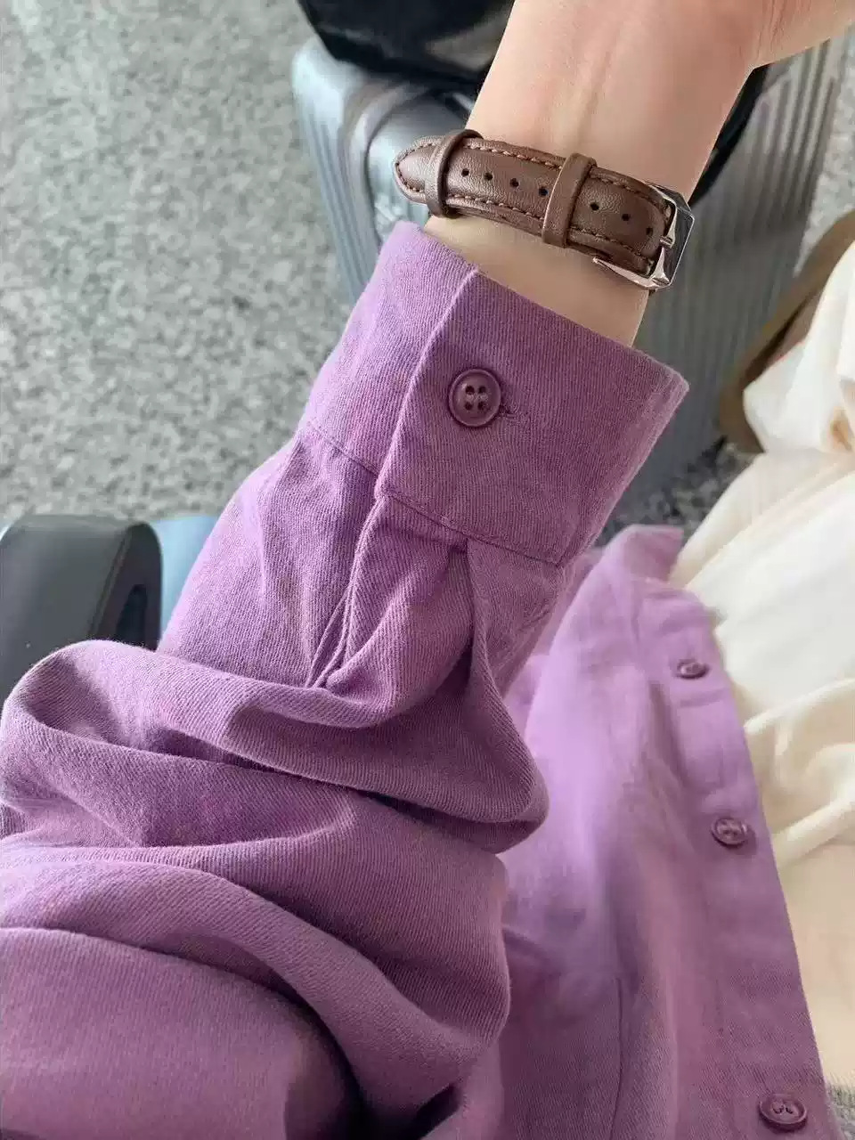丁摩 100%纯棉【糖果色显白】紫色秋冬季衬衫女中长款休闲显瘦长袖衬衣女外穿5ZF-90180