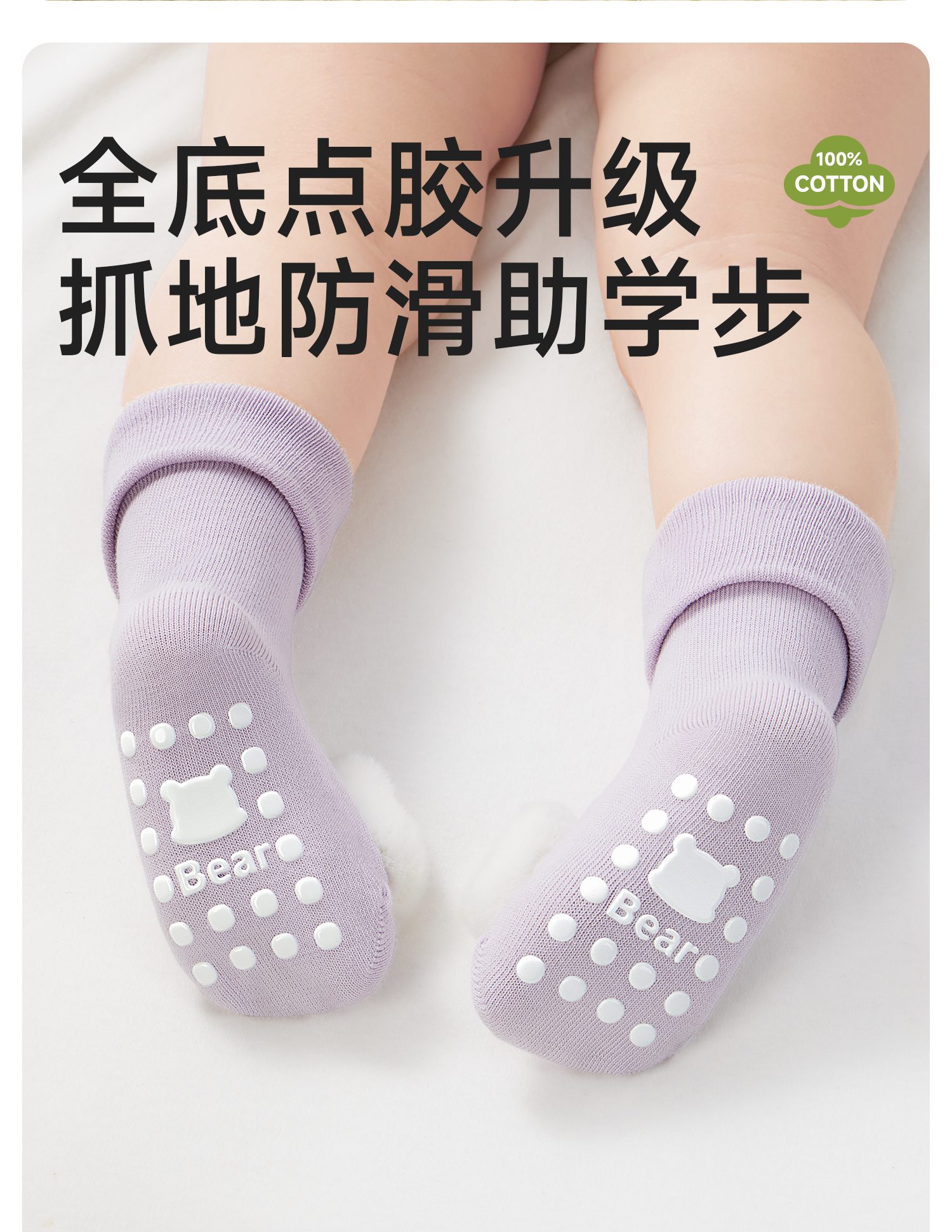 新生婴儿袜子纯棉a类0-3个月春秋冬季宝宝学步地板鞋儿童防滑隔凉
