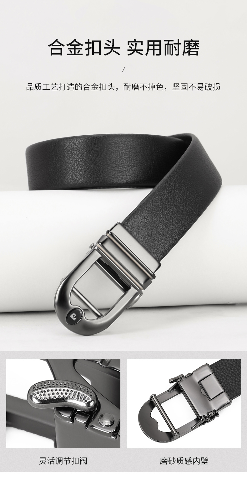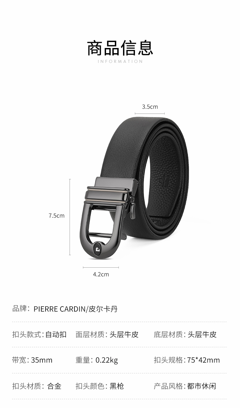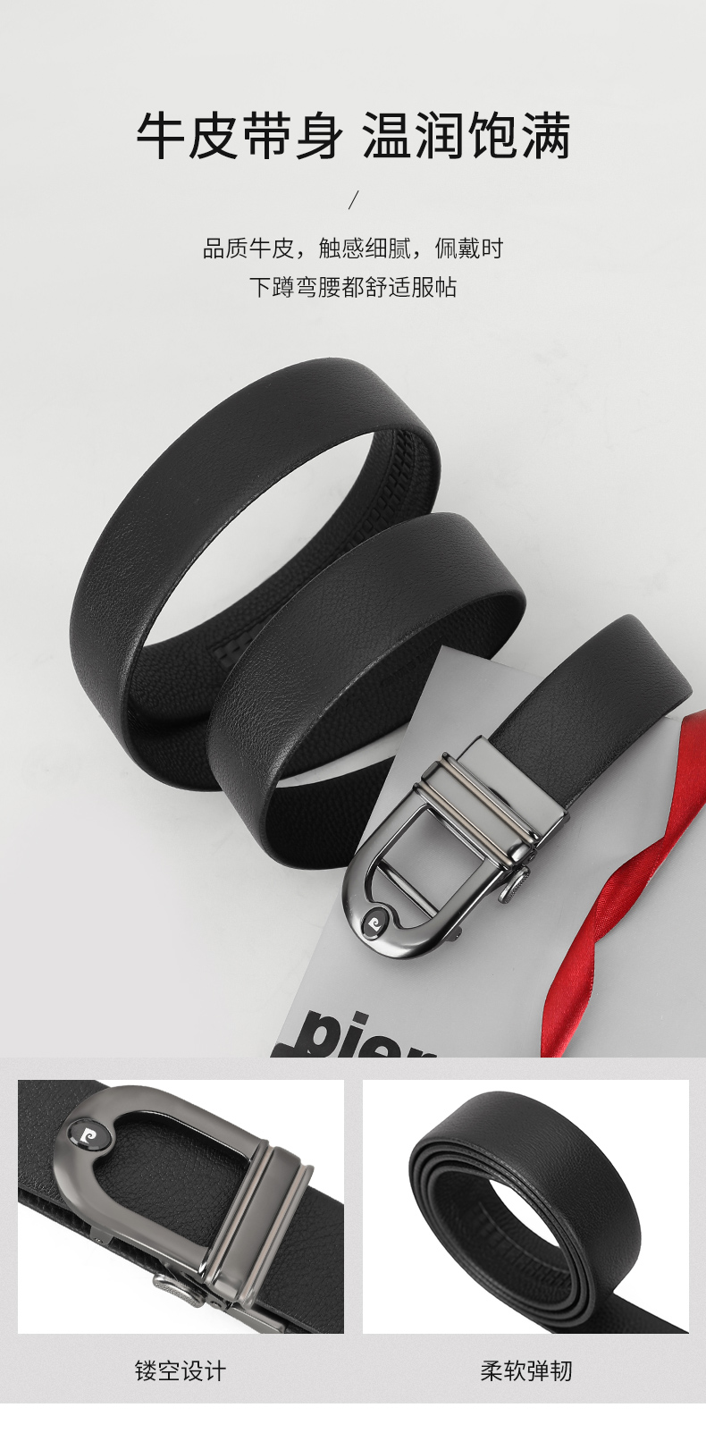 皮尔卡丹男士牛皮皮带经典大气头层牛皮商务都市自动扣男士腰带高级感牛皮男式裤腰带