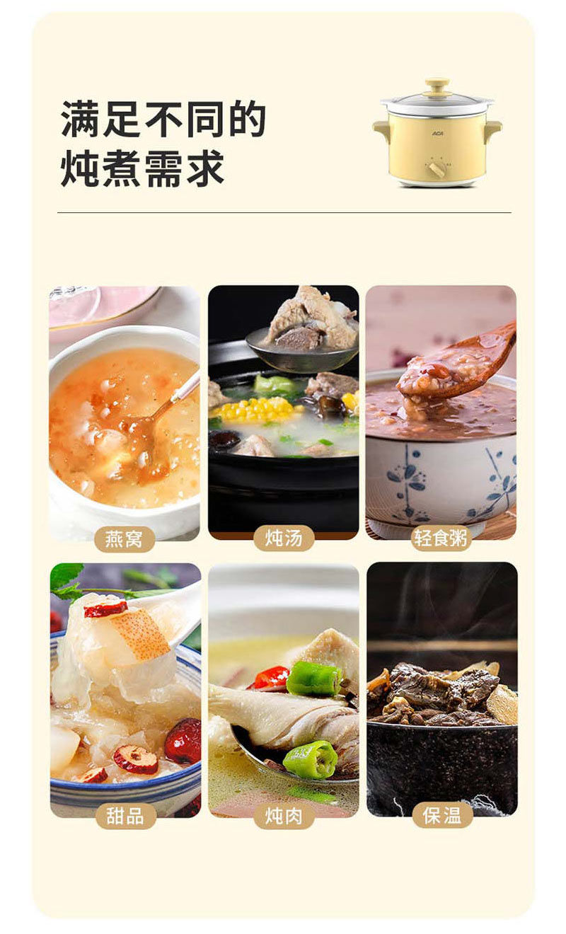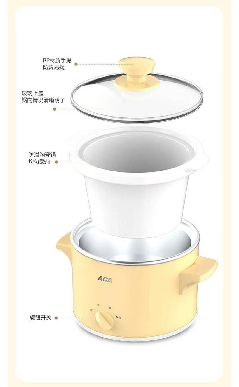 ACA正品智能营养慢炖锅蒸煮一体隔水燕窝锅