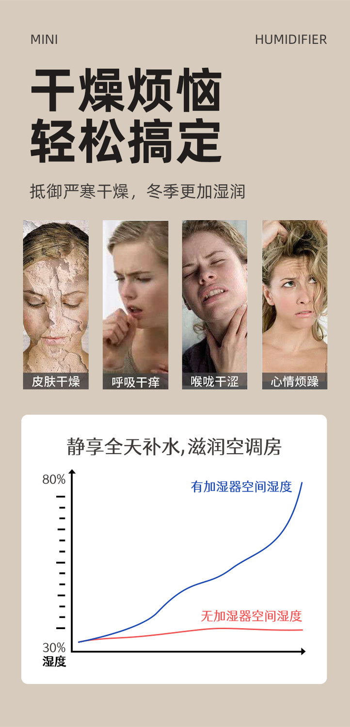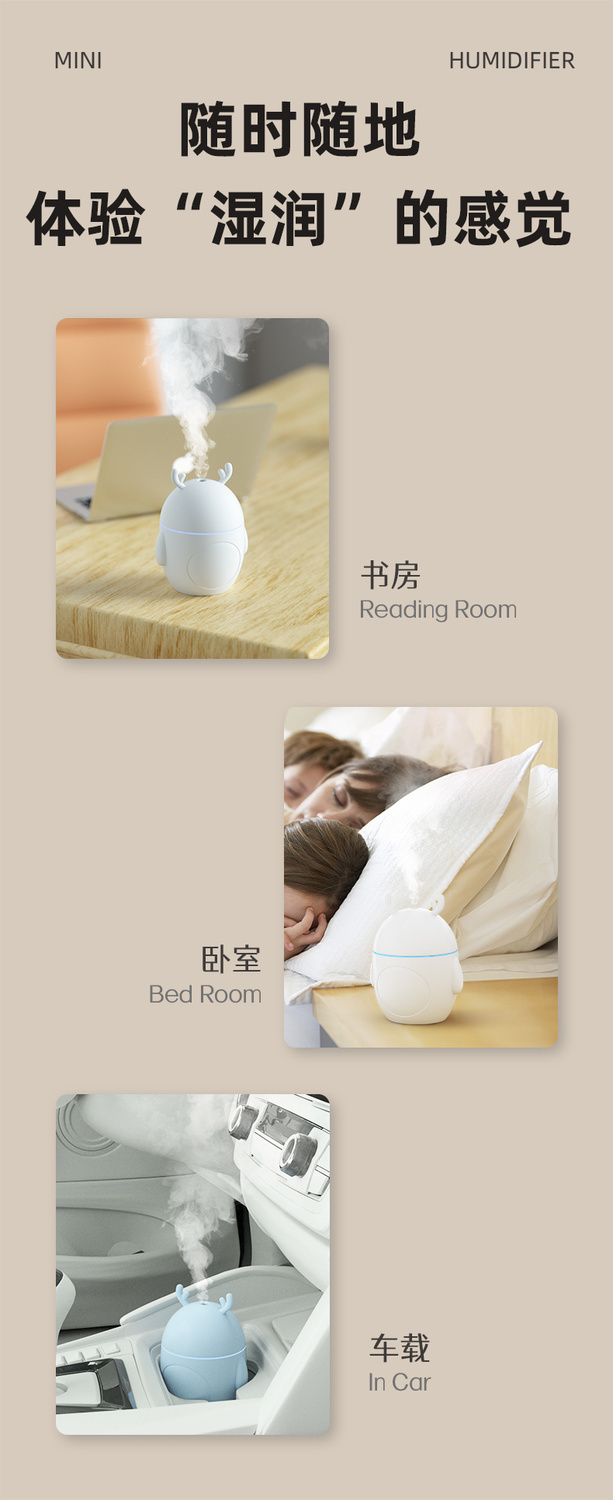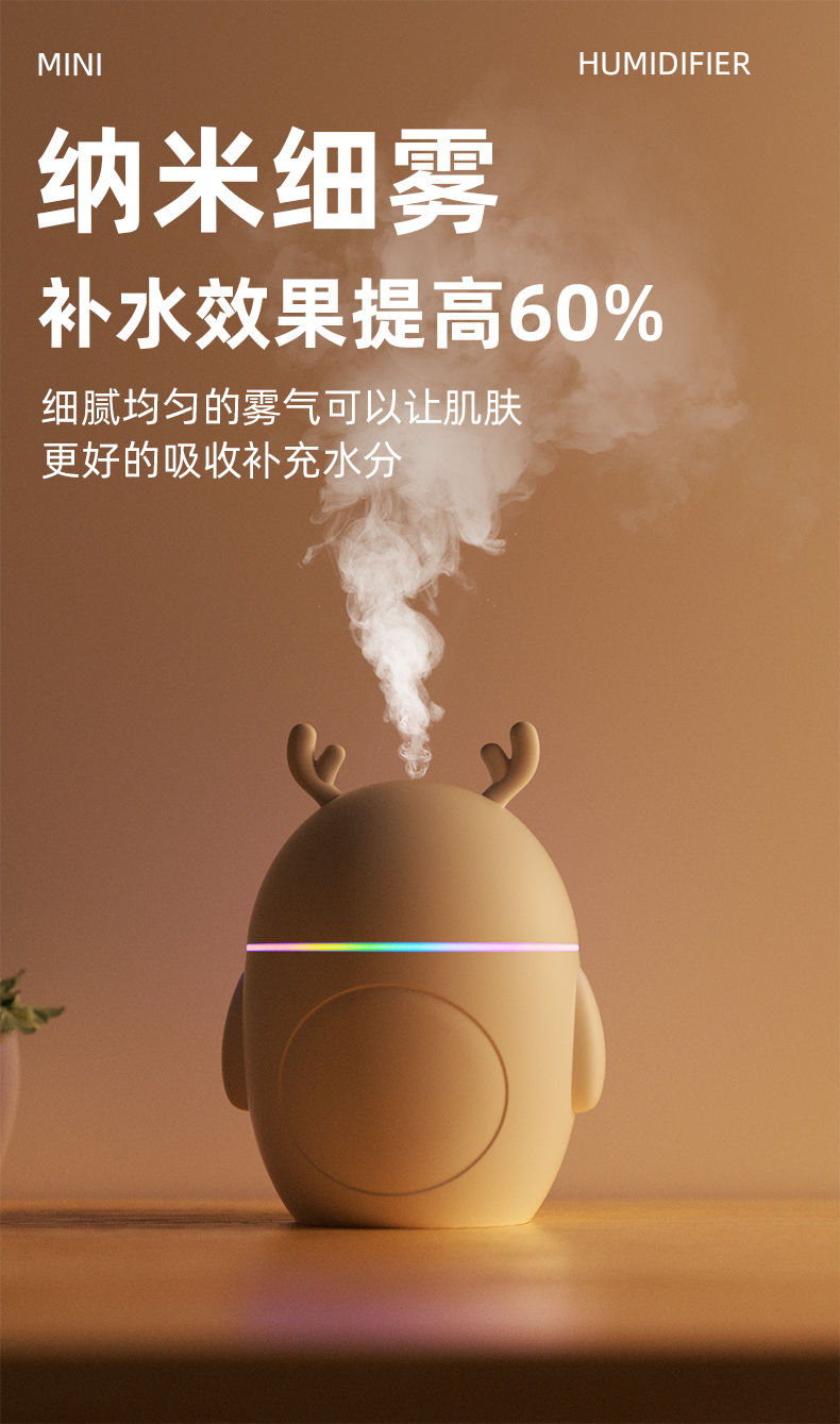 加湿器家用室内卧室迷你小夜灯车载大房间空气净化器空调喷雾香薰七夕情人节