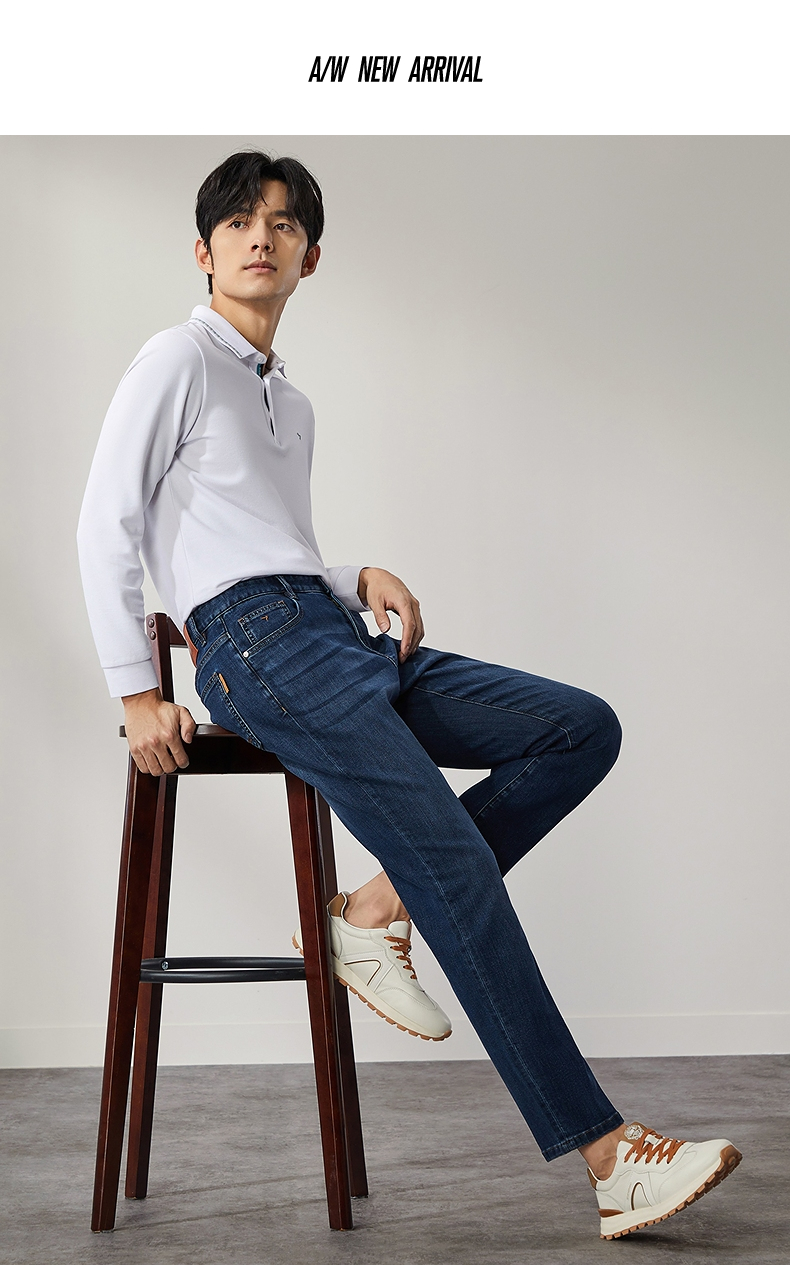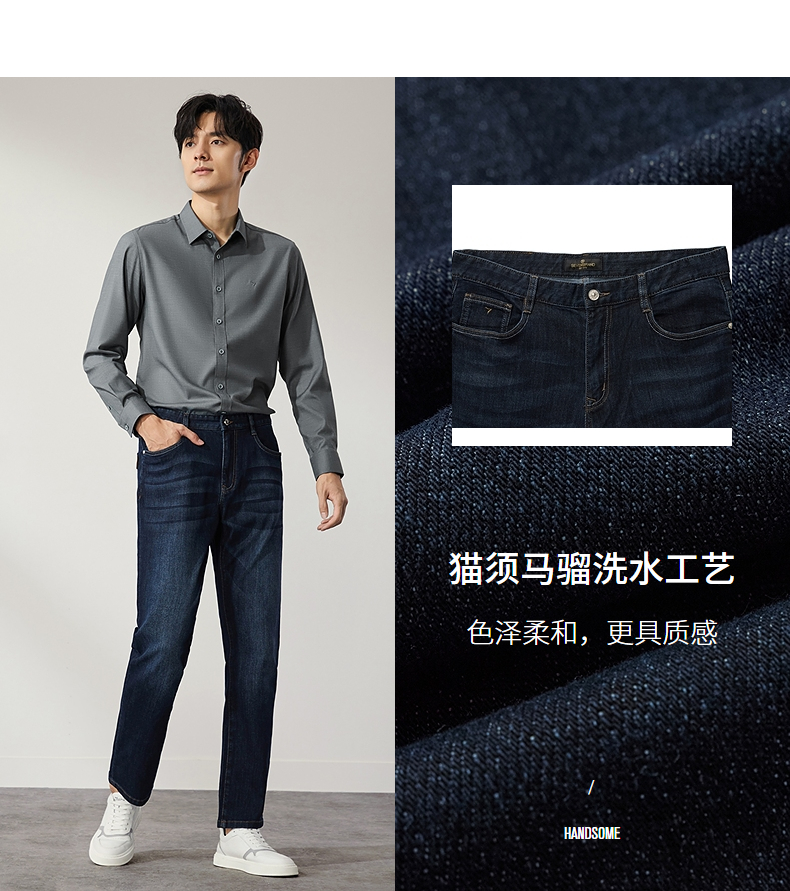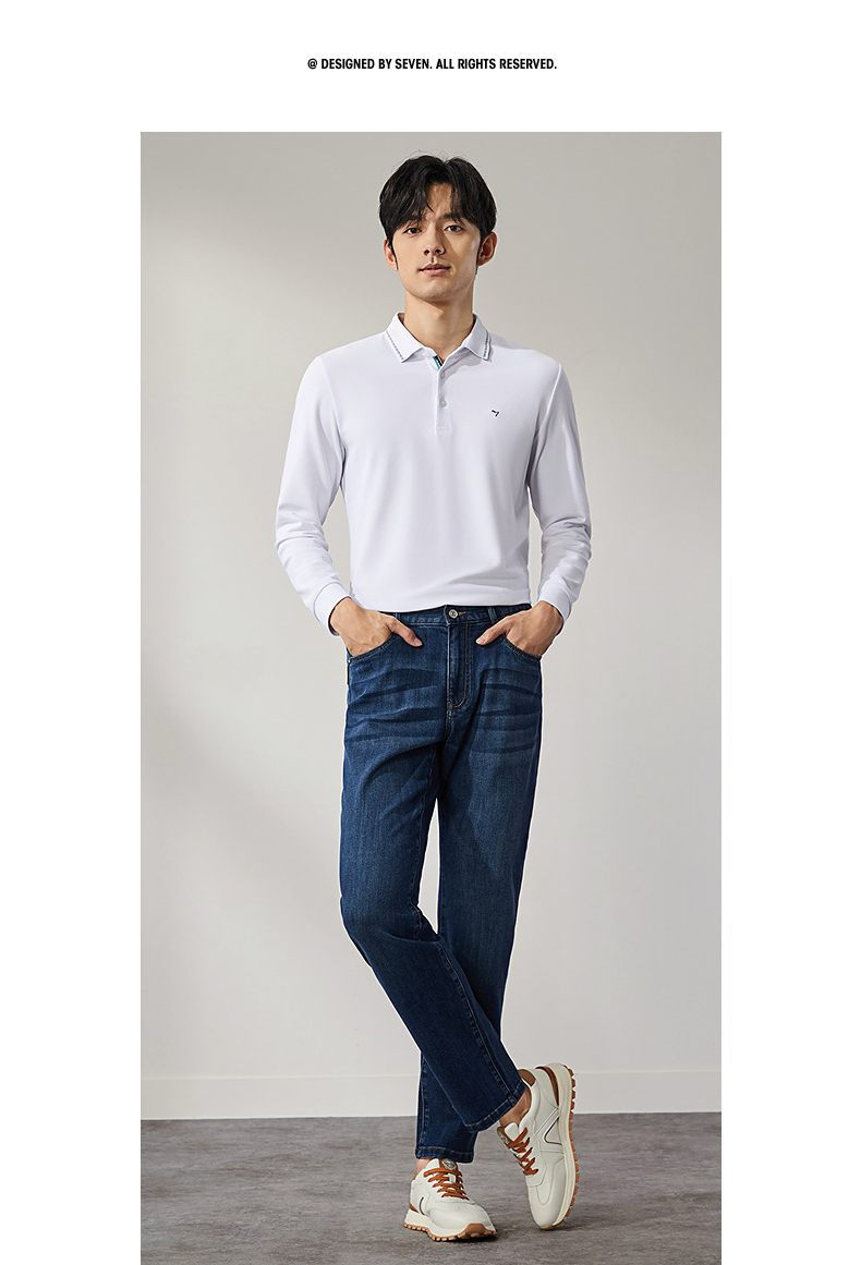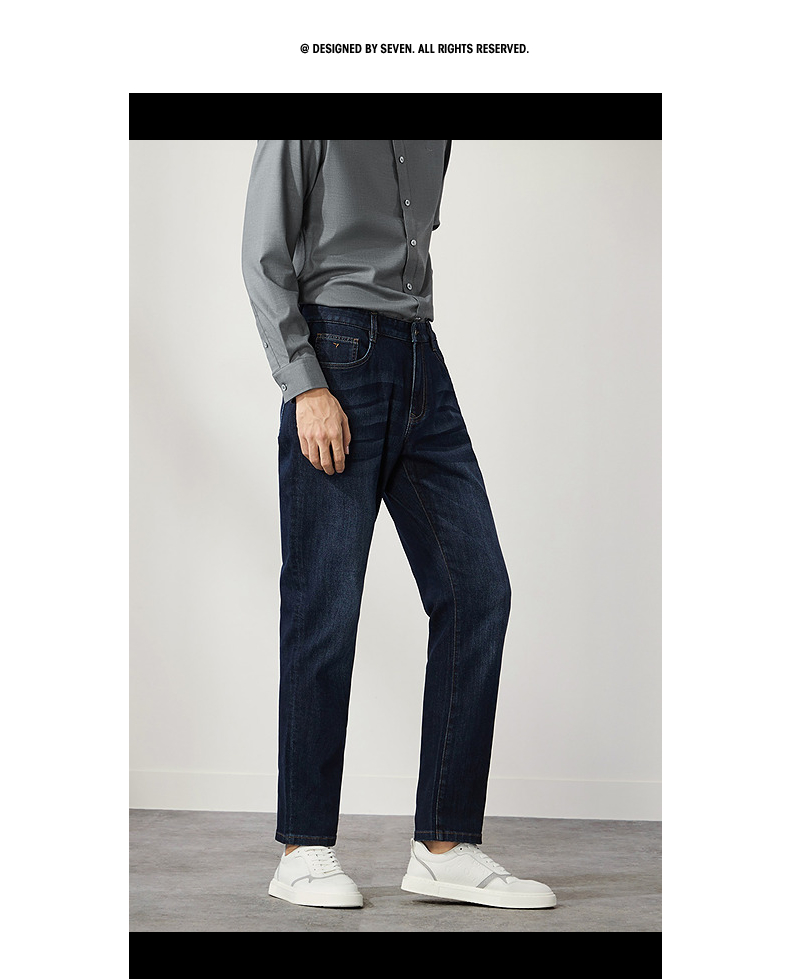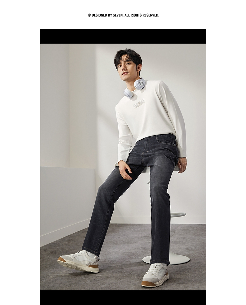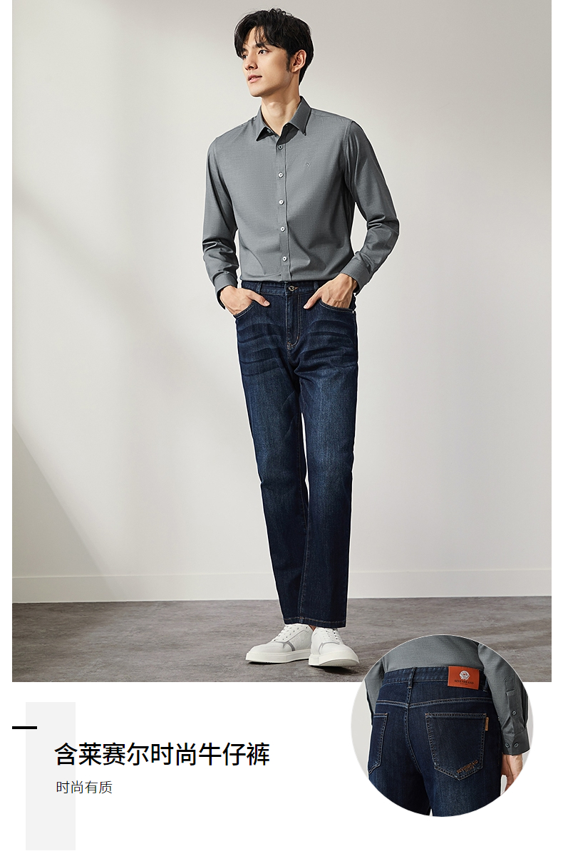 【含莱赛尔】柒牌牛仔裤男士2024秋季新款字母绣花直筒水洗长裤子 127H71970