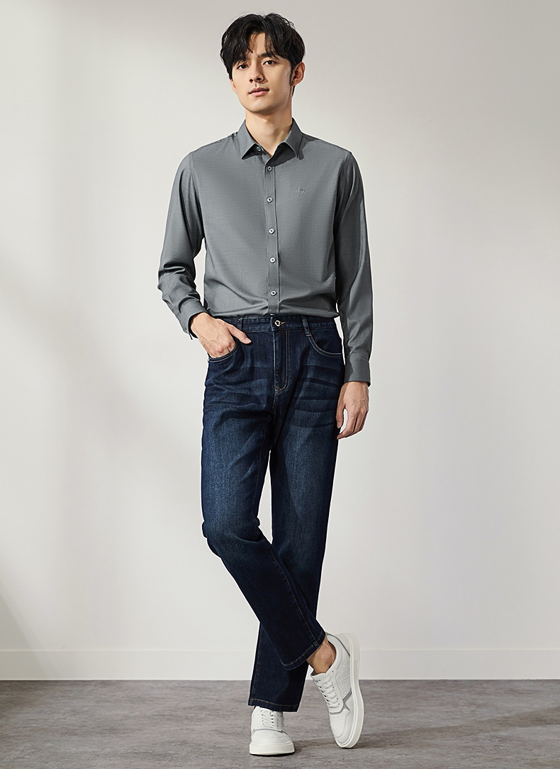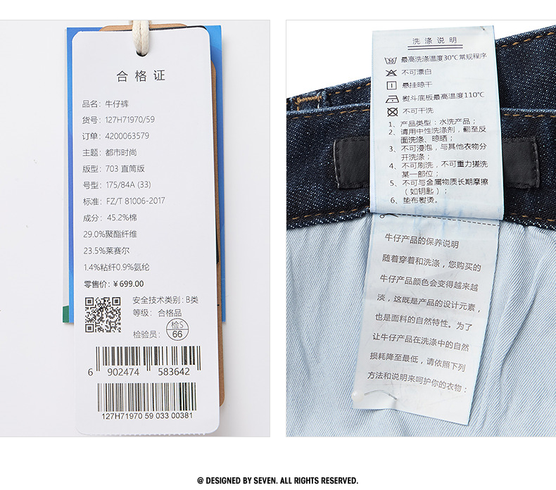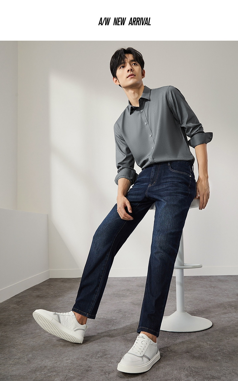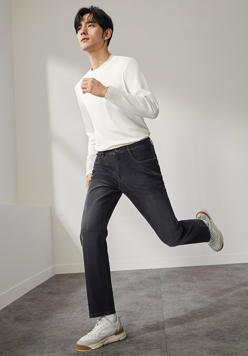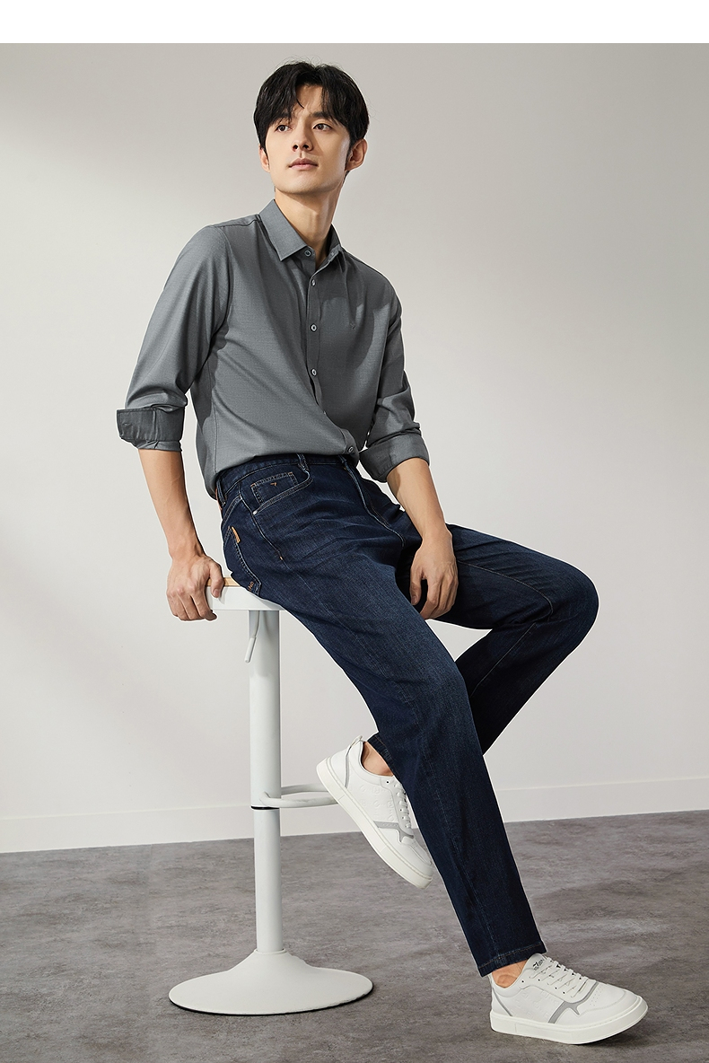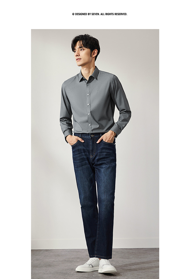 【含莱赛尔】柒牌牛仔裤男士2024秋季新款字母绣花直筒水洗长裤子 127H71970