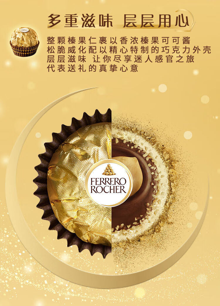 【2盒119元】费列罗榛果威化巧克力制品20粒礼盒装250g*2盒(25年9月到期)/043592*2 托盘打开层层心意