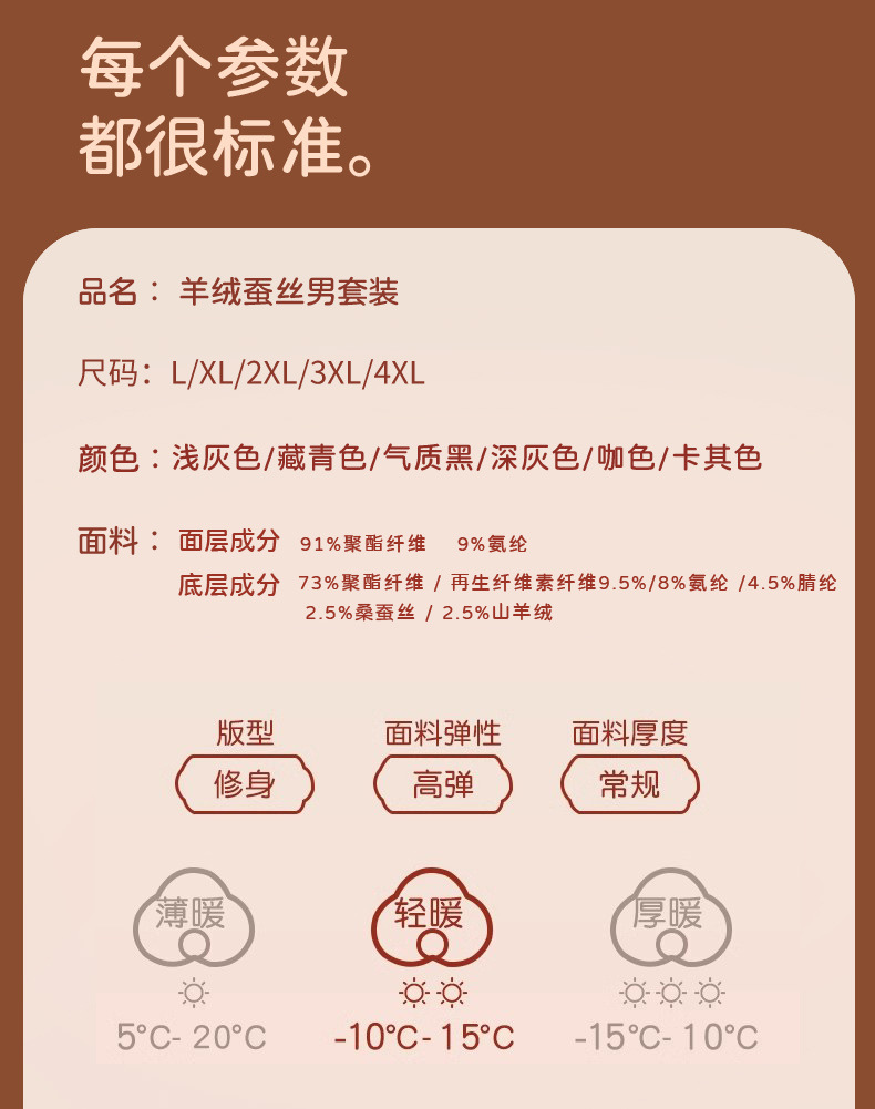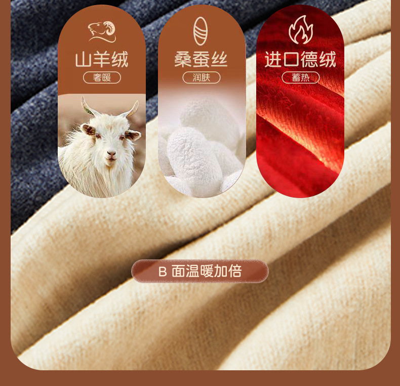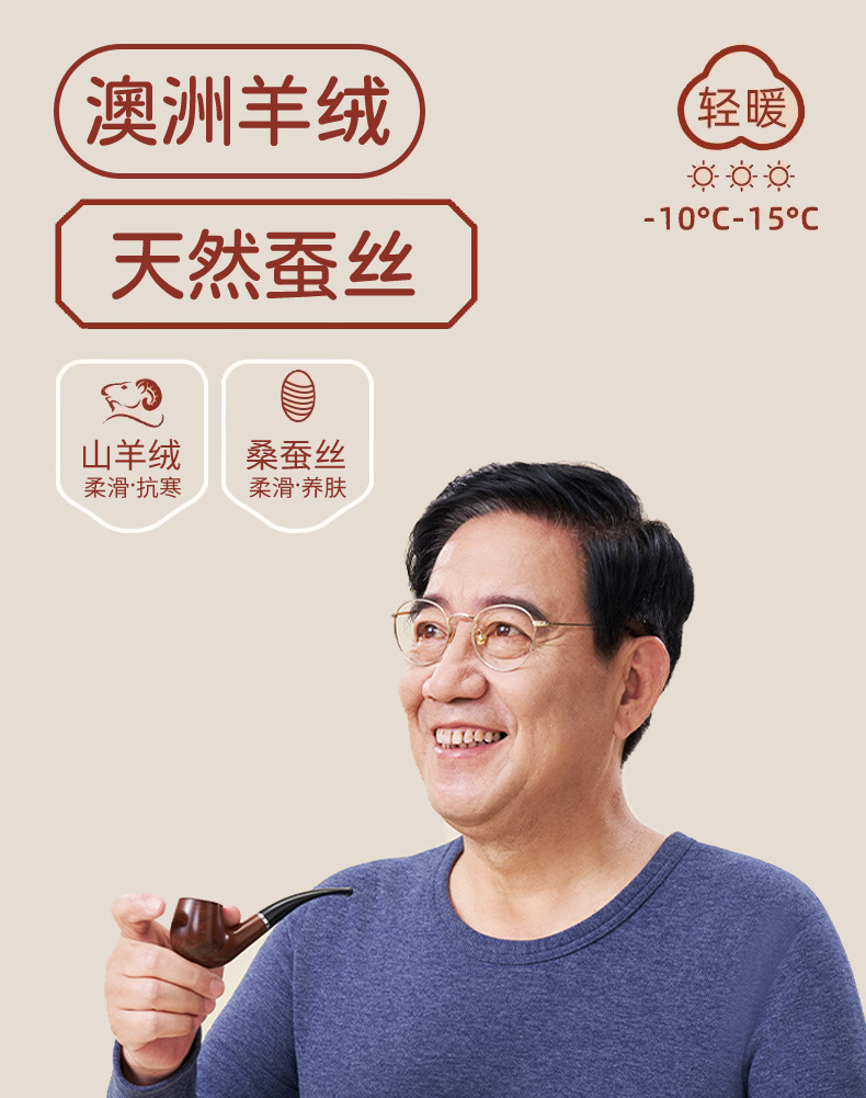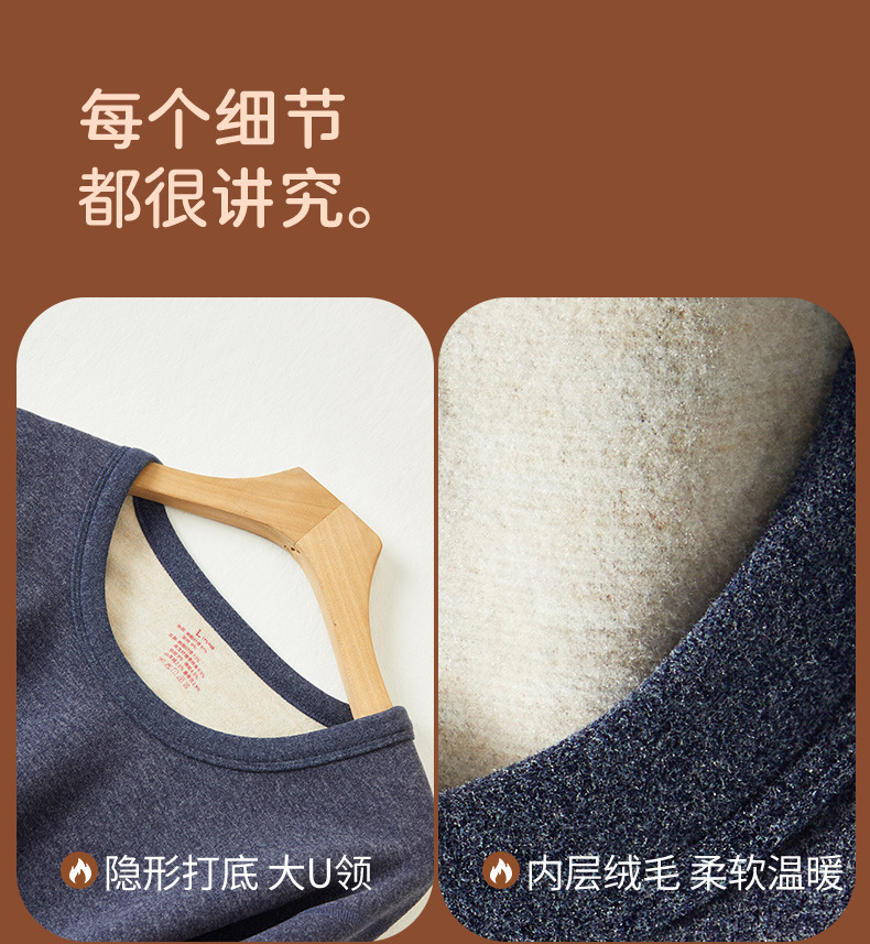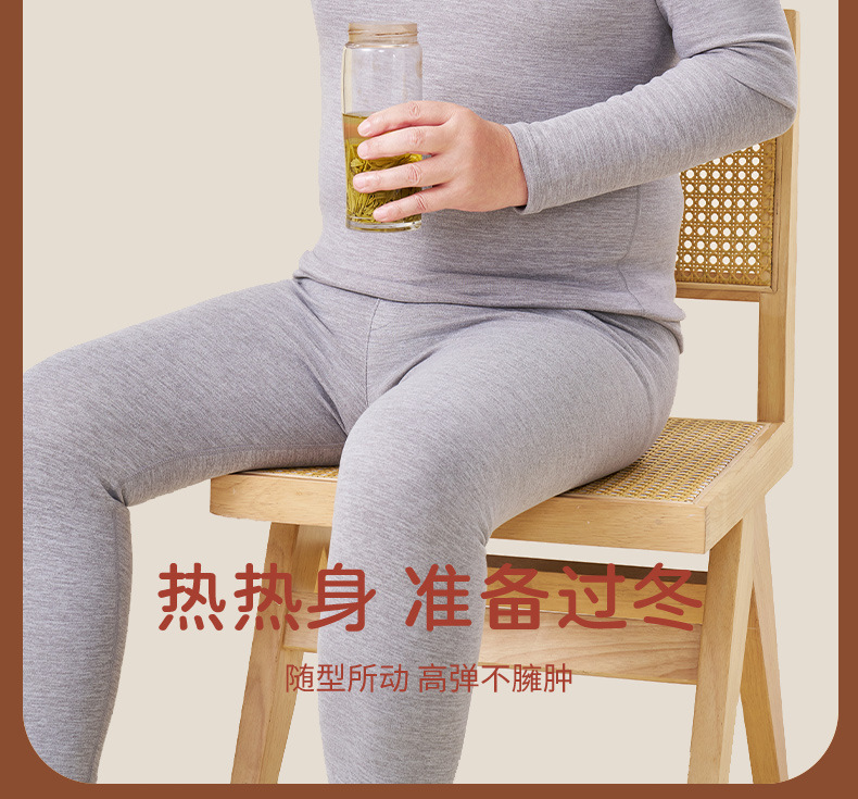 【德绒羊绒妈妈秋衣秋裤套装】打底中老年爸爸发热保暖内衣 棉毛衫冬