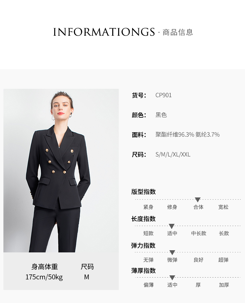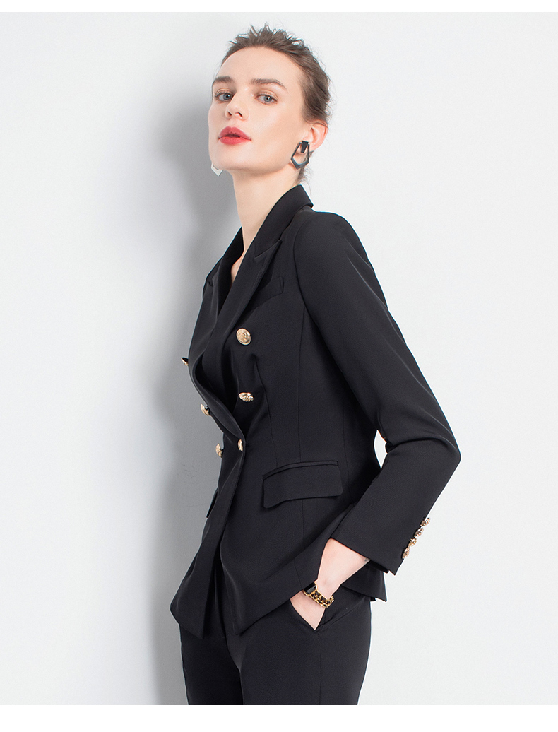 IWY/黑色双排扣职业裤套装女时尚高端日常办公室气质名媛制服团队 cp901