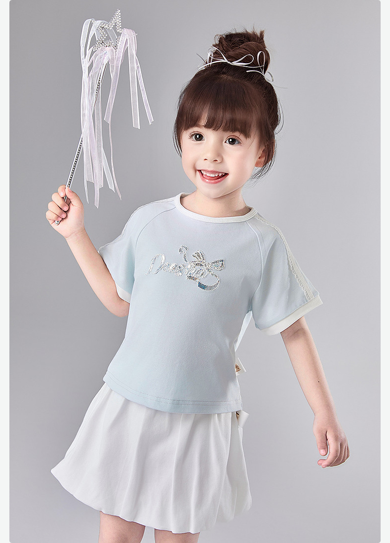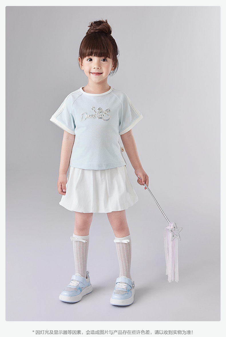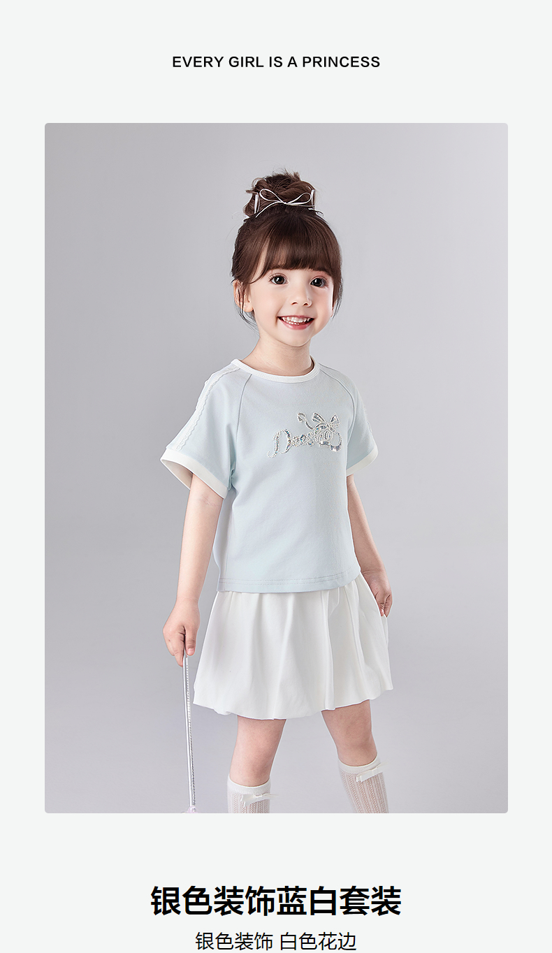 笛莎Deesha 童装女童套装2025夏新款女童银色装饰蓝白套装