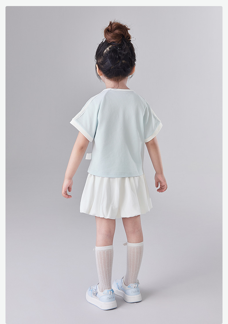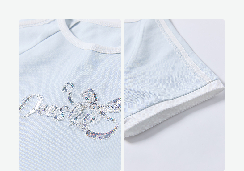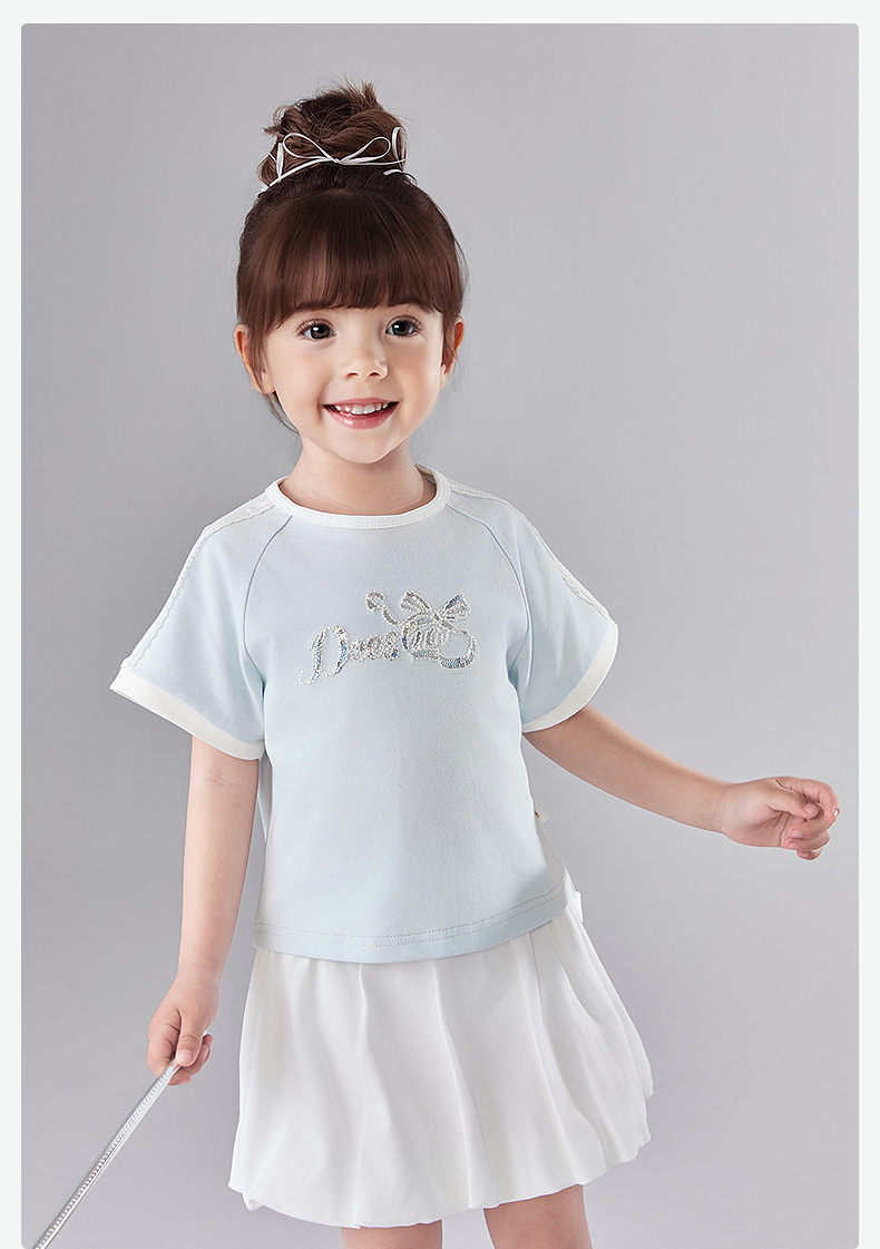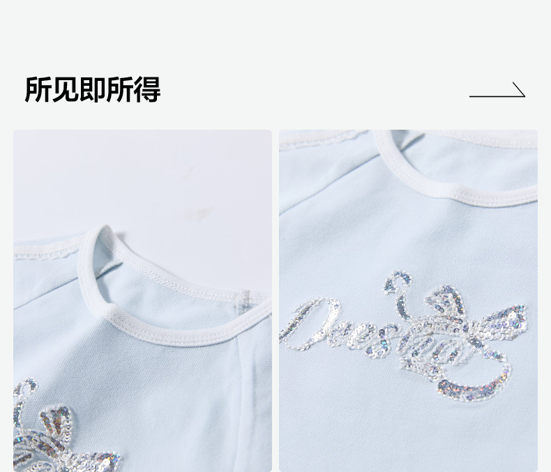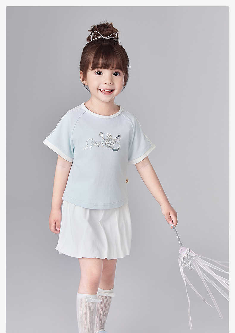 笛莎Deesha 童装女童套装2025夏新款女童银色装饰蓝白套装