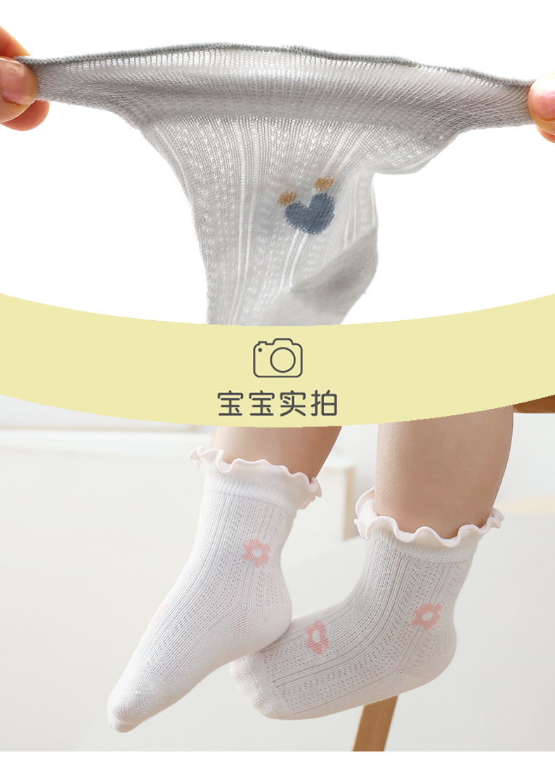 【儿童袜子】夏季宝宝袜子中大童男女童薄款网眼玻璃丝袜子木耳边儿童袜子