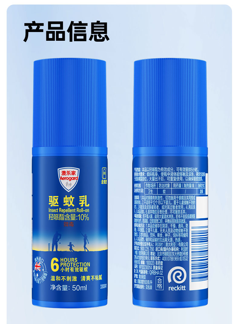 【驱蚊走珠50ml】Aerogard 澳乐家驱蚊液驱蚊6小时!驱蚊水派卡瑞丁 防蚊虫蠓虫户外随身 驱蚊乳50ml