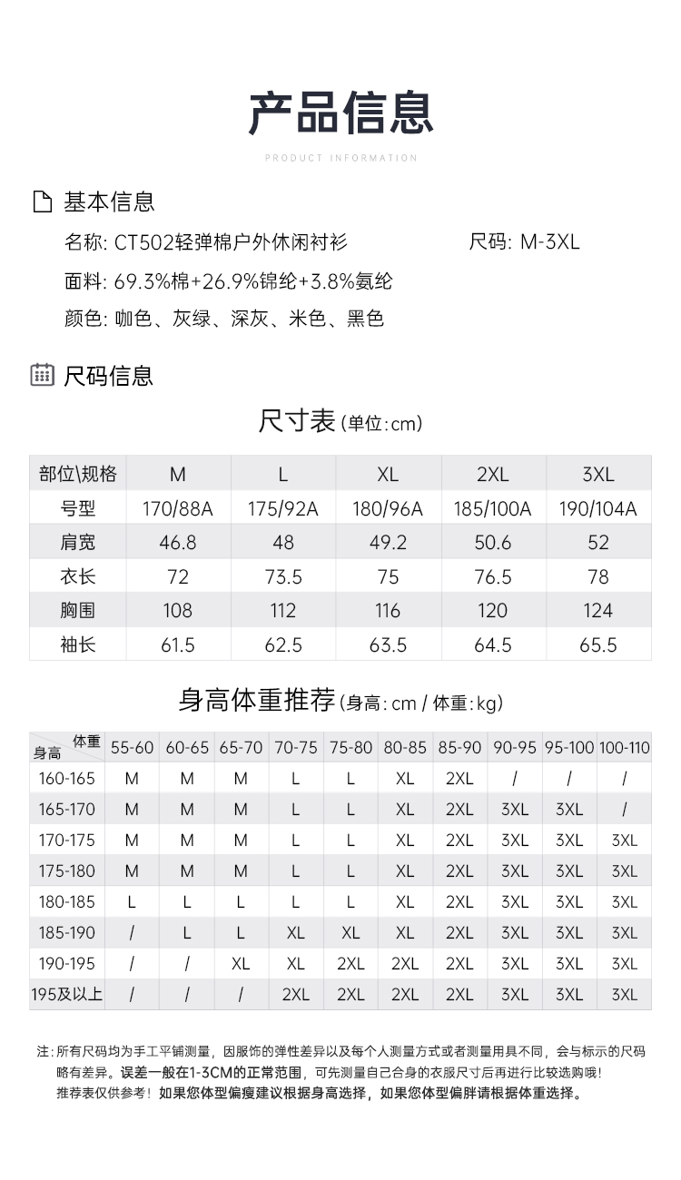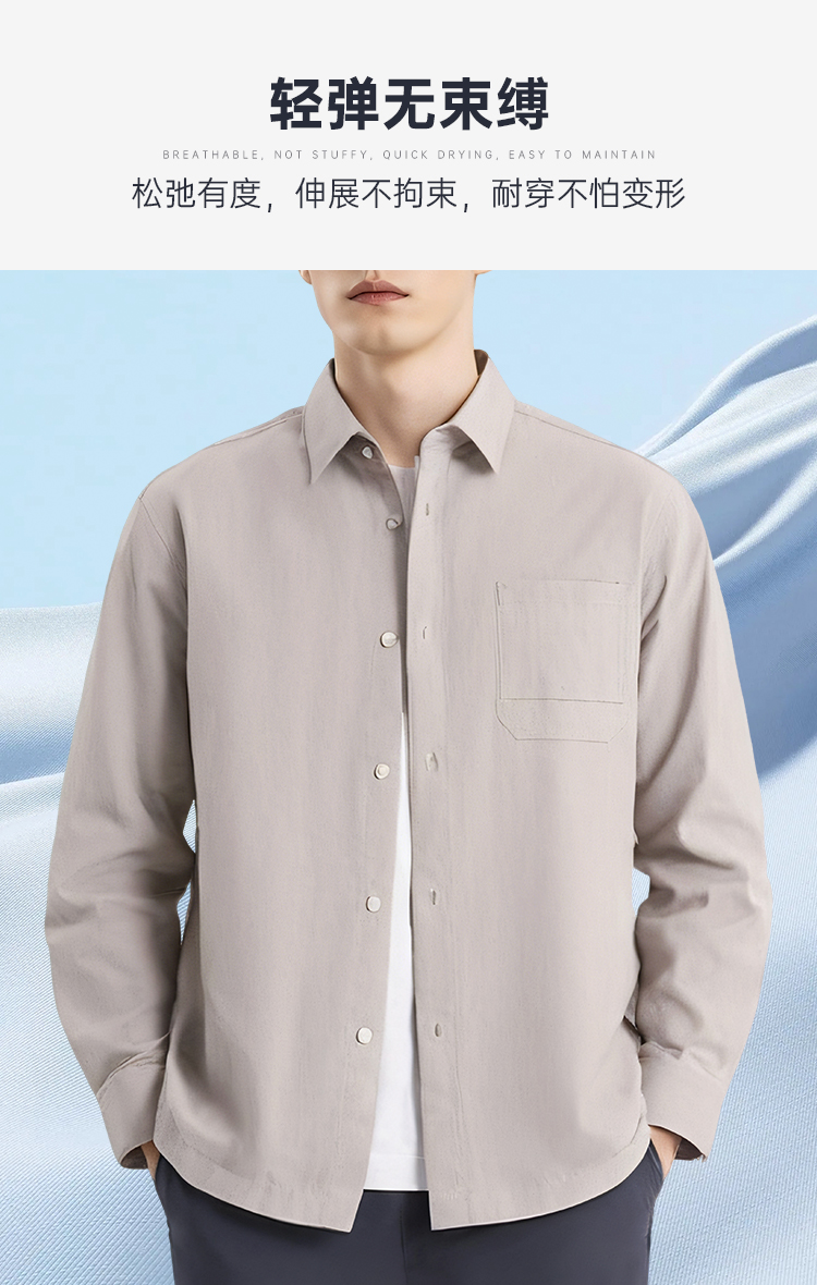 【实付满399送保温杯】【实付满399送保温杯】【轻弹棉户外休闲衬衫】清爽休闲衬衫男士长袖通勤衬衣外套CT502