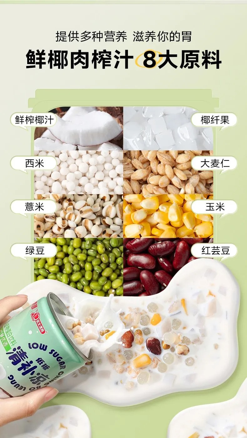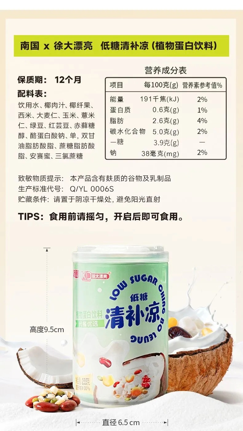 【鲜椰肉榨汁】低糖椰奶清补凉 南国食品 0添加代餐 255g*6瓶