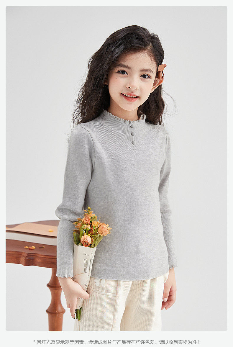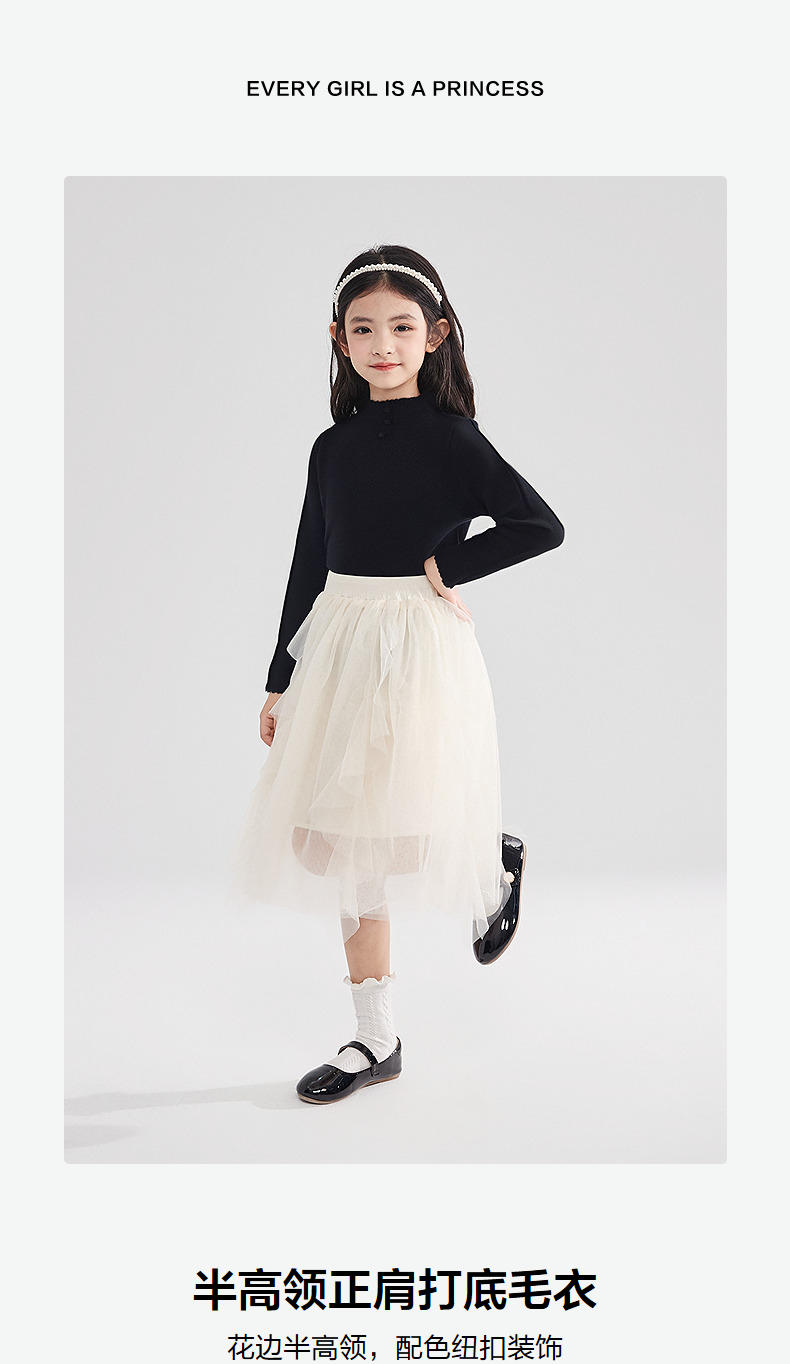 笛莎Deesha 童装女童毛衫2025秋新款女童半高领正肩打底毛衣