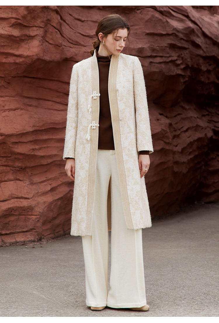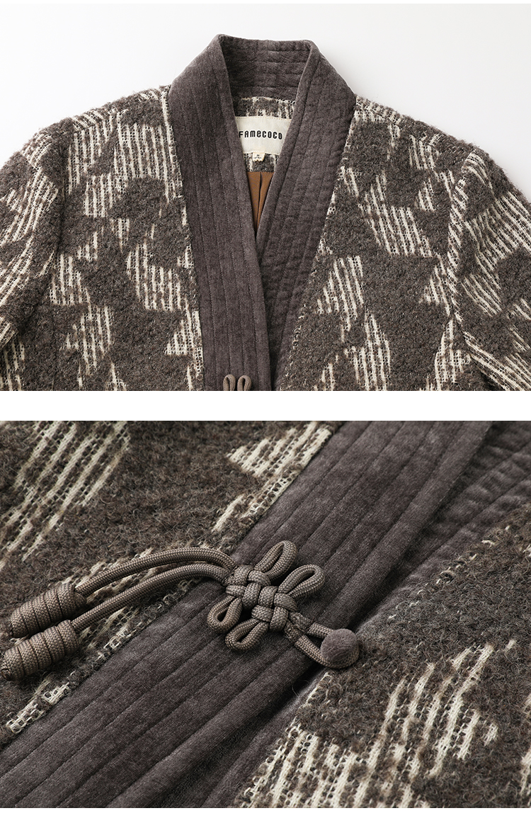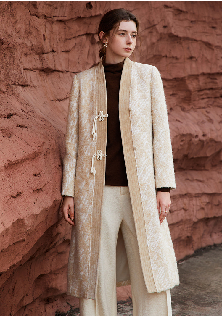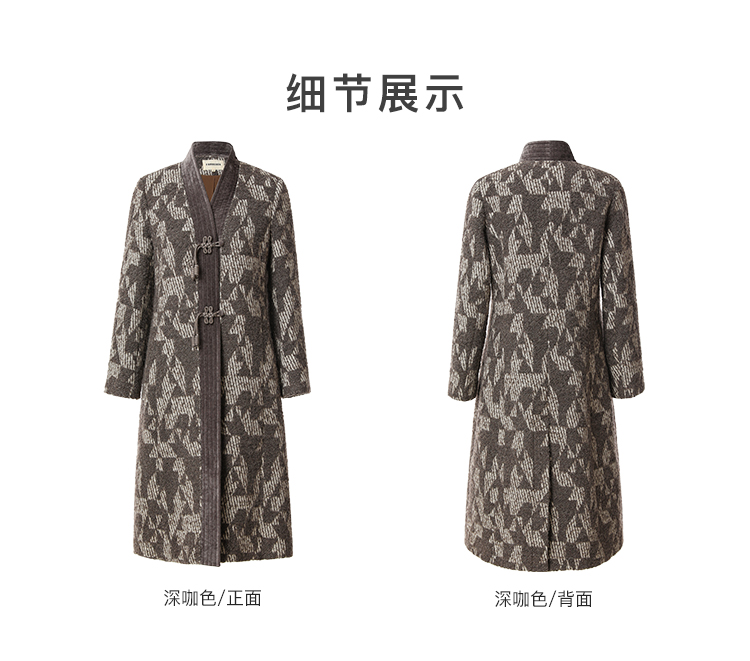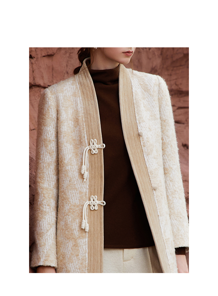 Famecoco范可儿新中式盘扣国风毛呢大衣女秋冬FAB8AN030
