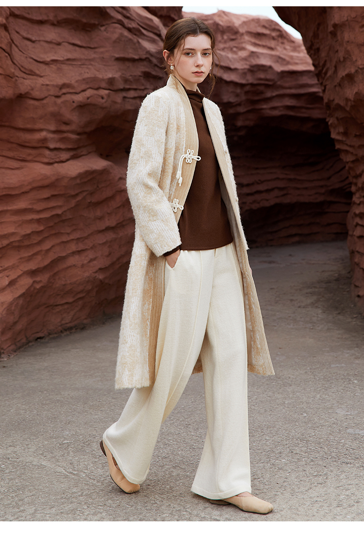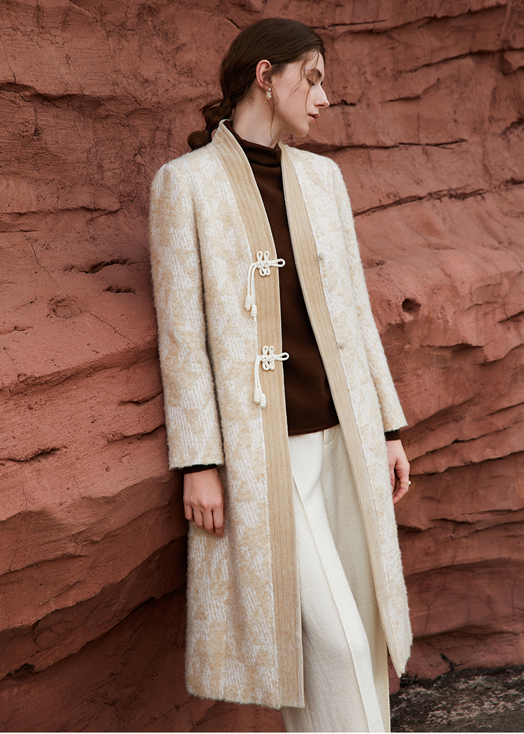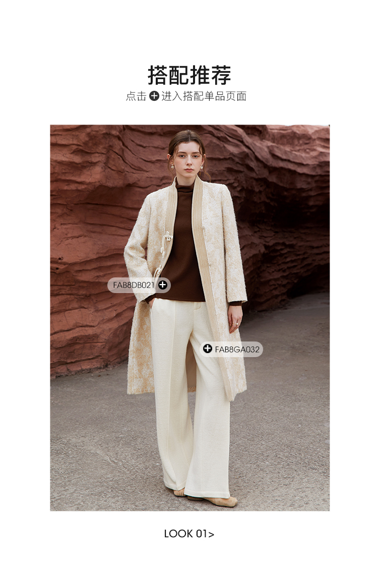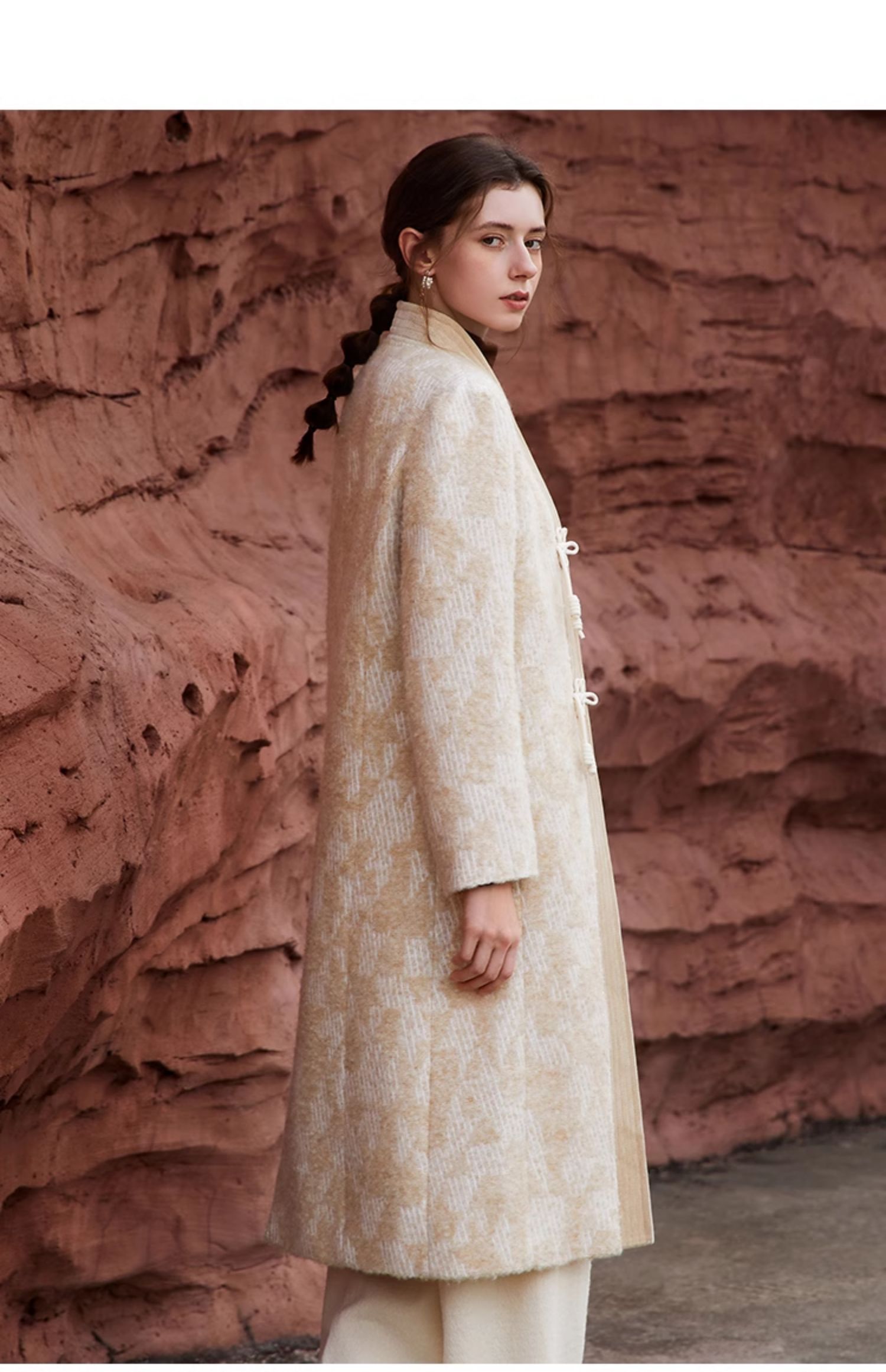 Famecoco范可儿新中式盘扣国风毛呢大衣女秋冬FAB8AN030
