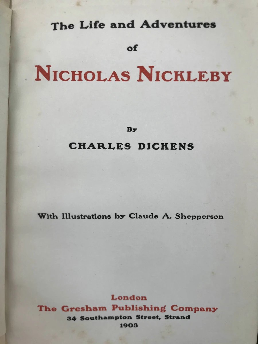 1903年 狄更斯《尼古拉斯·尼克贝》 8幅插图 漆布精装大32开