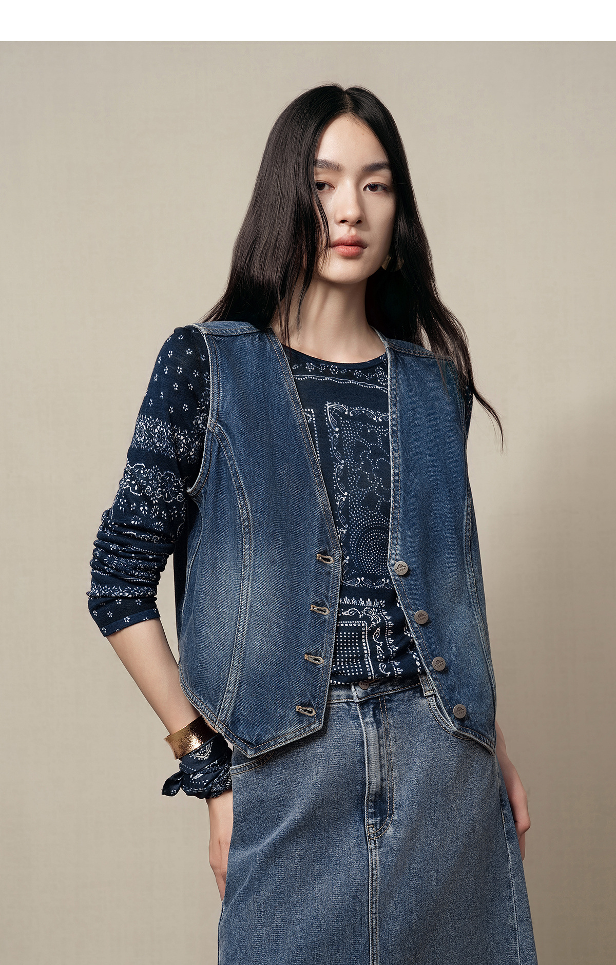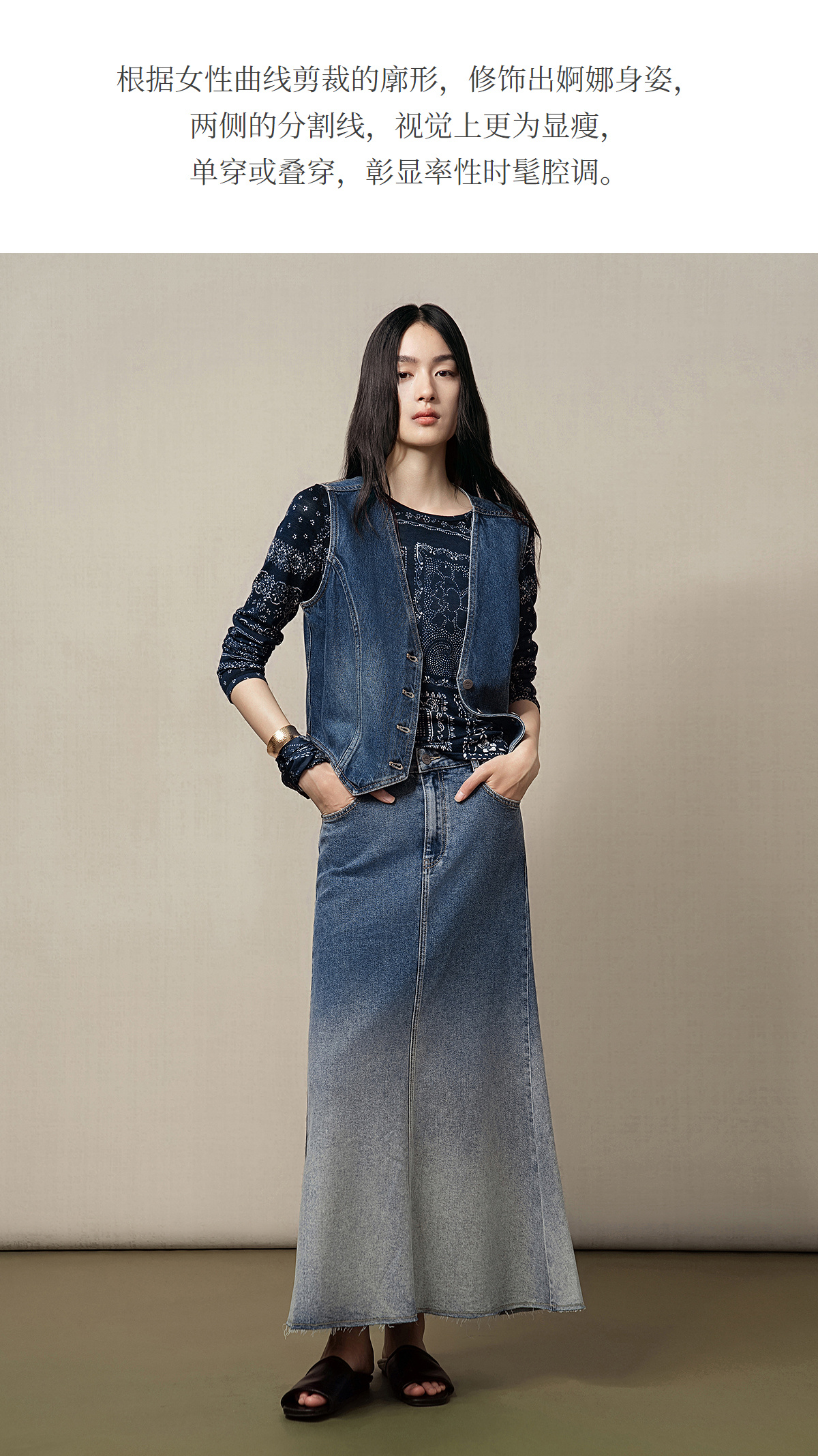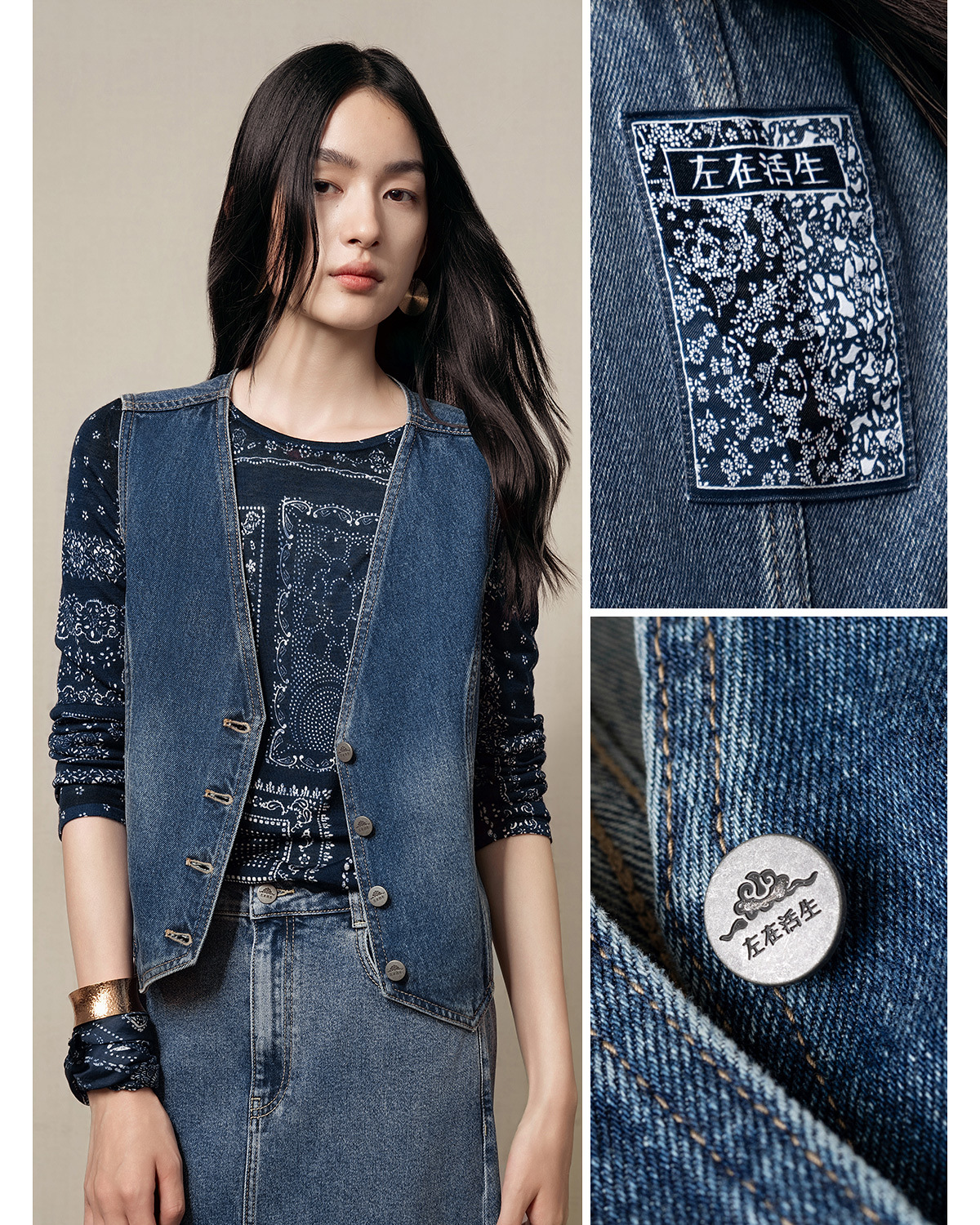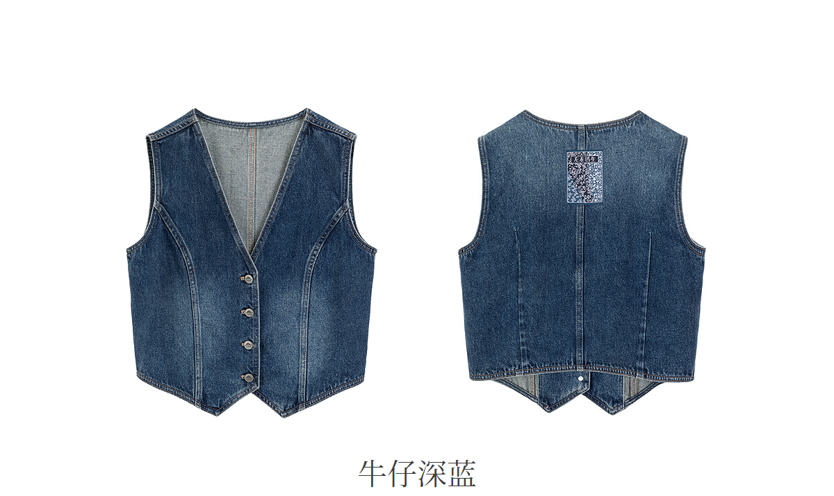 【林栖设计小店】(现货)【草木丹宁】牛仔马甲短款修身百搭2025秋季新款上衣女G1653006