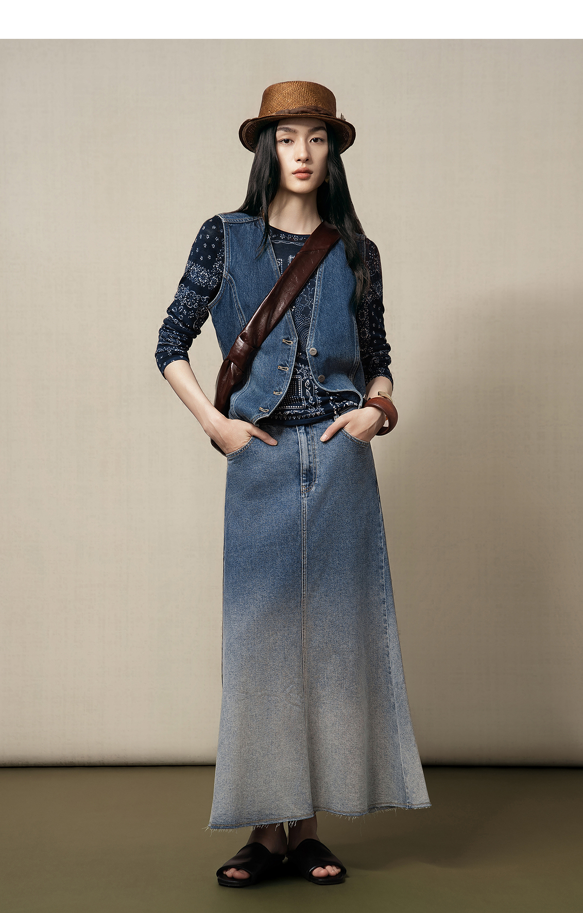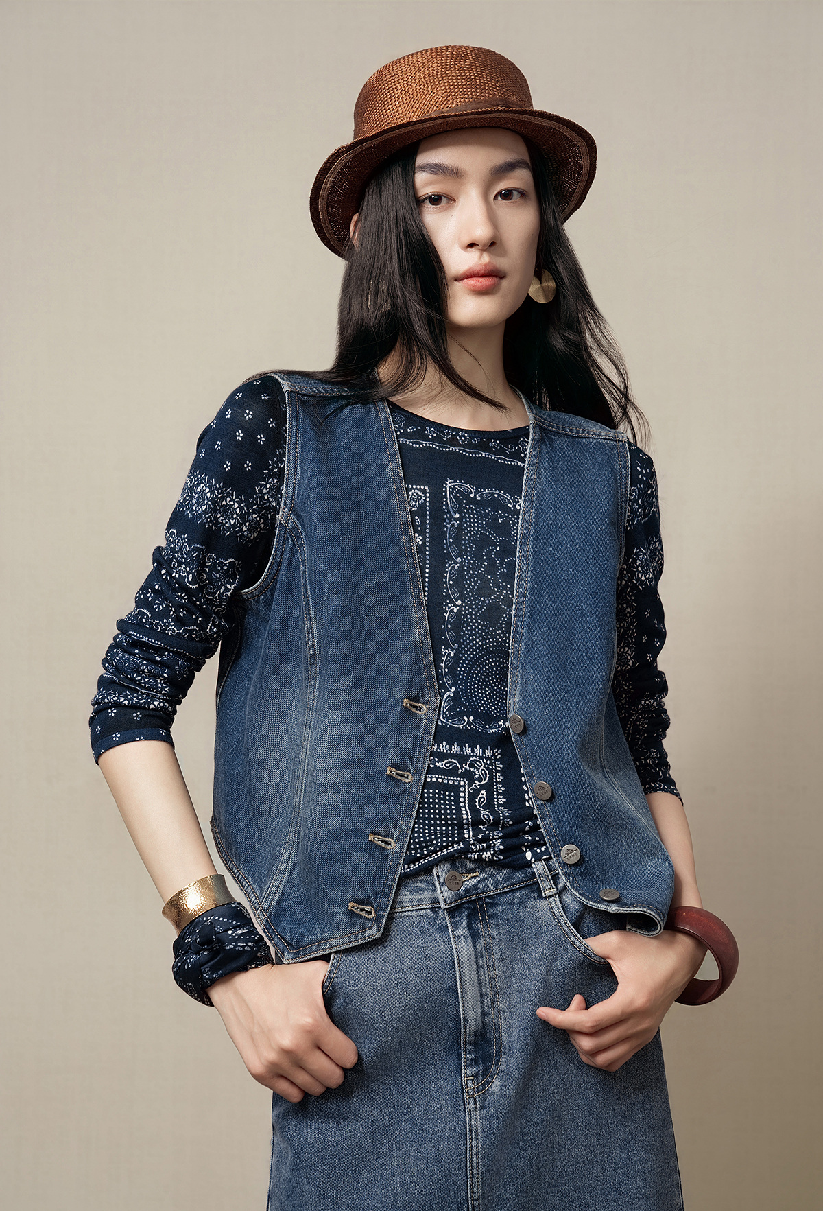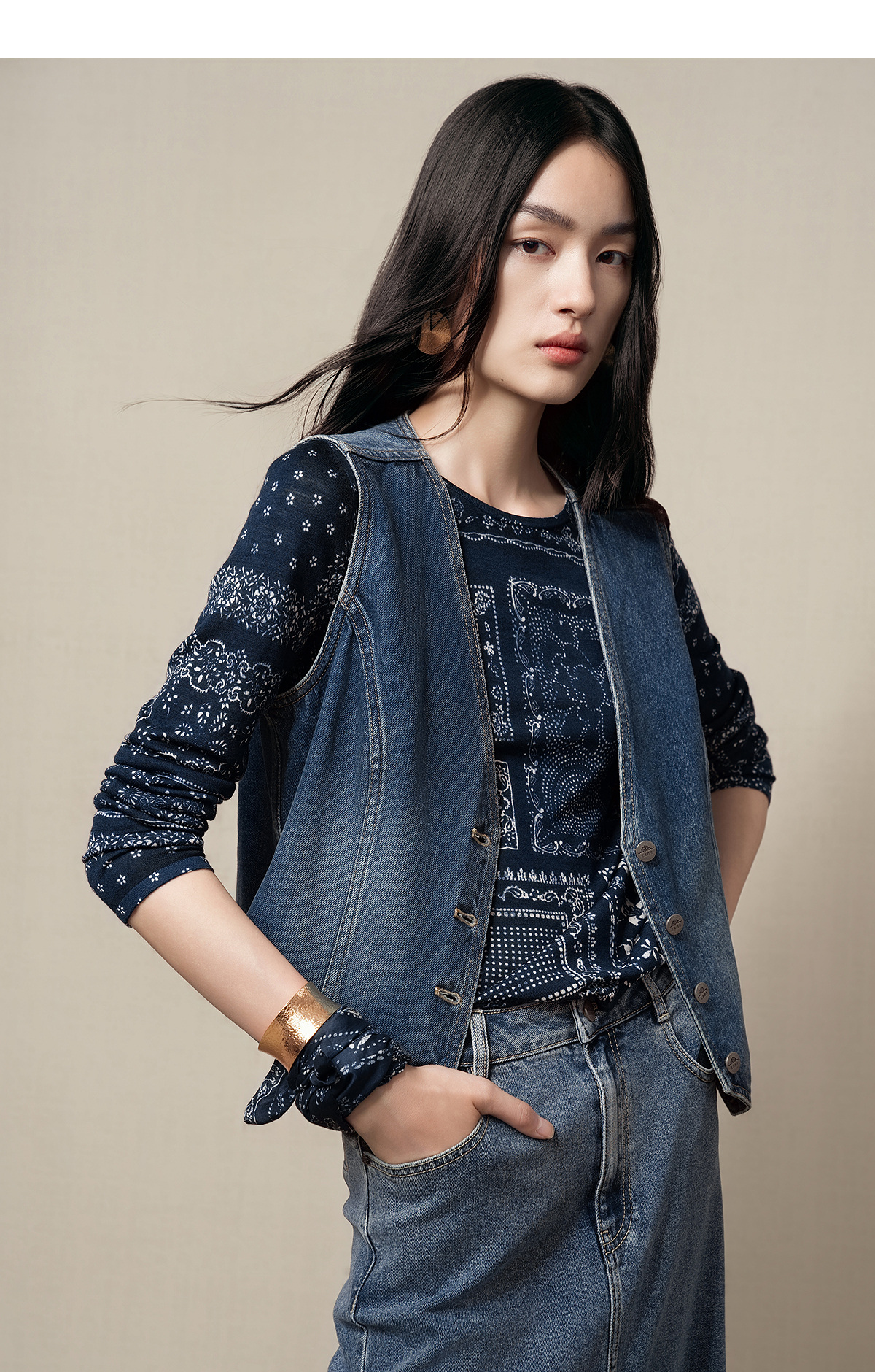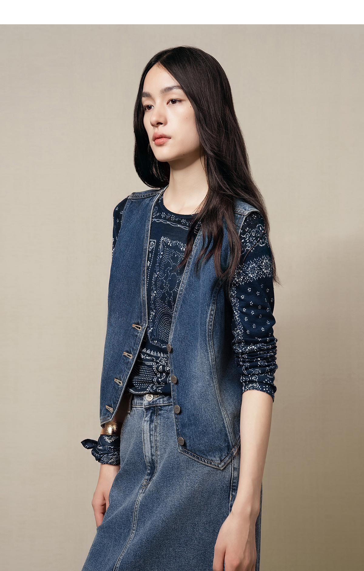 【林栖设计小店】(现货)【草木丹宁】牛仔马甲短款修身百搭2025秋季新款上衣女G1653006