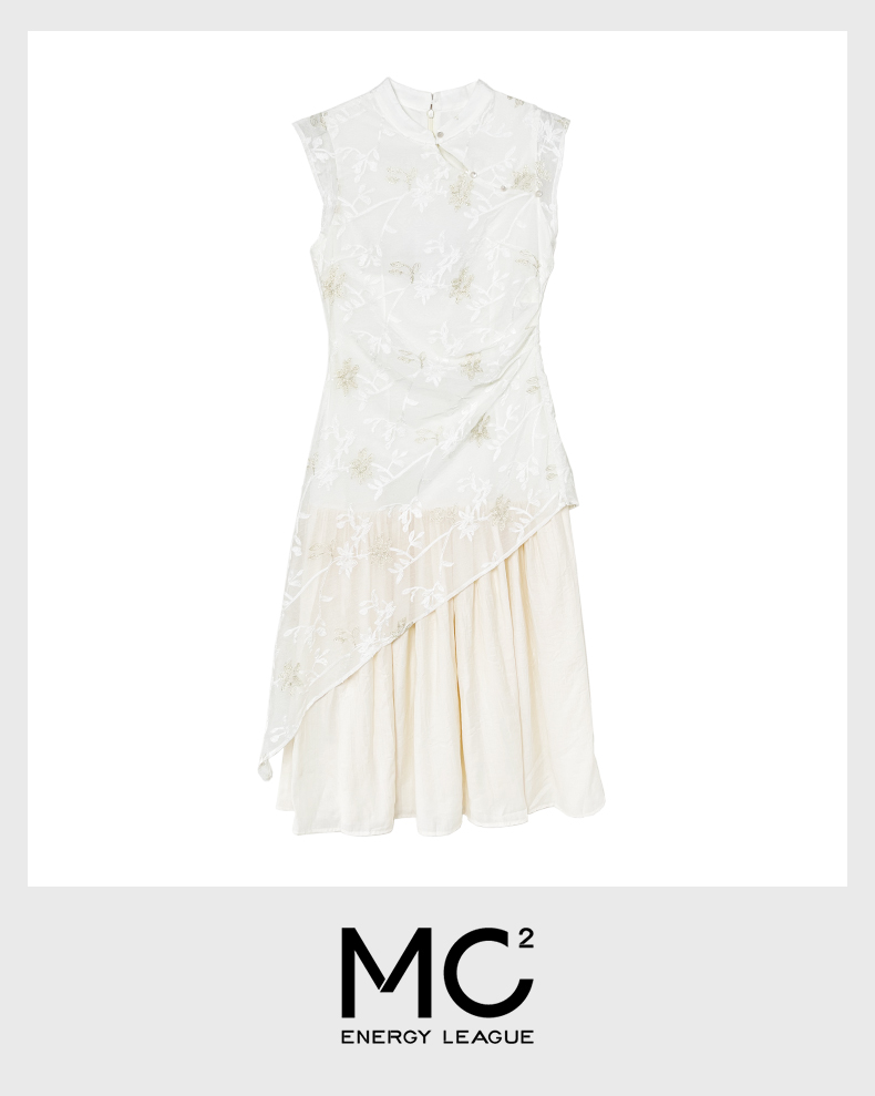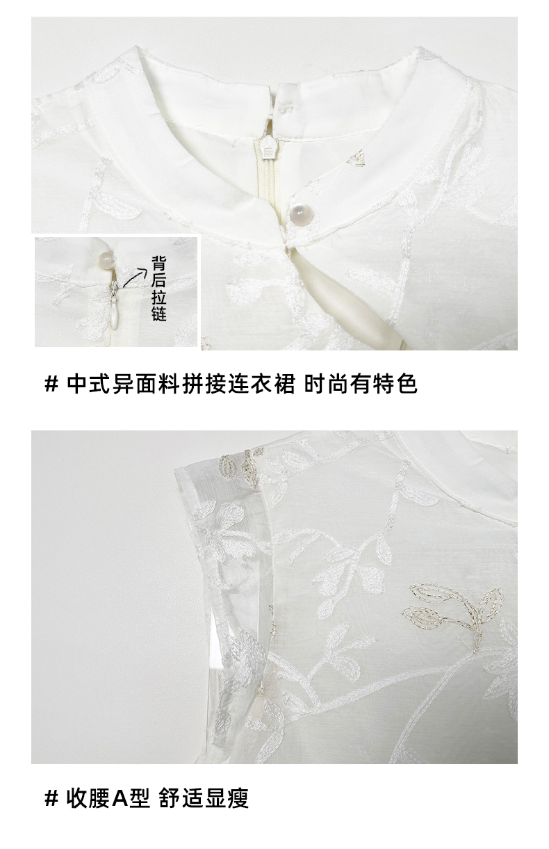 女装立领斜门襟蕾丝拼接中式连衣裙-1293Q5221005