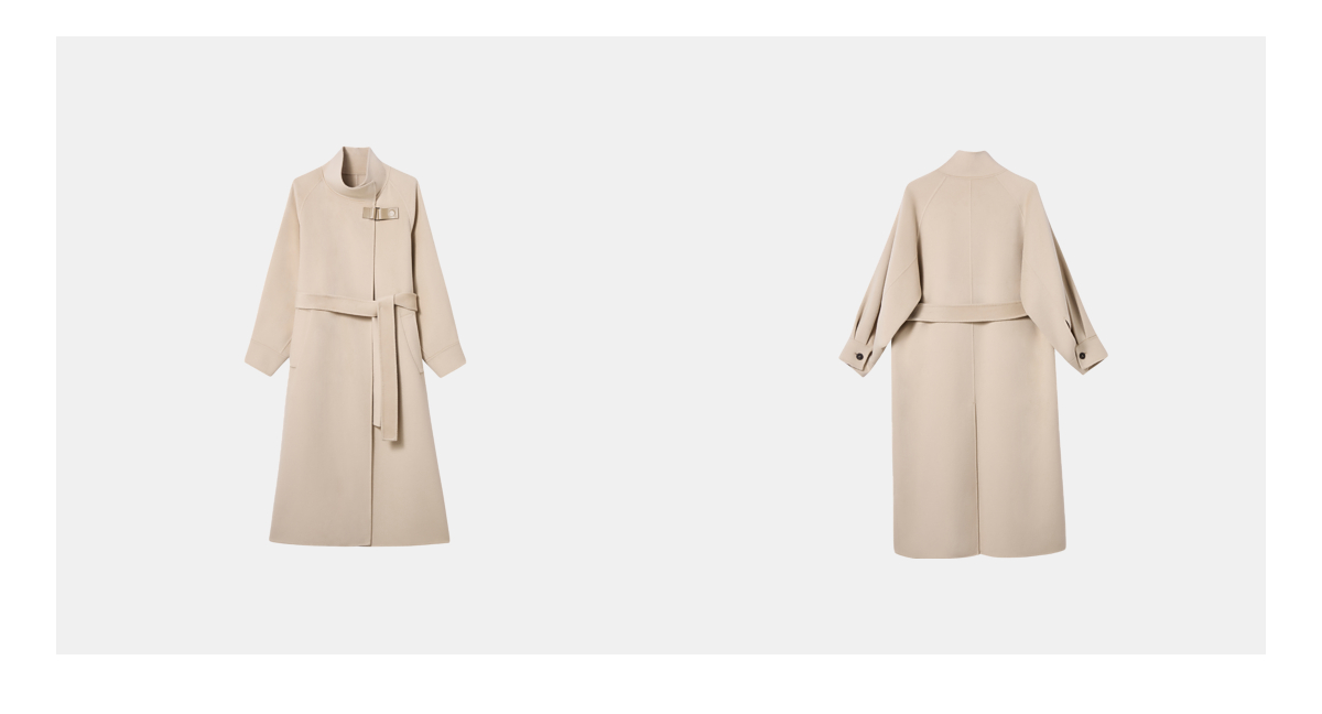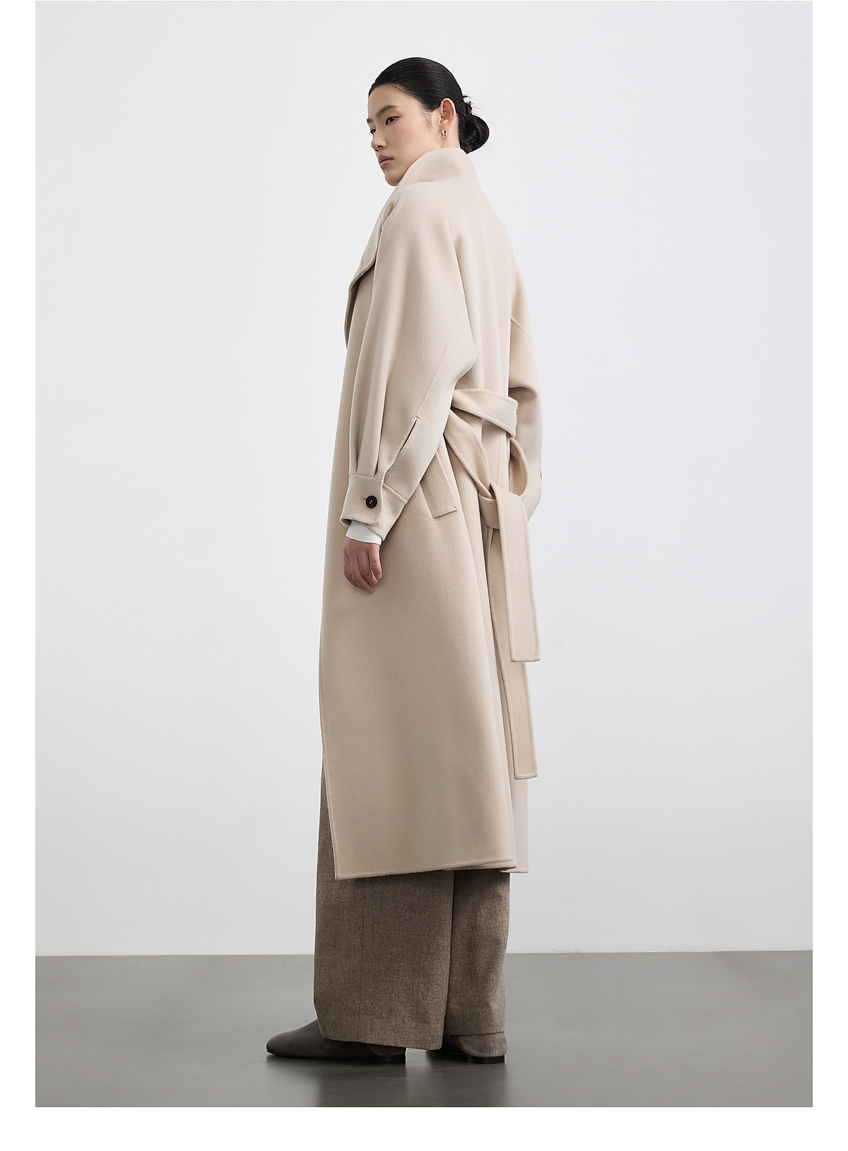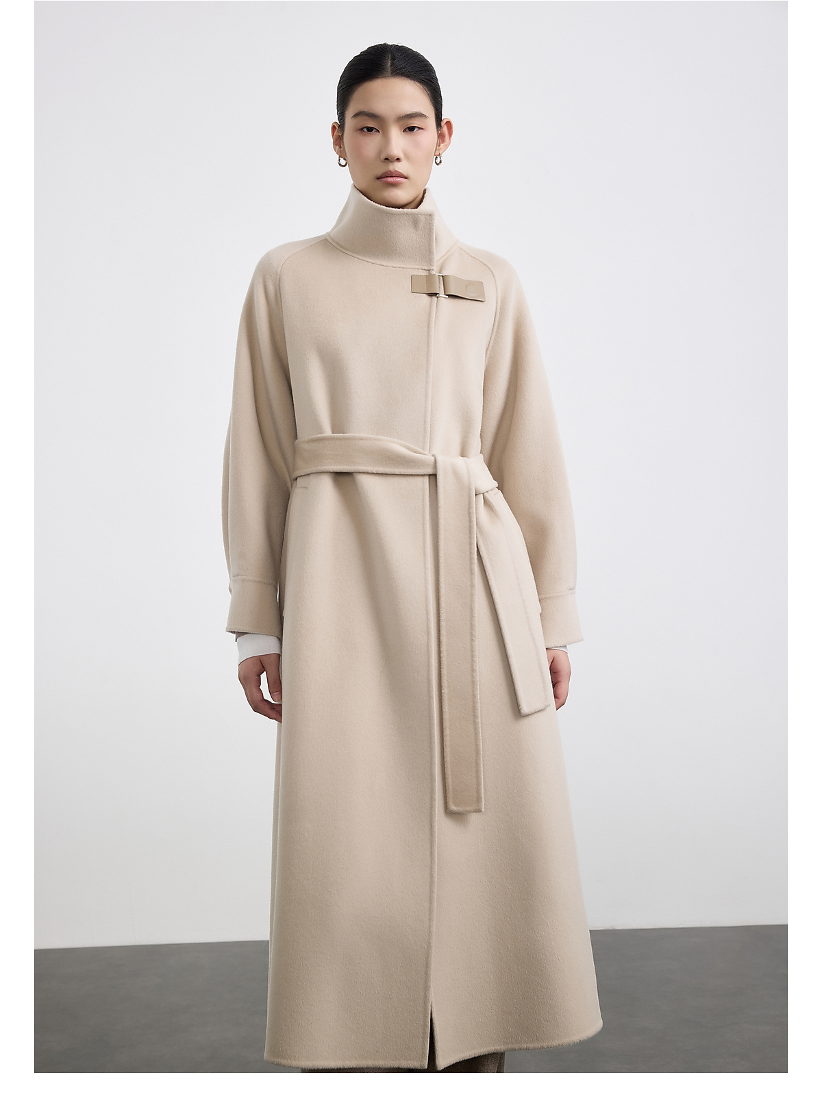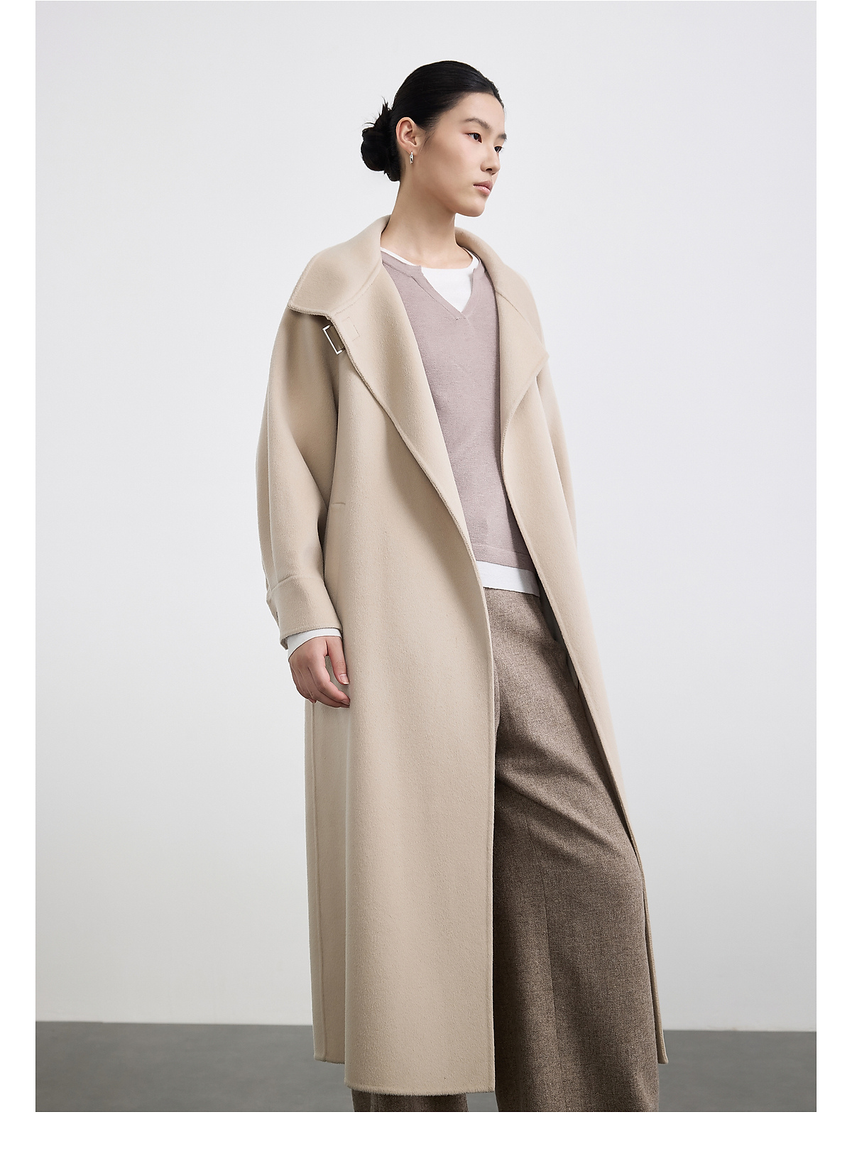 商场同款PURE TOUCH女装25秋冬羊绒毛呢大衣立领系带中长款外套