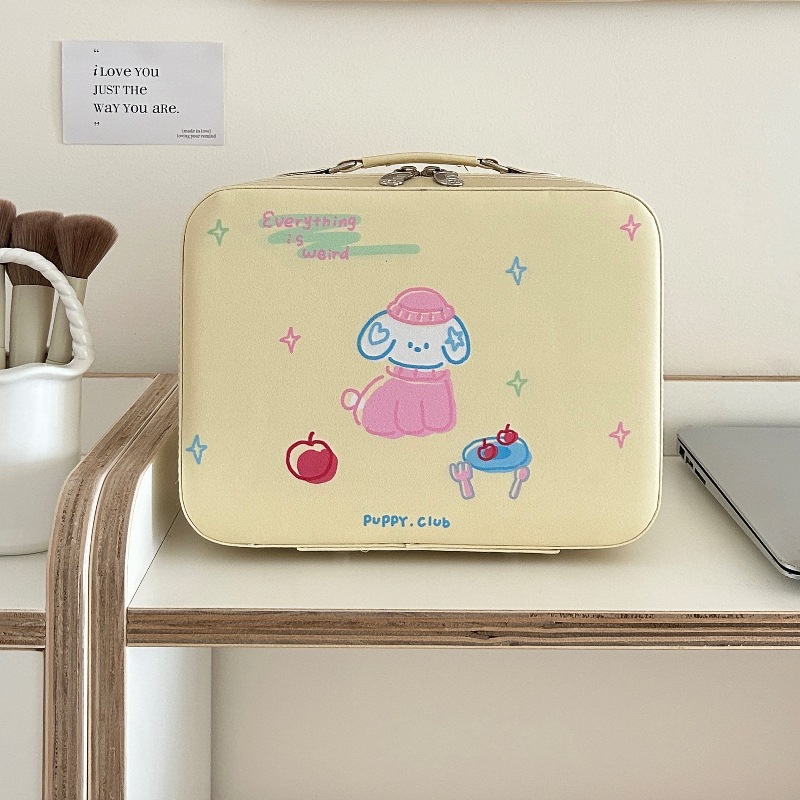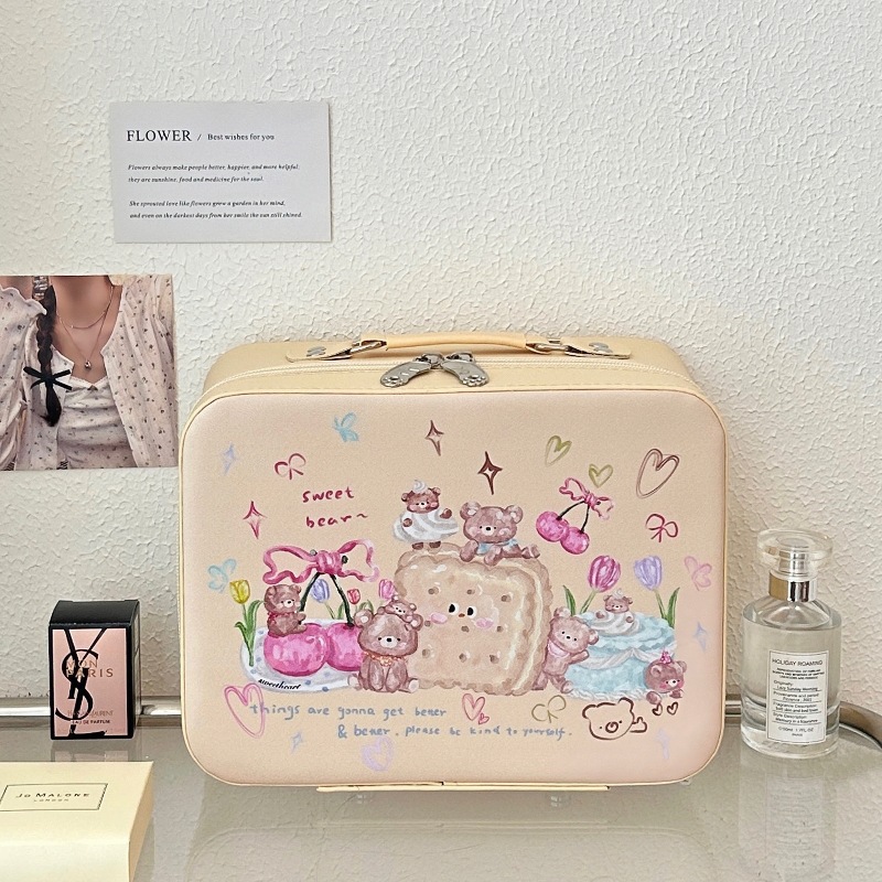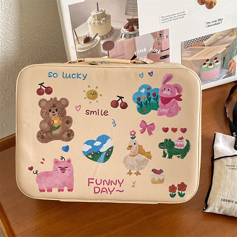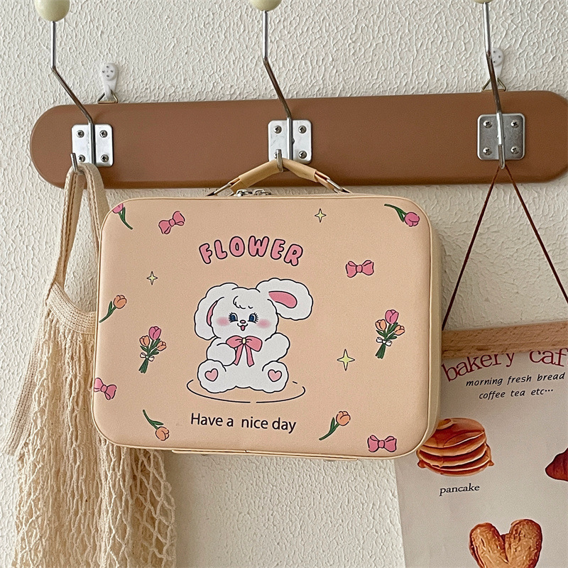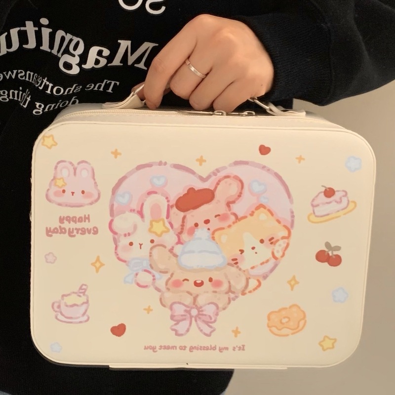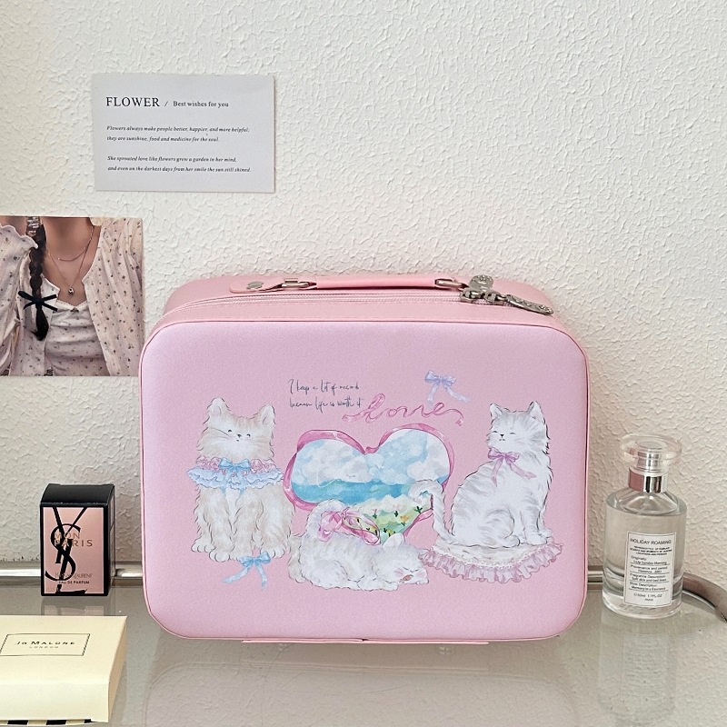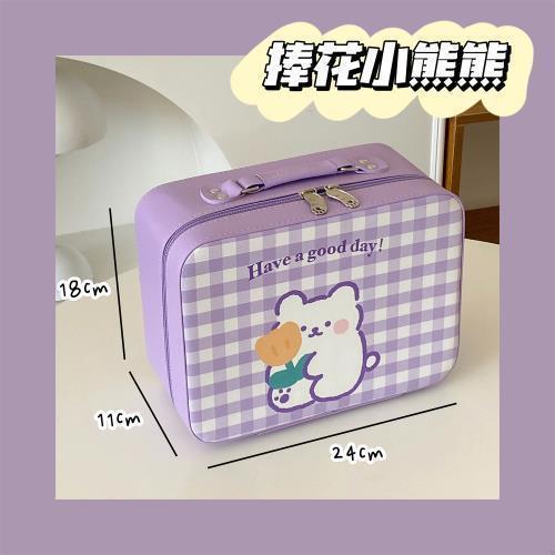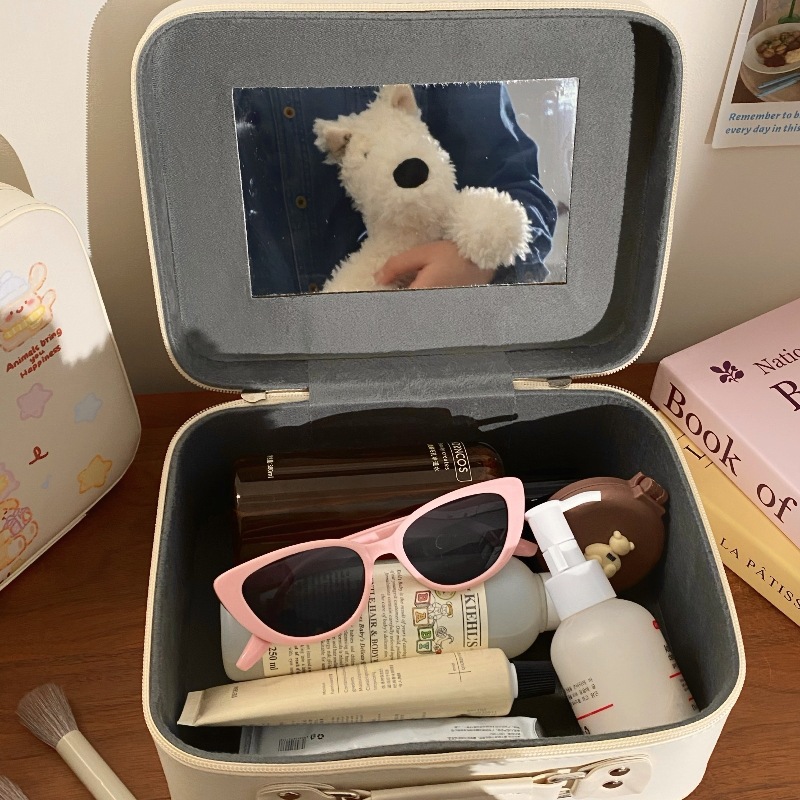 五一出行【敲可爱!大容量手提化妆包】出差旅行女便携收纳箱化妆品收纳盒带镜子一体洗漱包。ry