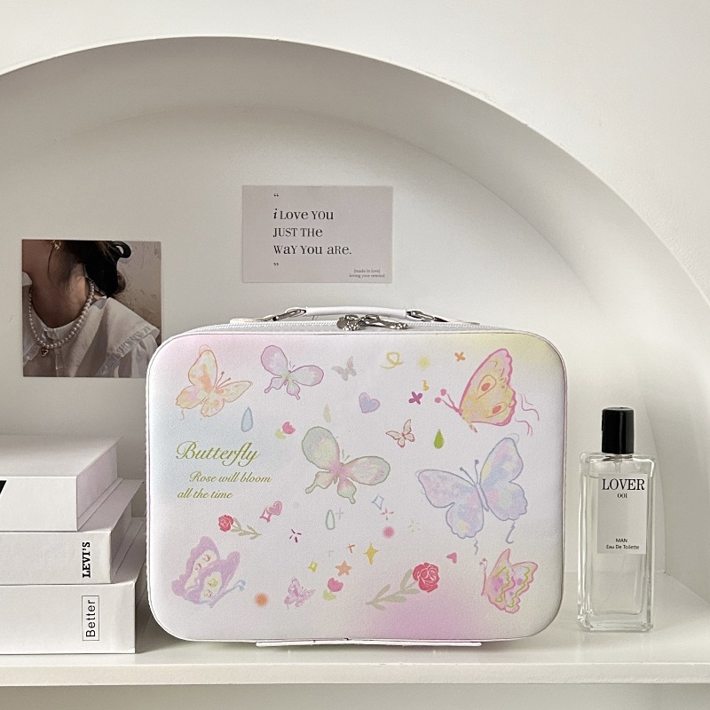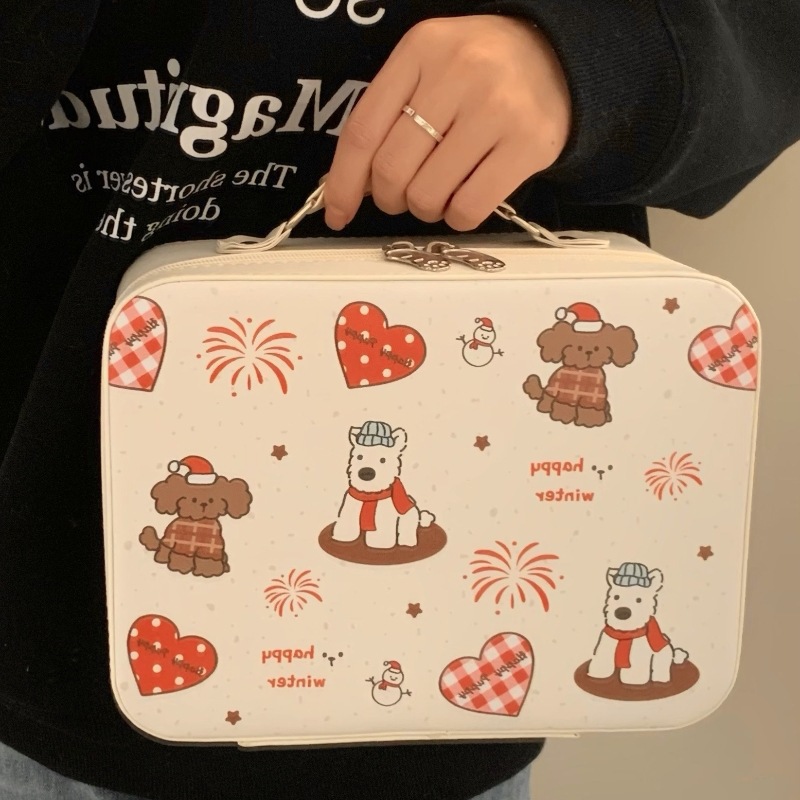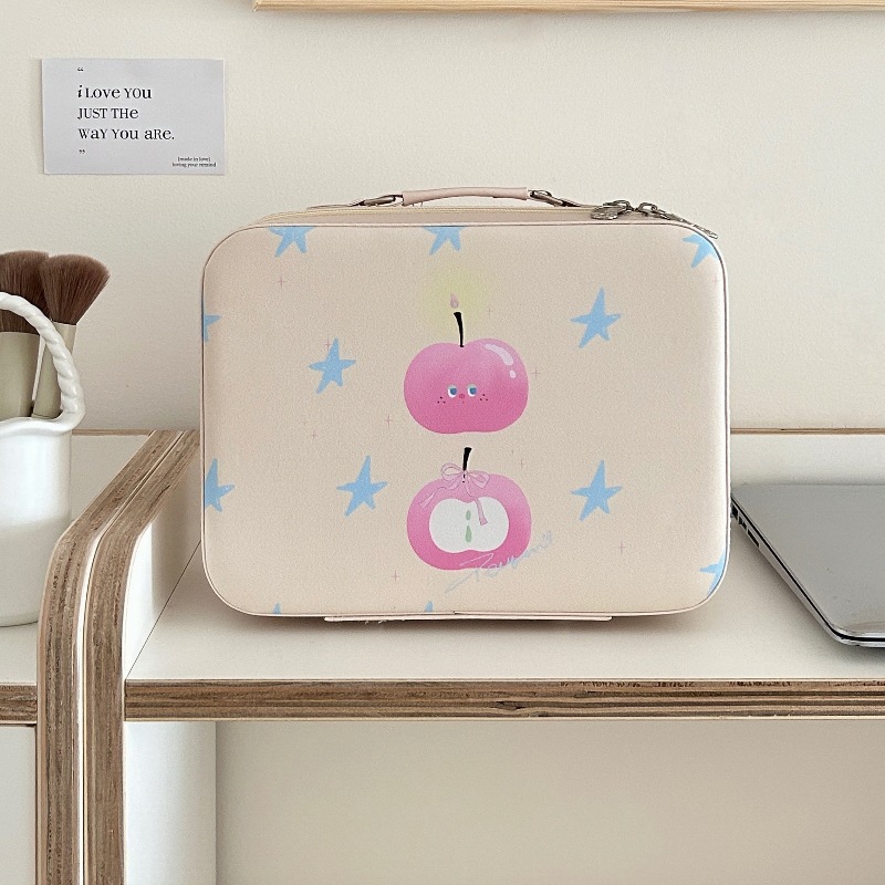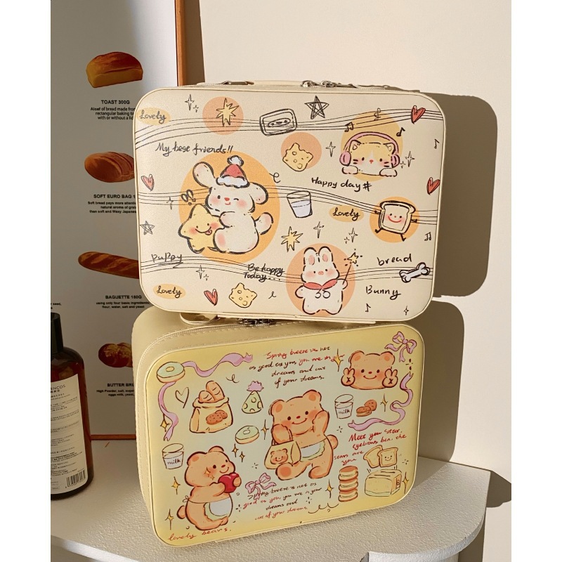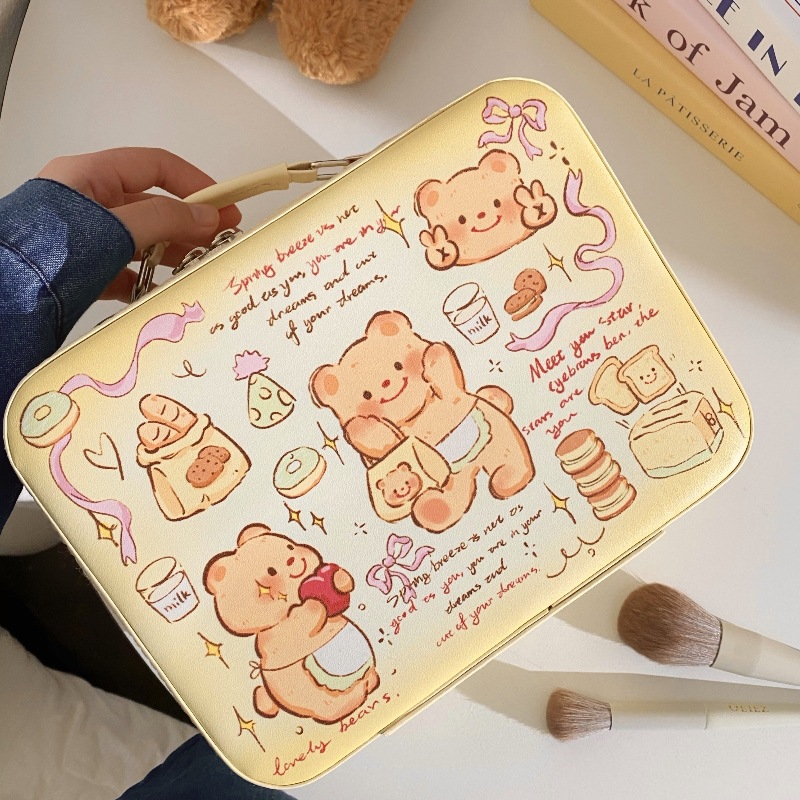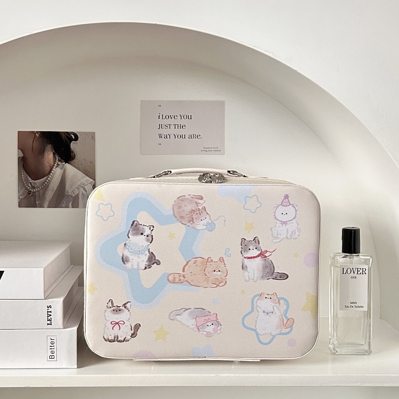 五一出行【敲可爱!大容量手提化妆包】出差旅行女便携收纳箱化妆品收纳盒带镜子一体洗漱包。ry