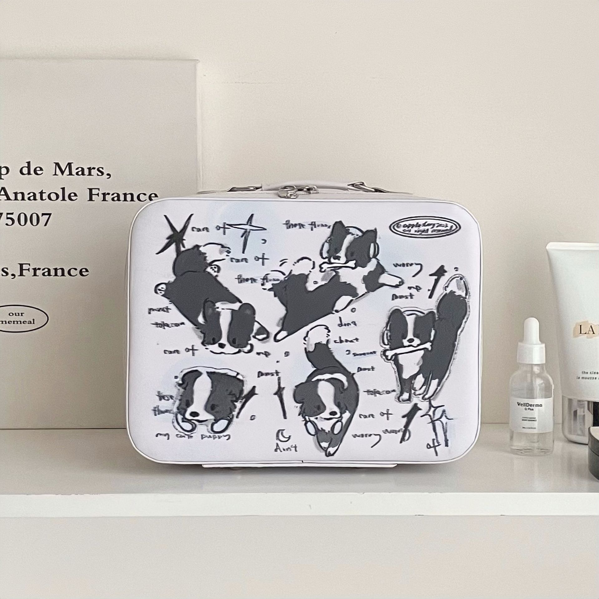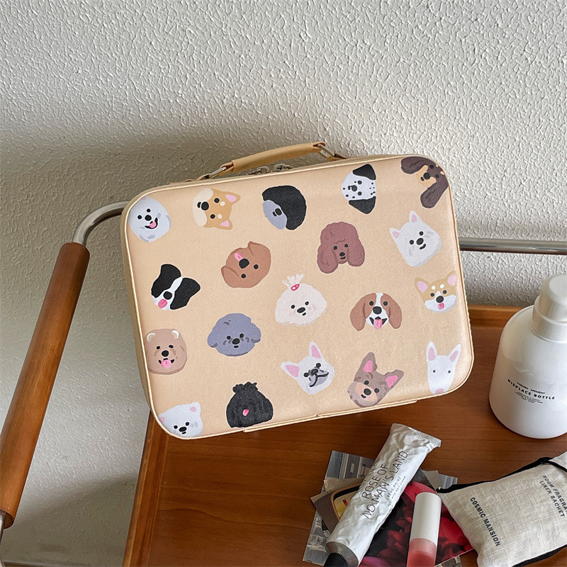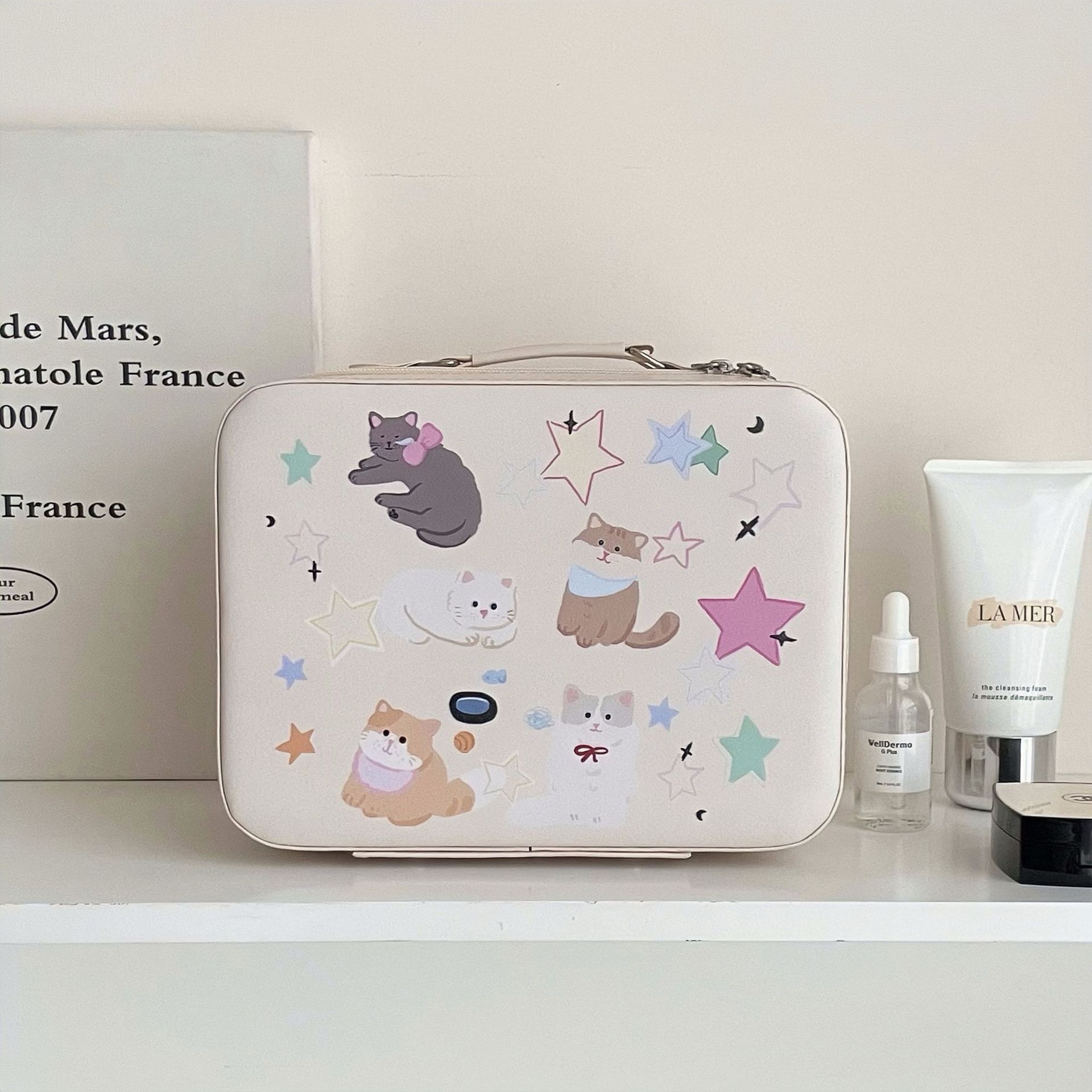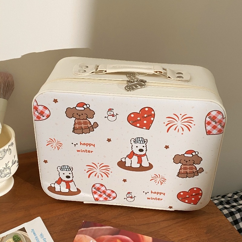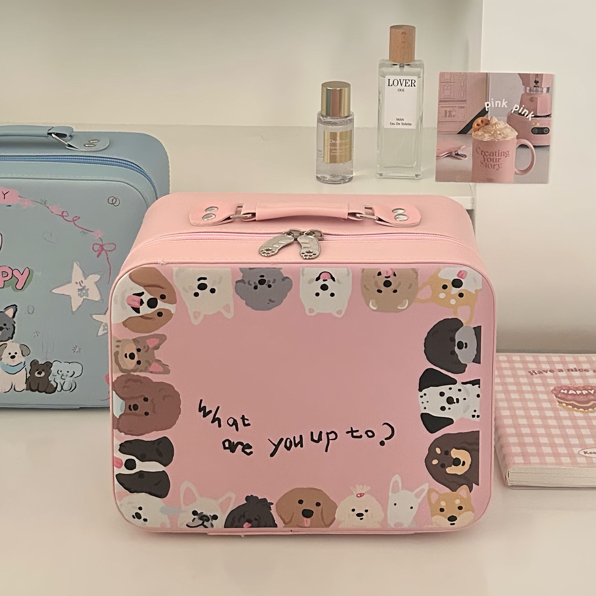五一出行【敲可爱!大容量手提化妆包】出差旅行女便携收纳箱化妆品收纳盒带镜子一体洗漱包。ry