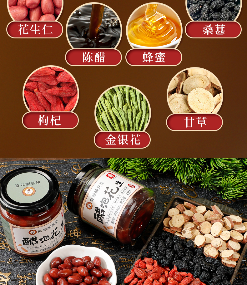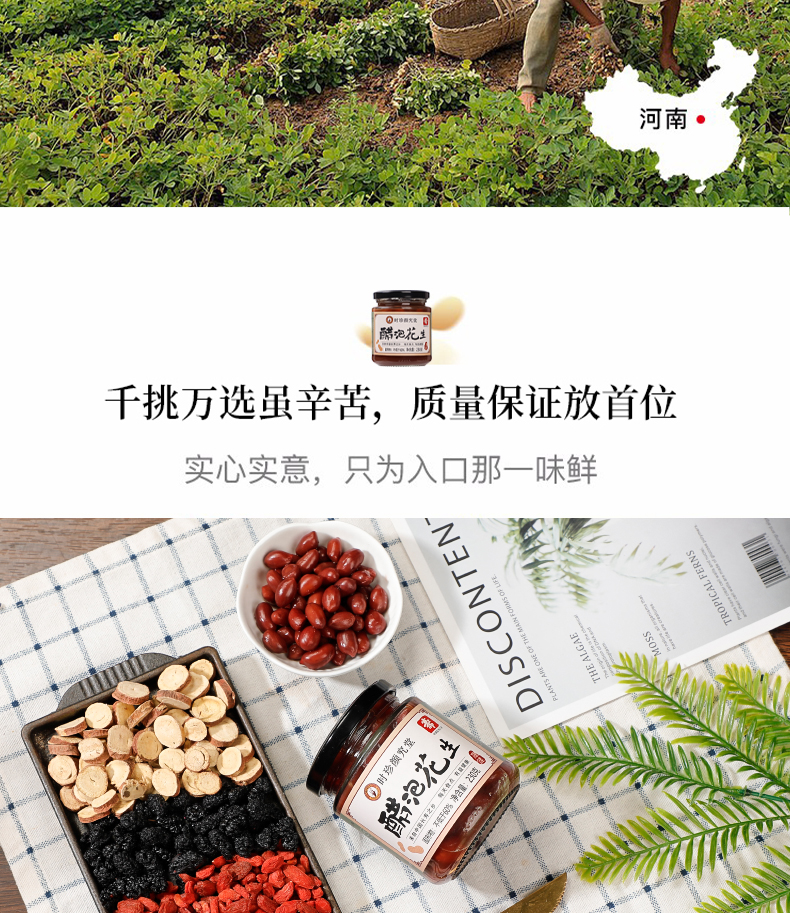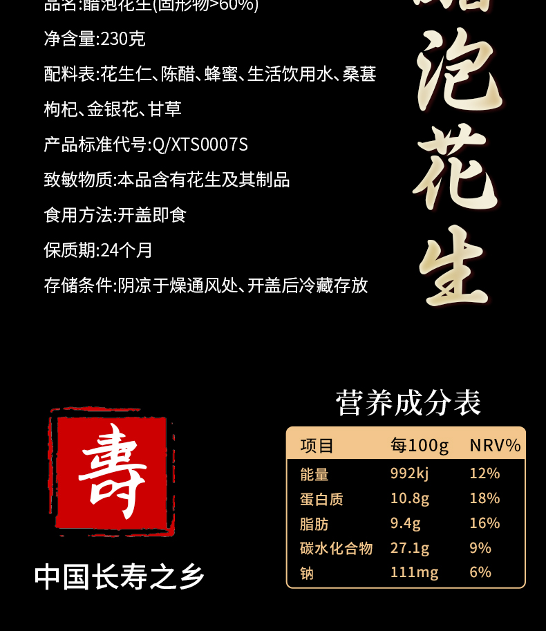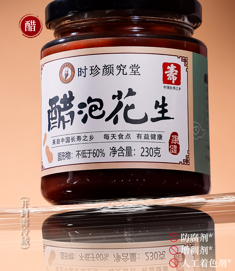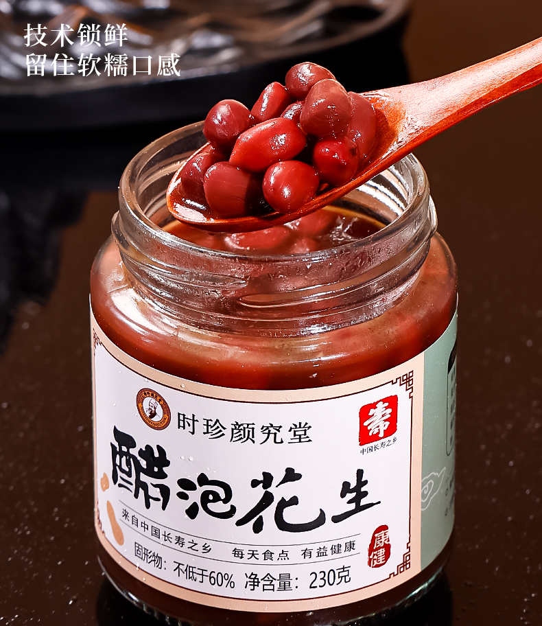 时珍颜究堂醋泡花生 230g/瓶 来自中国长寿之乡 多种营养 古法工艺 熟花生蜂蜜酸甜醋花生米即食