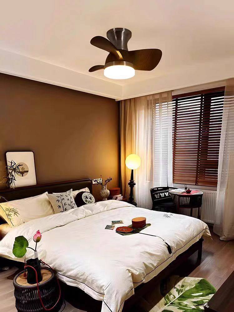 寸中古风扇纹色胡桃木复古变频电風扇22燈一体卧室家用吸顶灯餐厅