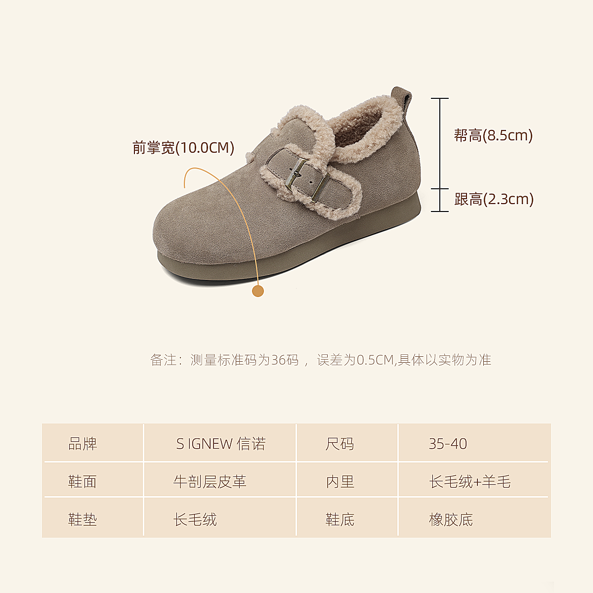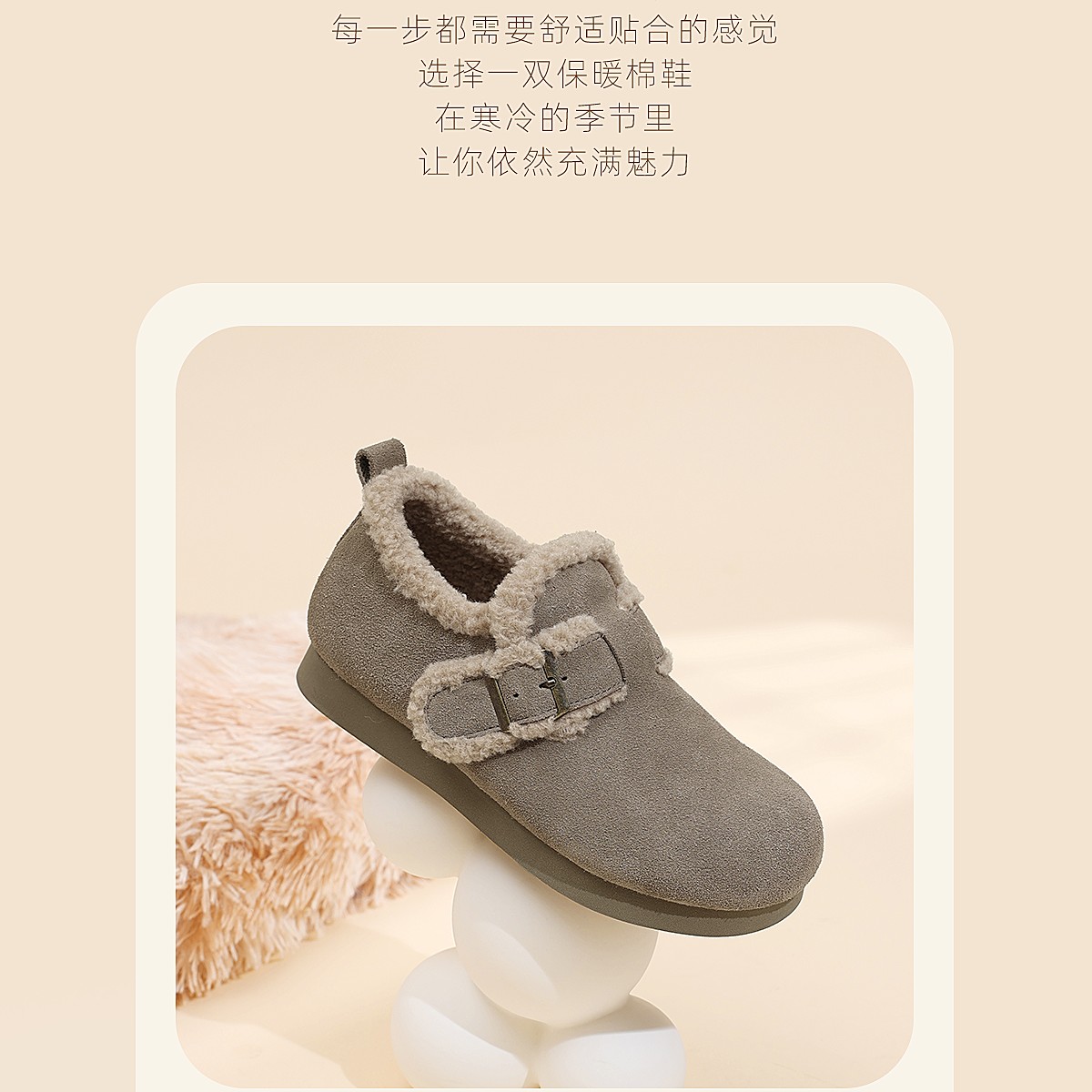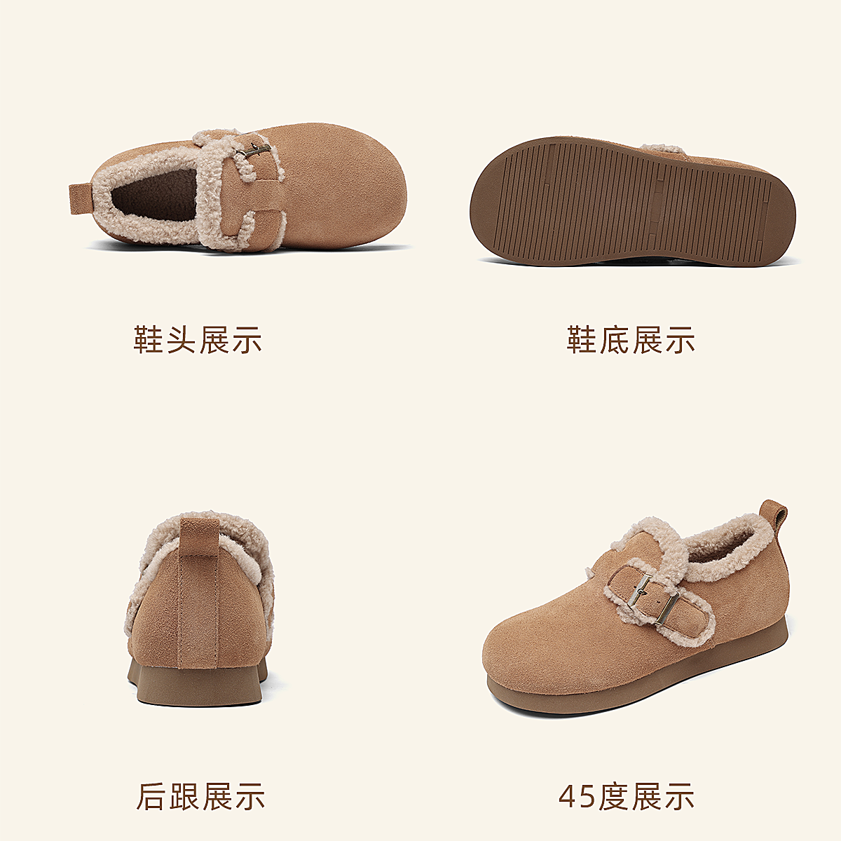 信诺加绒保暖妈妈鞋子复古勃肯鞋外穿毛毛鞋软底女鞋2025冬季新款X5M126-186
