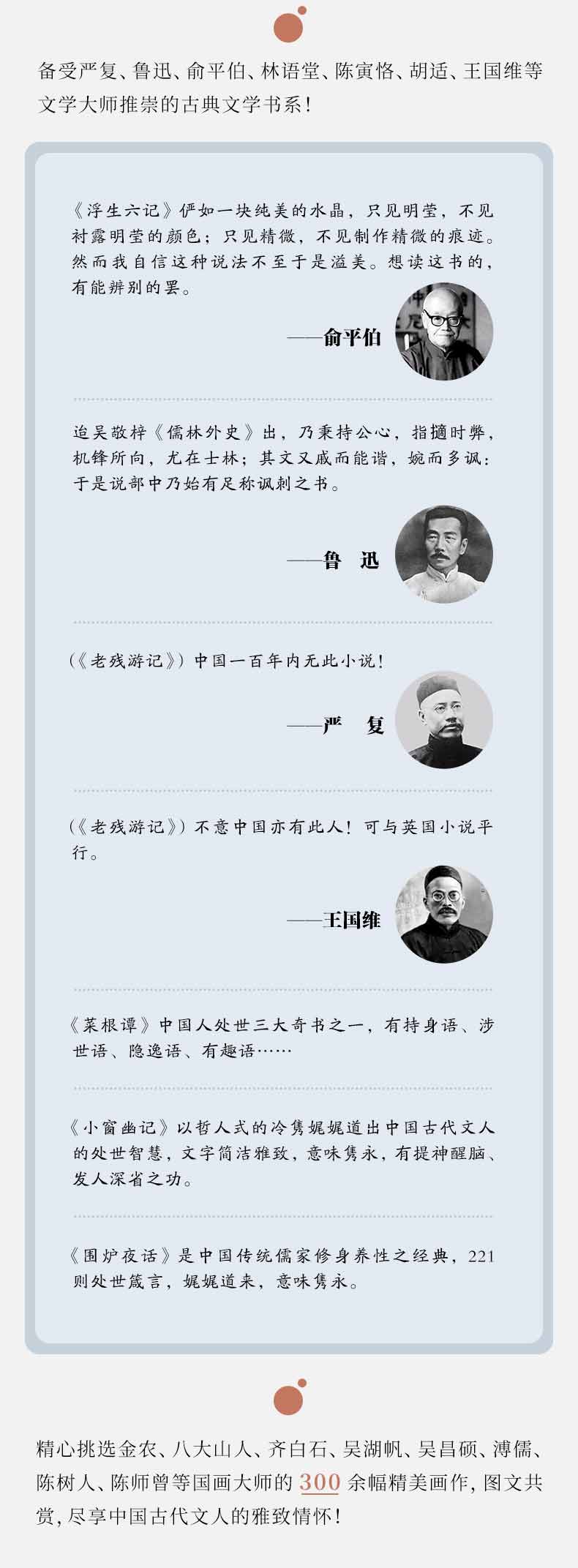 《中国古典文学雅读》| 浮生六记+围炉夜话+儒林外史+老残游记+菜根谭+小窗幽记