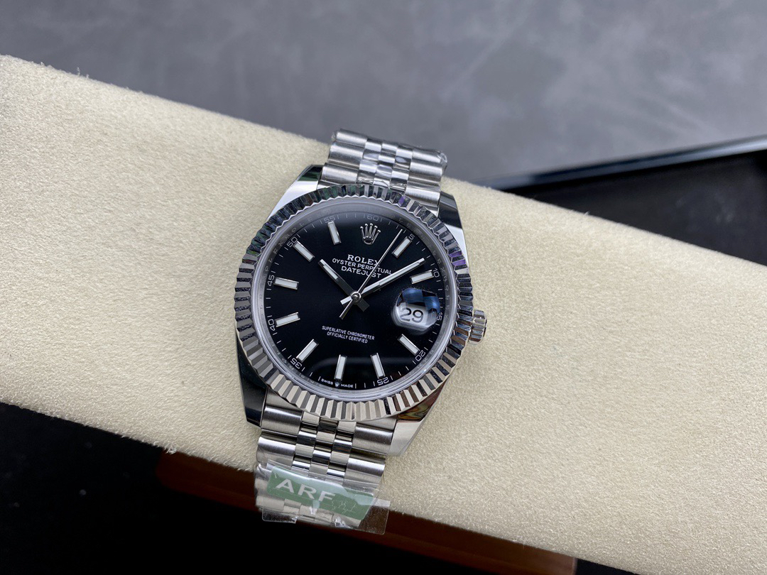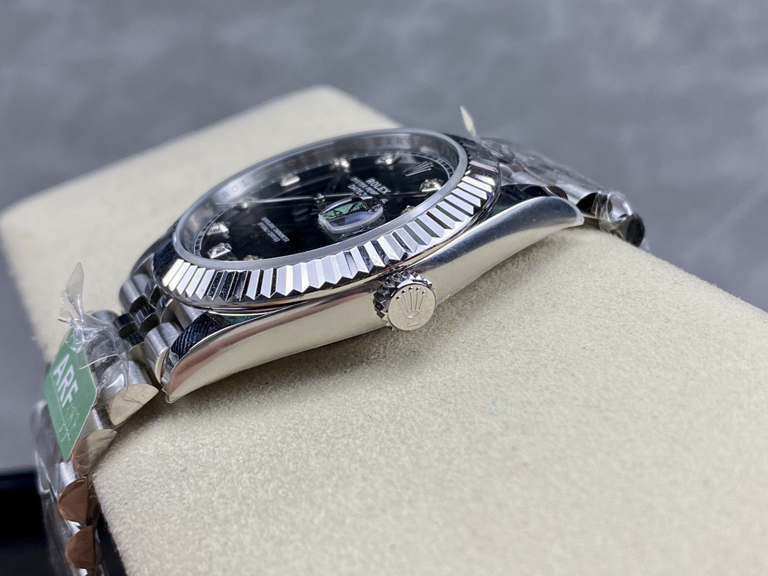 ARF 劳力士日志型41mm,狗牙圈(经典款)以及光圈(低调款)均出品。表芯搭载3235一体机芯,镜面采用高清蓝宝石搭配2.5倍矿大镜,立体指针。面板油印立体❕❕
