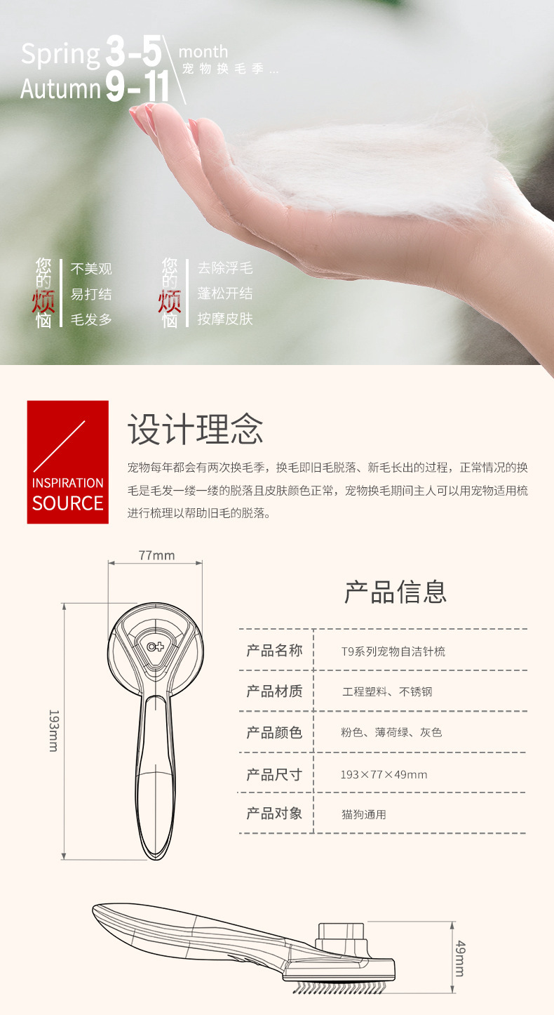 【宠物用品】宠物梳子除毛刷猫咪脱毛梳子狗狗按摩梳T9自洁梳清洁用品