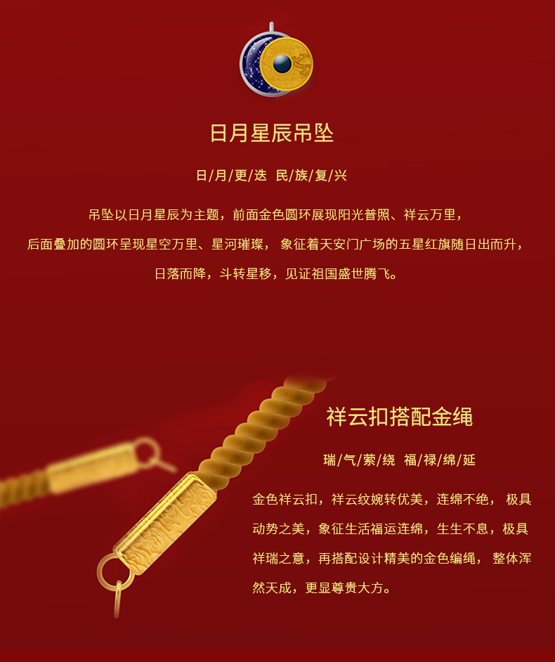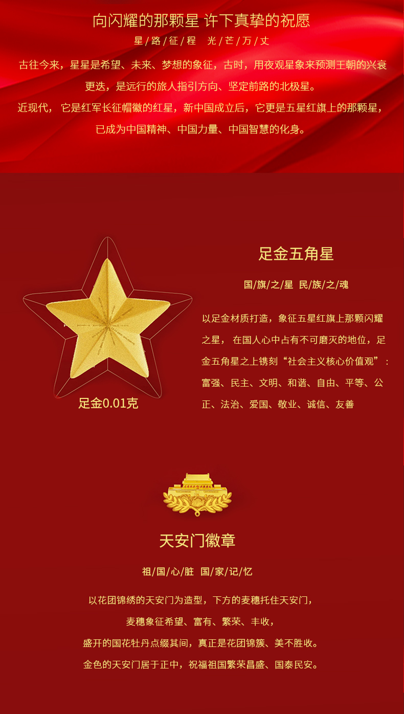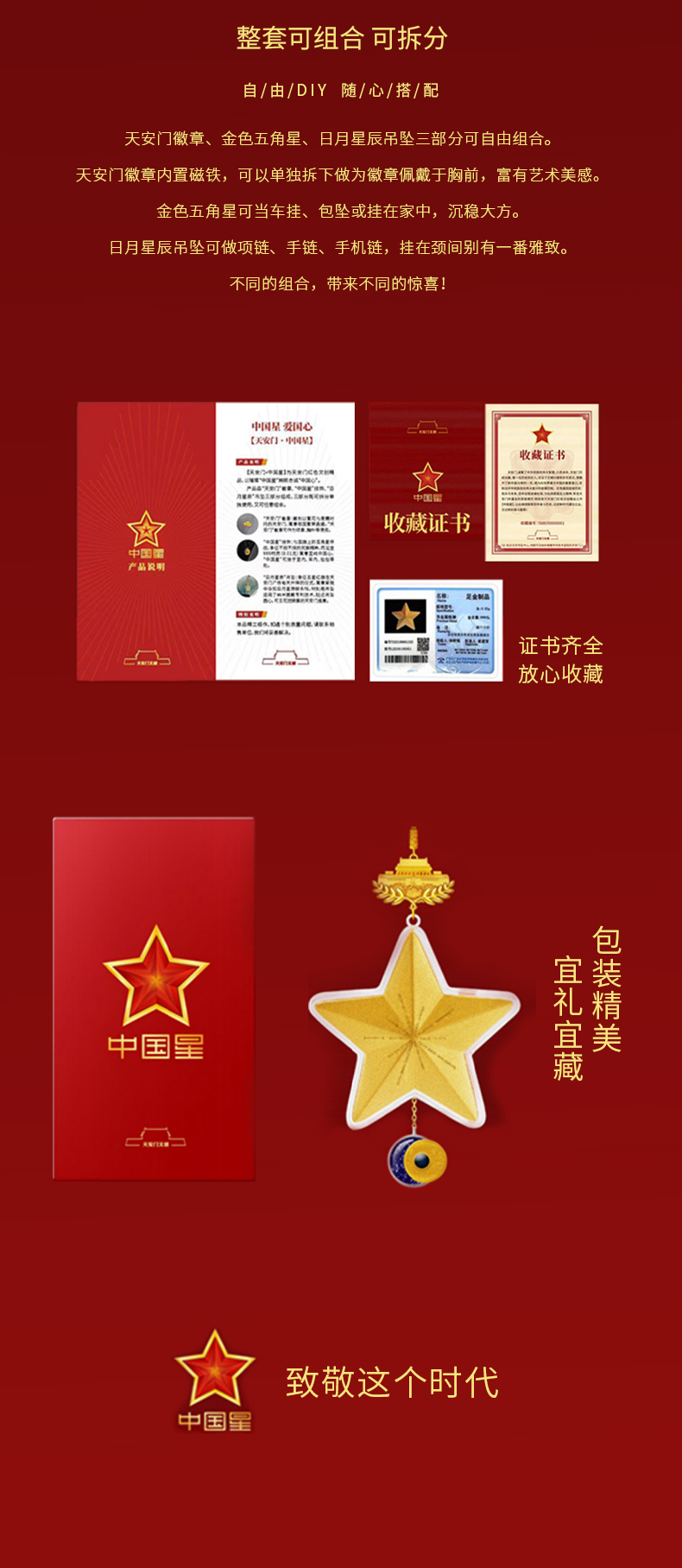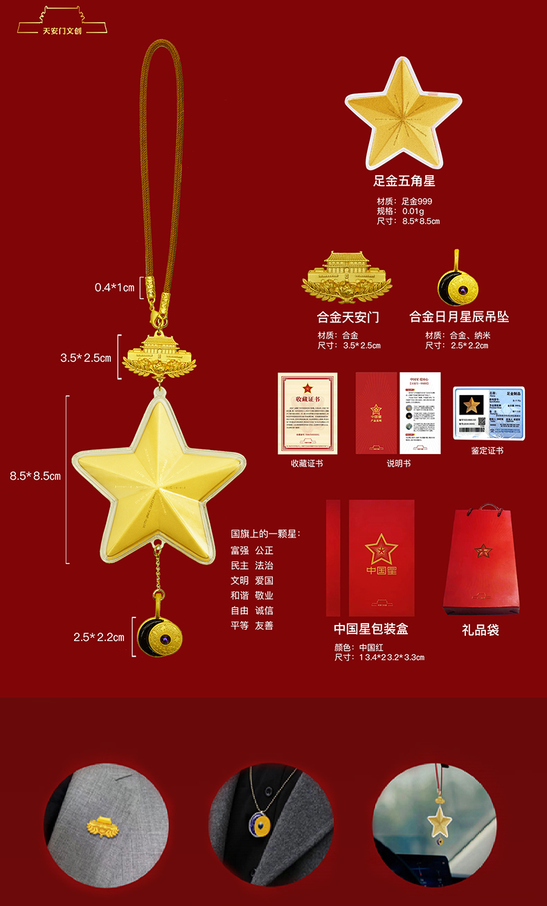 【中国星】星路征程·五角星天安门足金挂件(AU999)