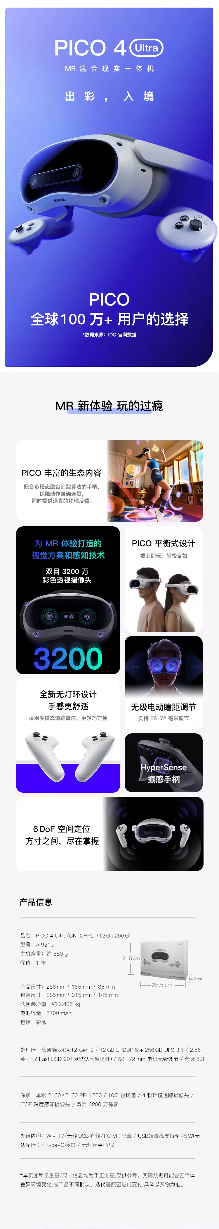眼镜 Ultra VR 混合现实一体机 畅玩版 白 - pico
