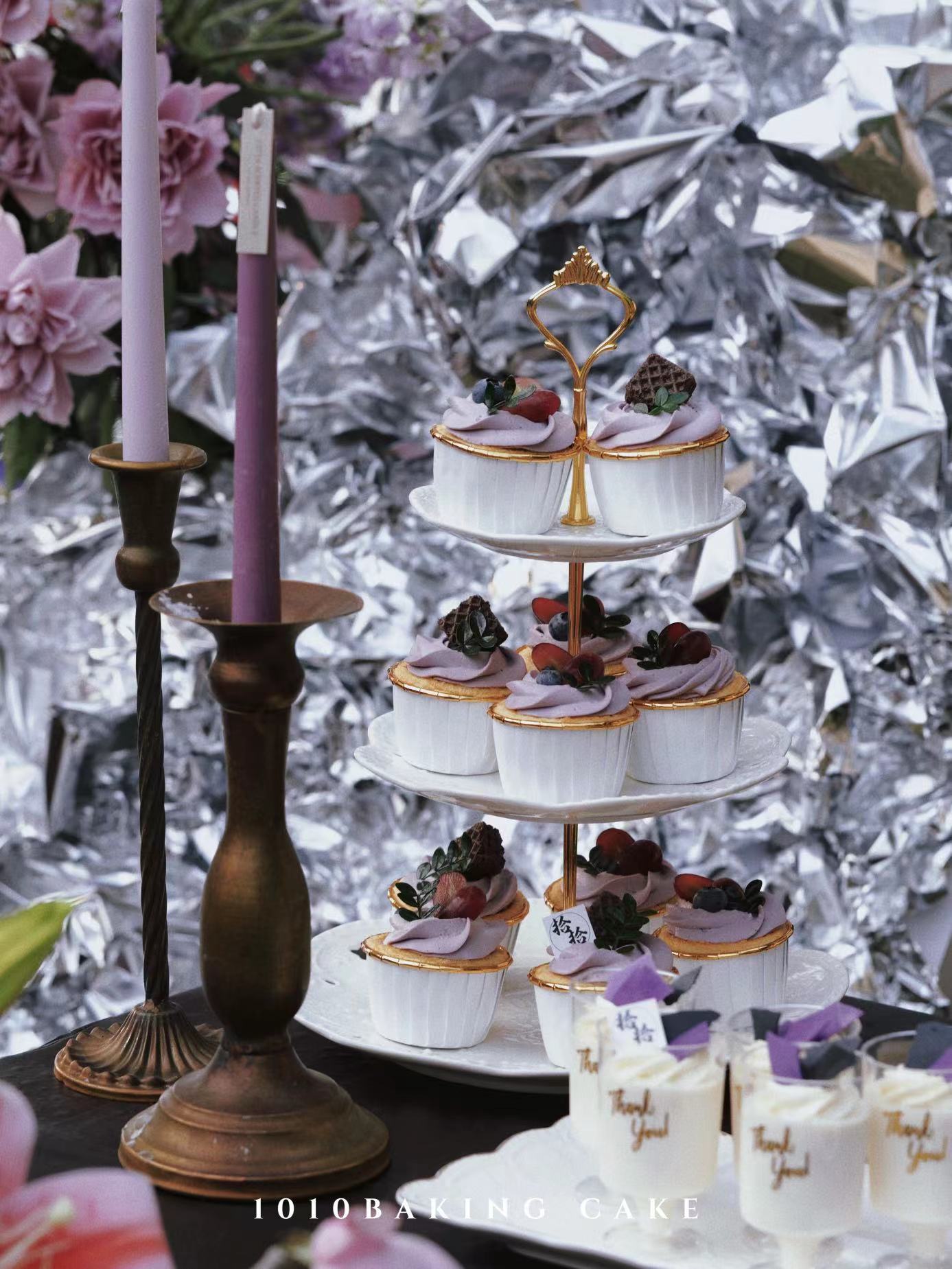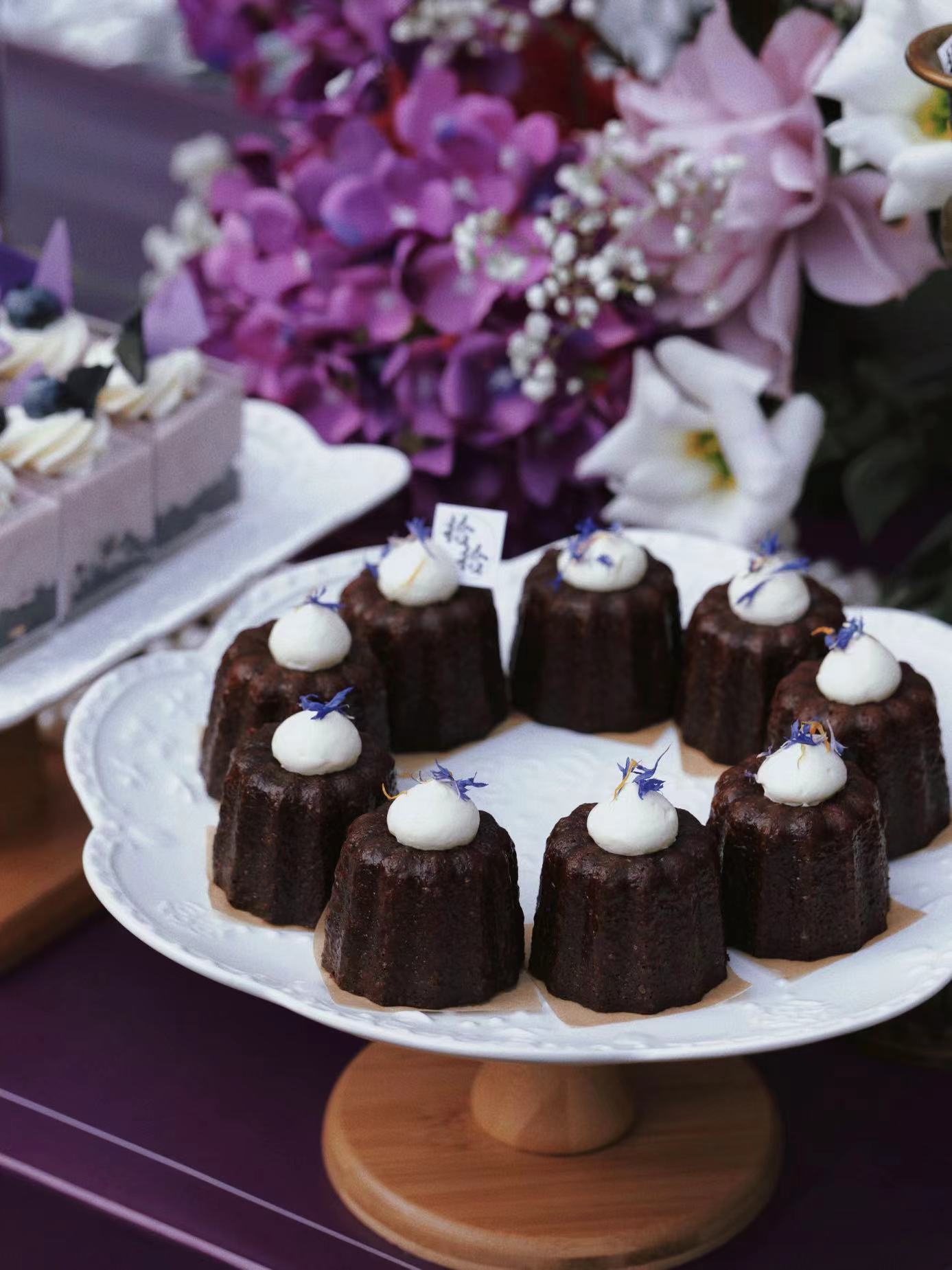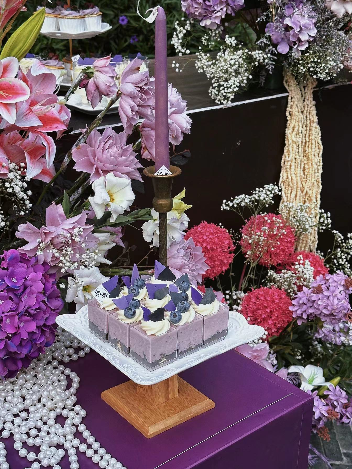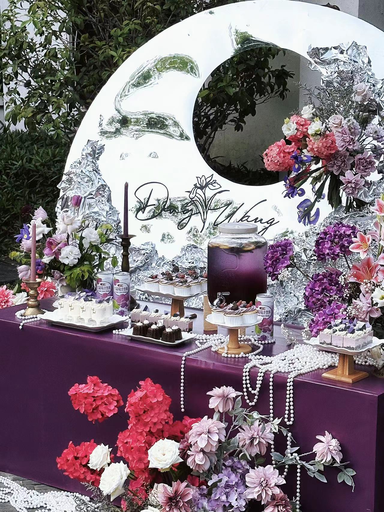 「紫黑主题·中海汤泉」户外婚礼甜品台案例