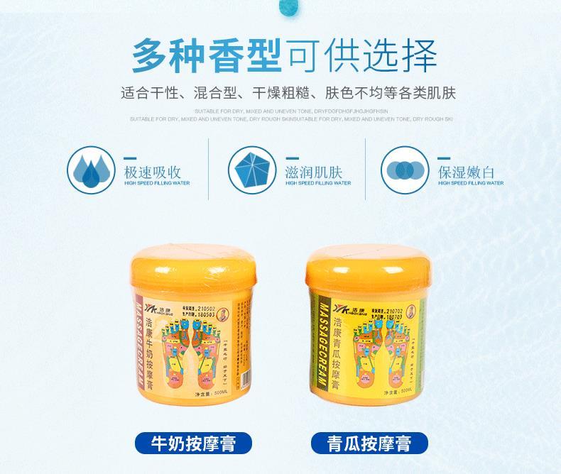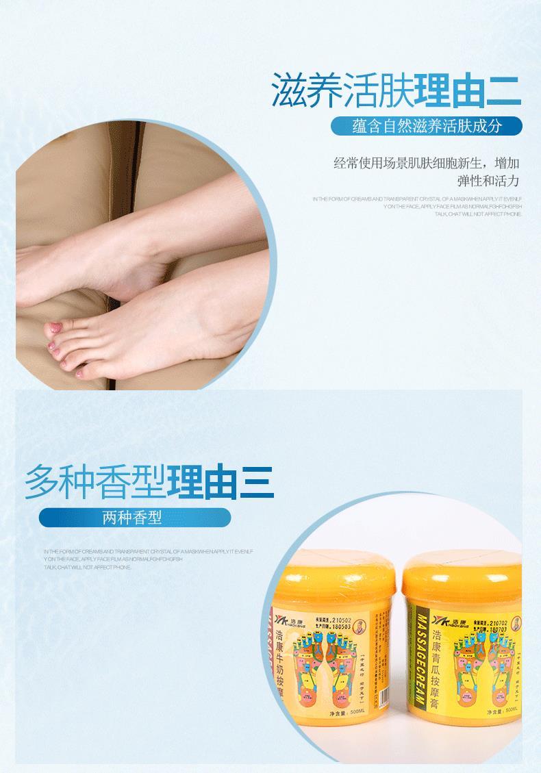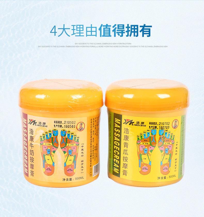 浩康足部按摩膏500ml牛奶足疗按摩油按摩膏青瓜足疗按摩膏青瓜足底按摩油足浴用品