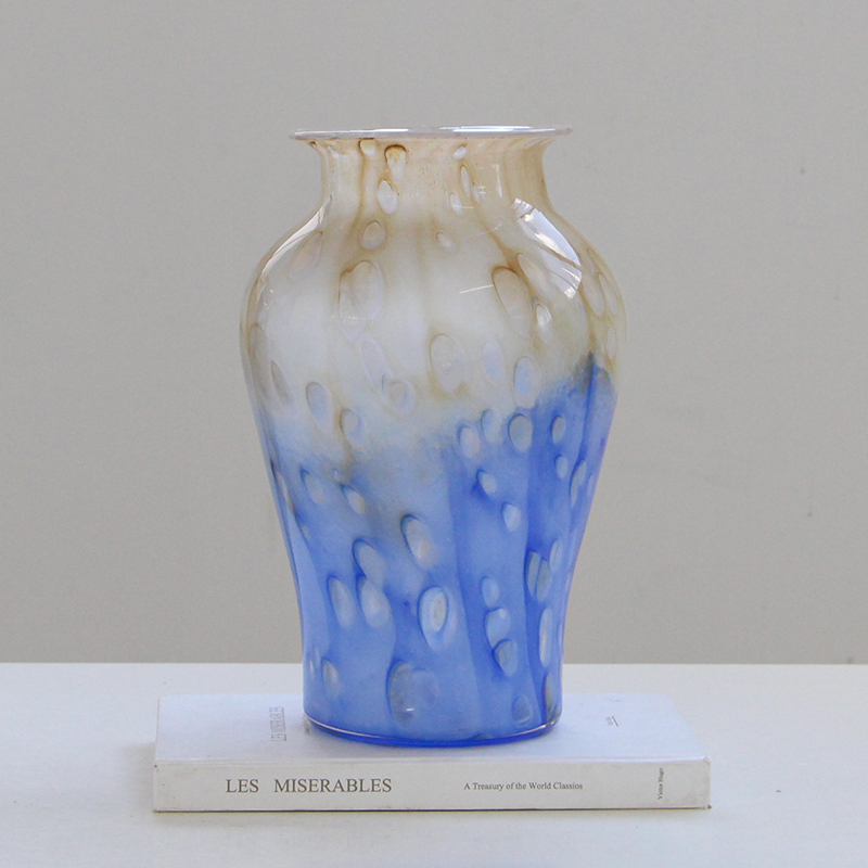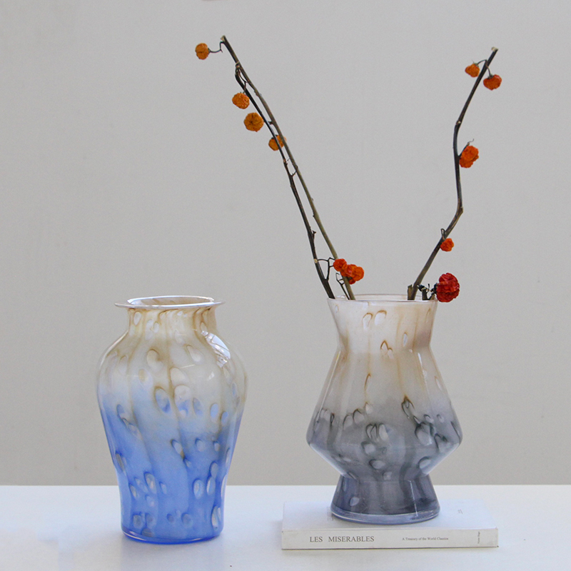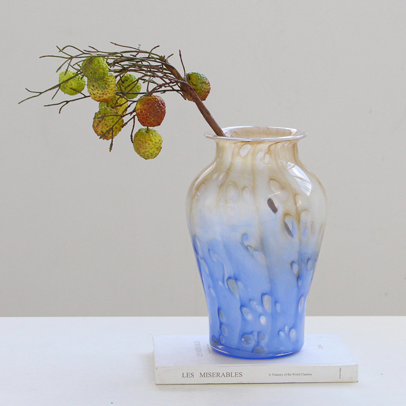 高级感水彩手工玻璃花瓶中古奶油色玄关琉璃法式插花器装饰品摆件