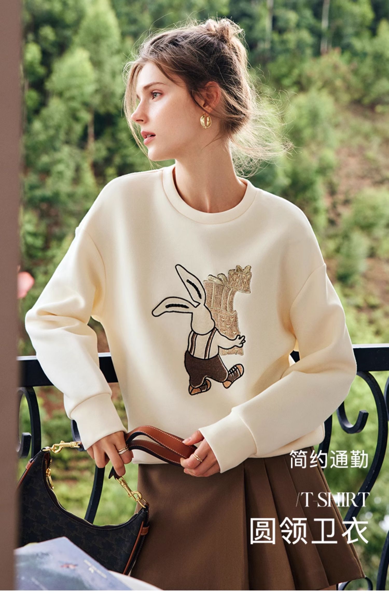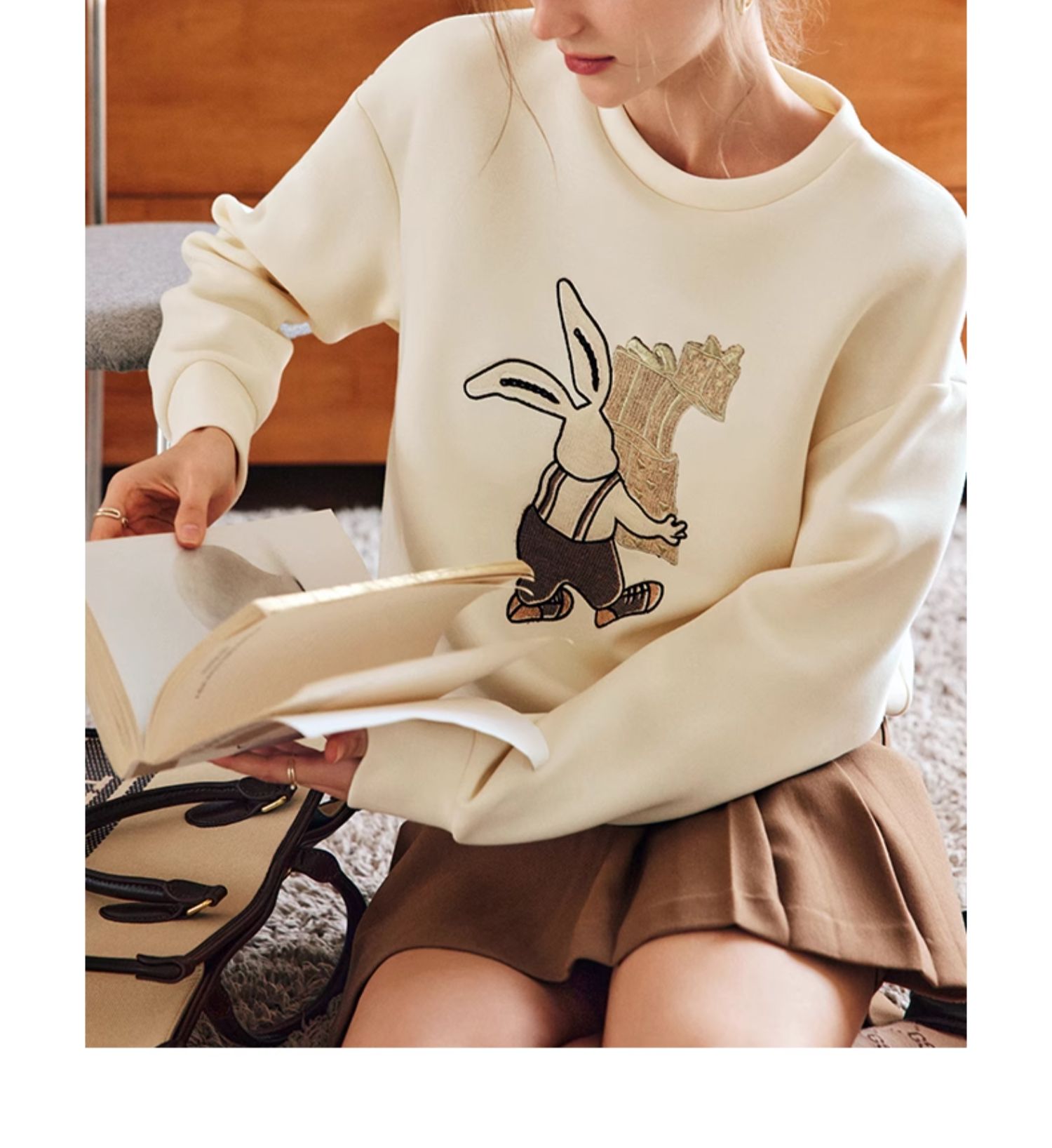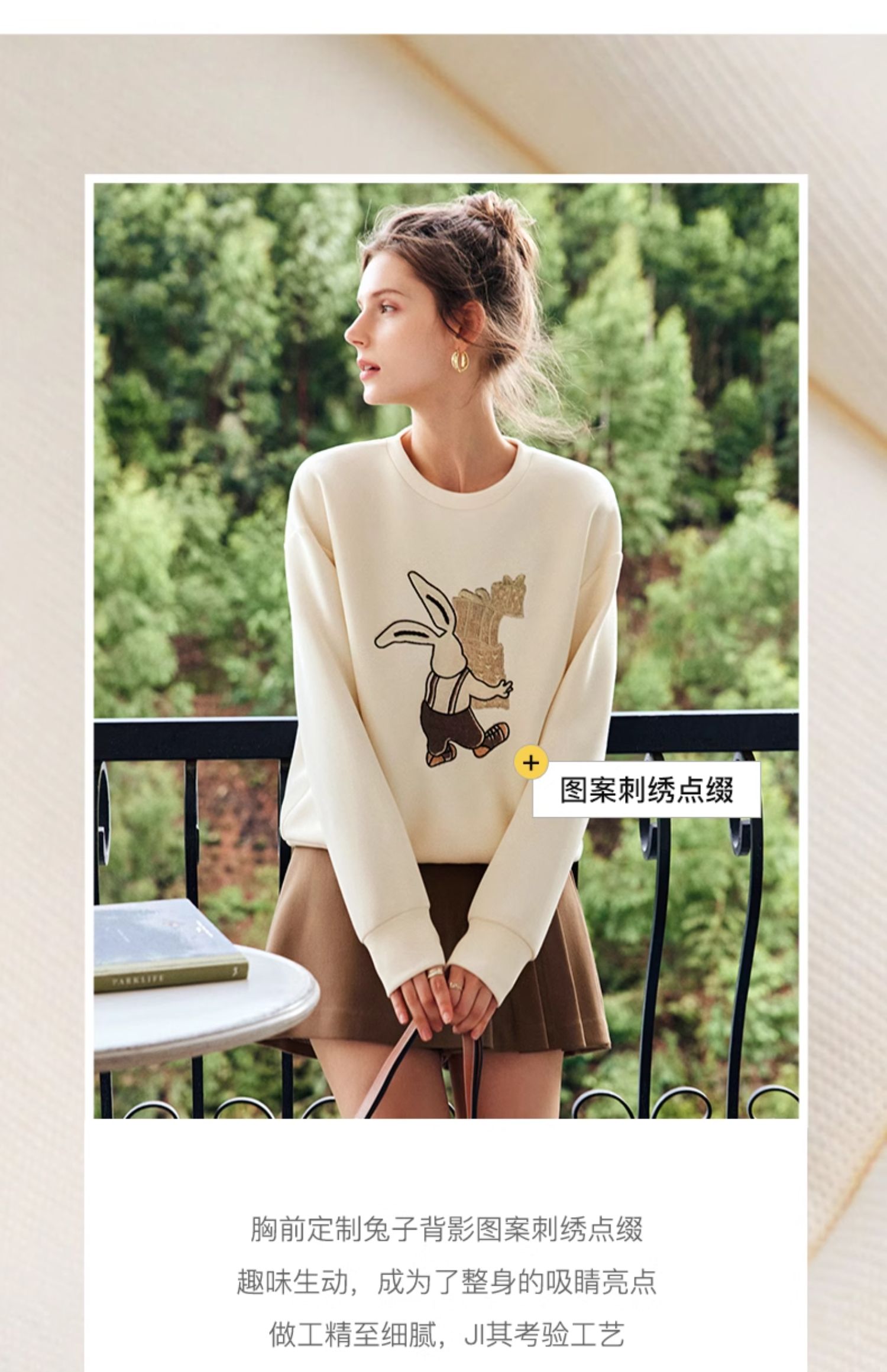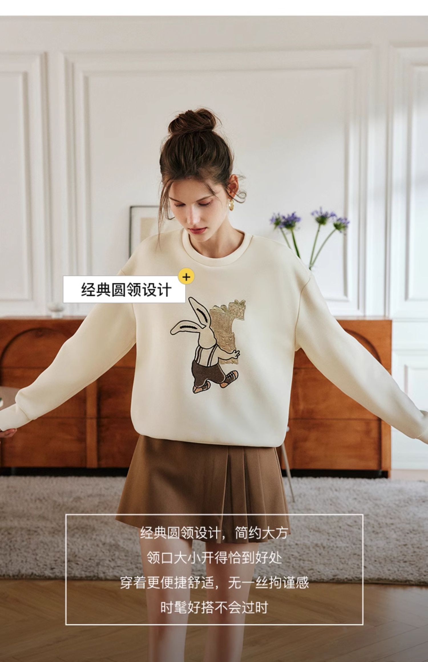 OLrain法式奶油色卫衣女早秋2024年新款宽松简约通勤刺绣套头上衣