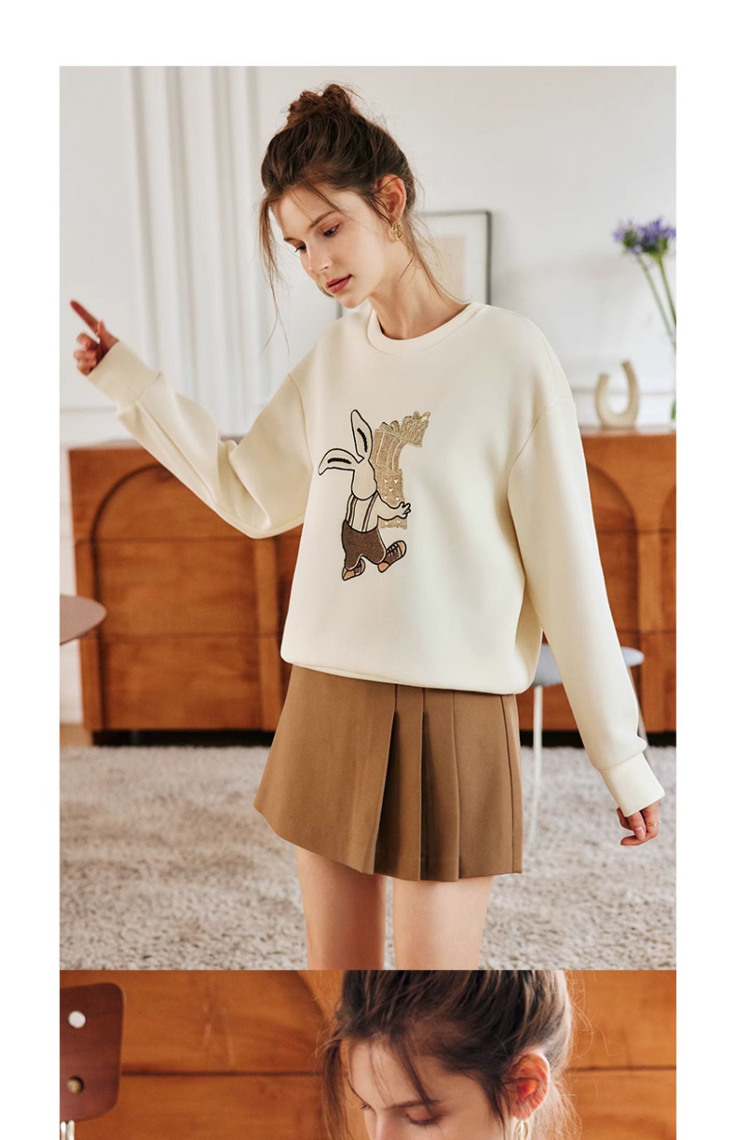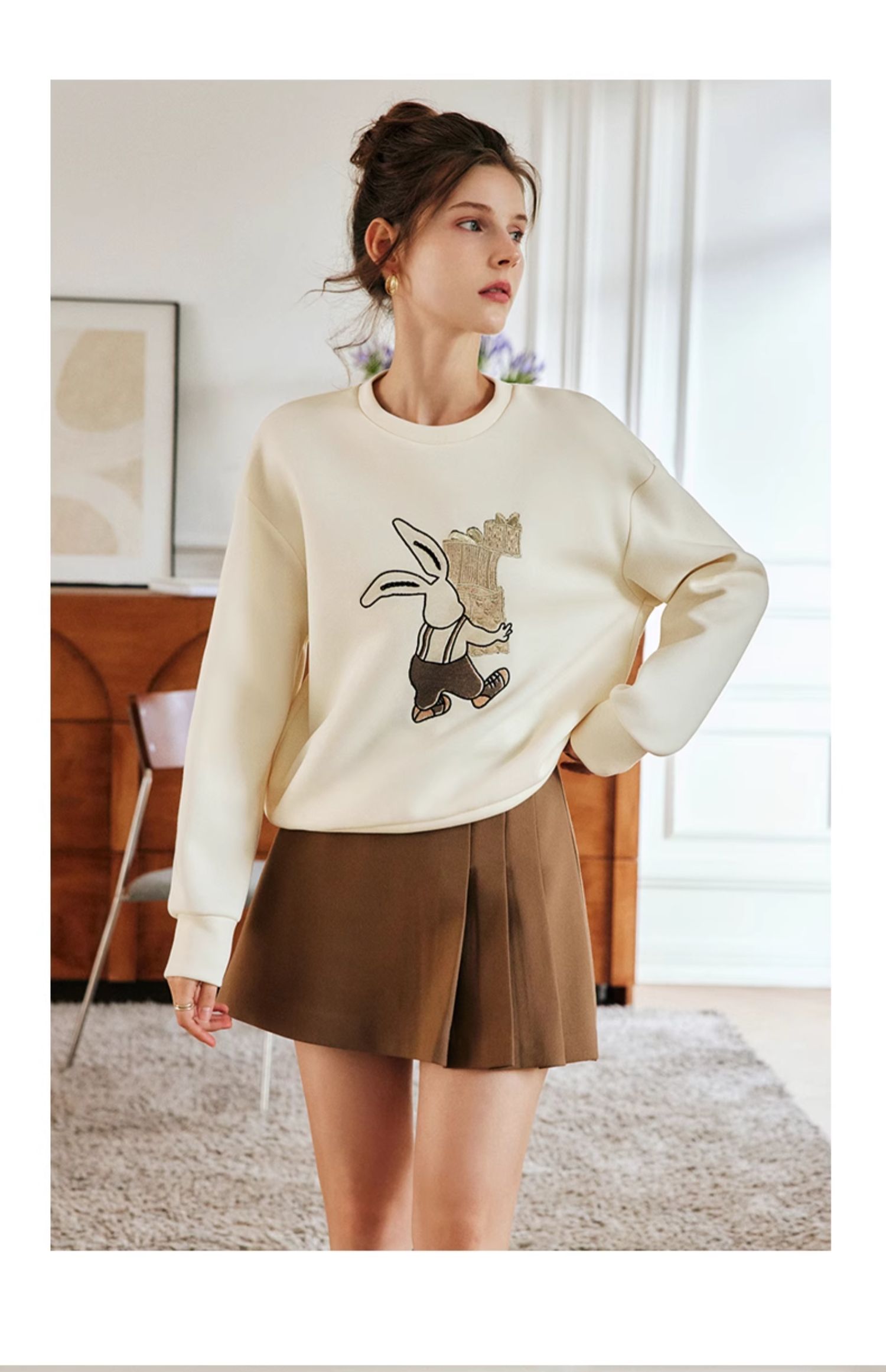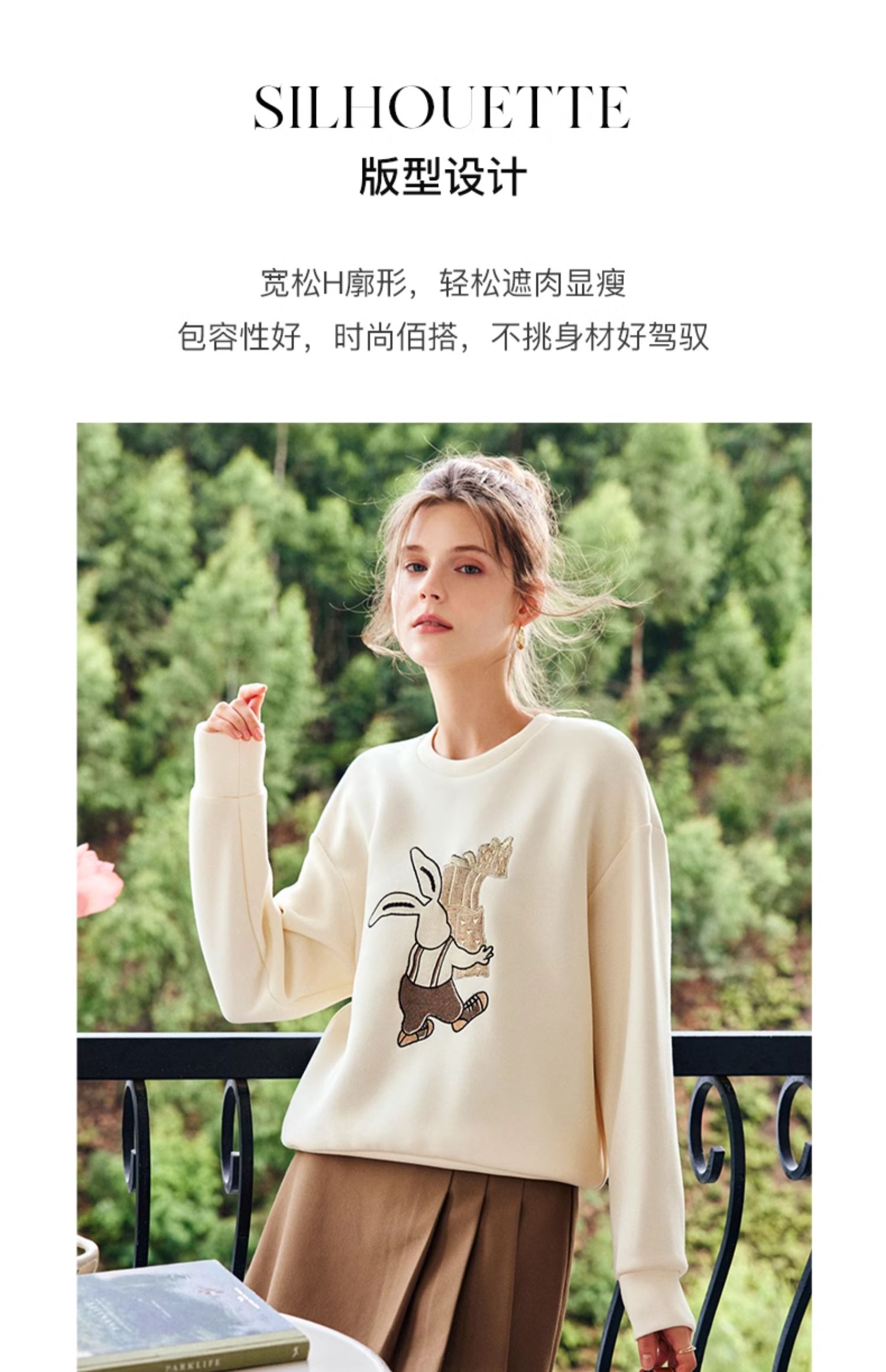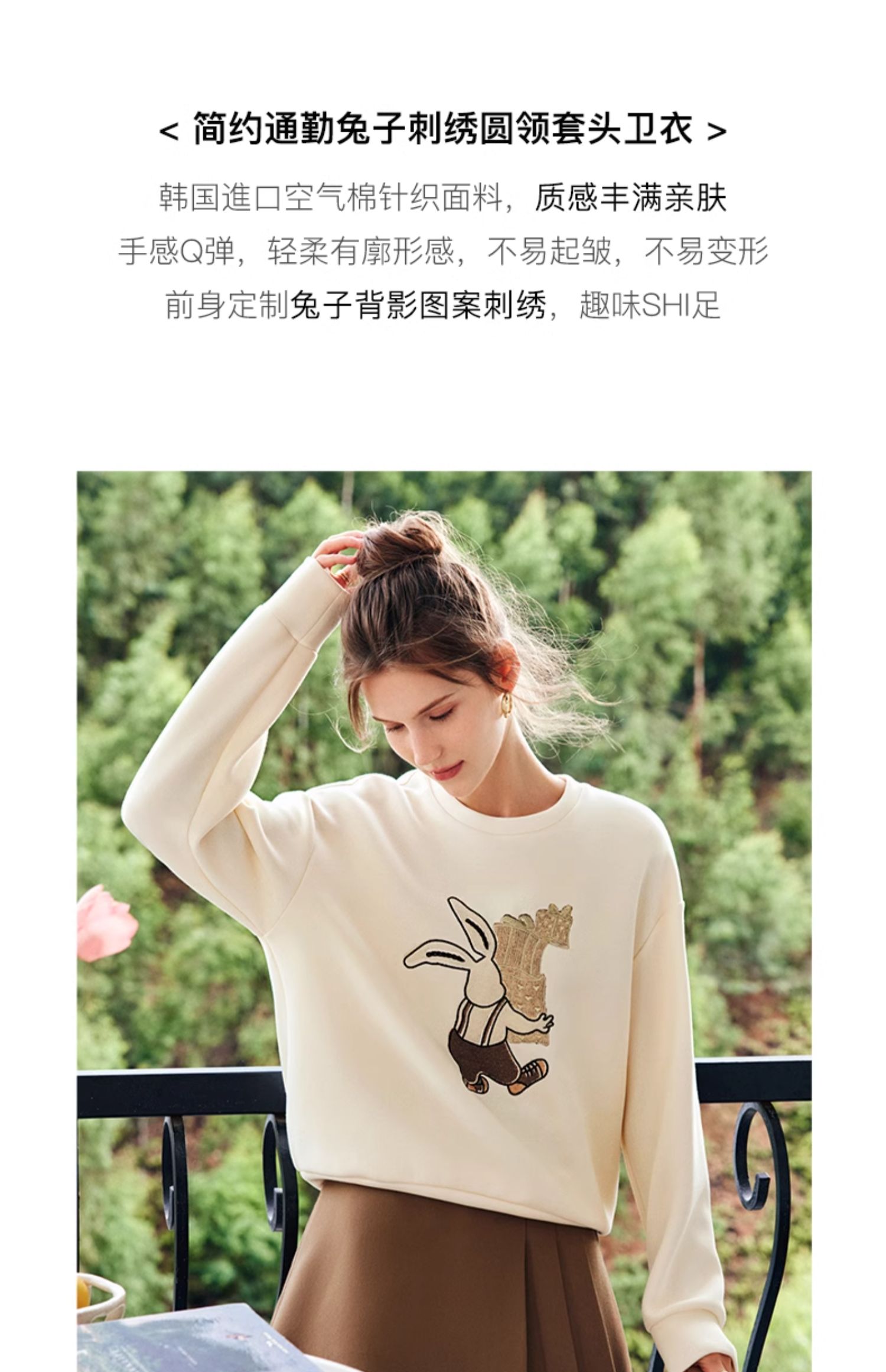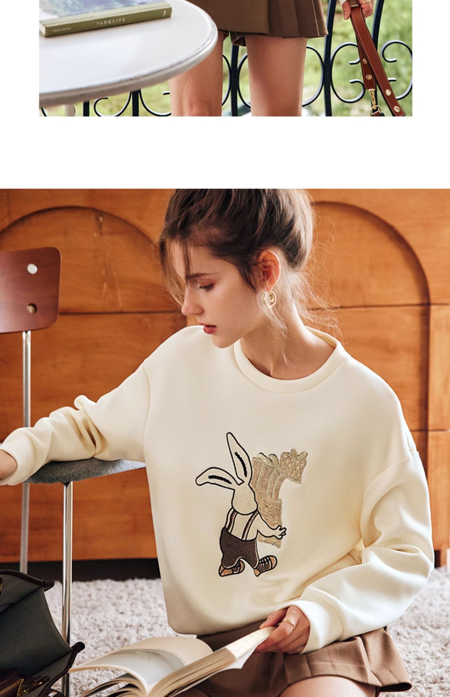OLrain法式奶油色卫衣女早秋2024年新款宽松简约通勤刺绣套头上衣